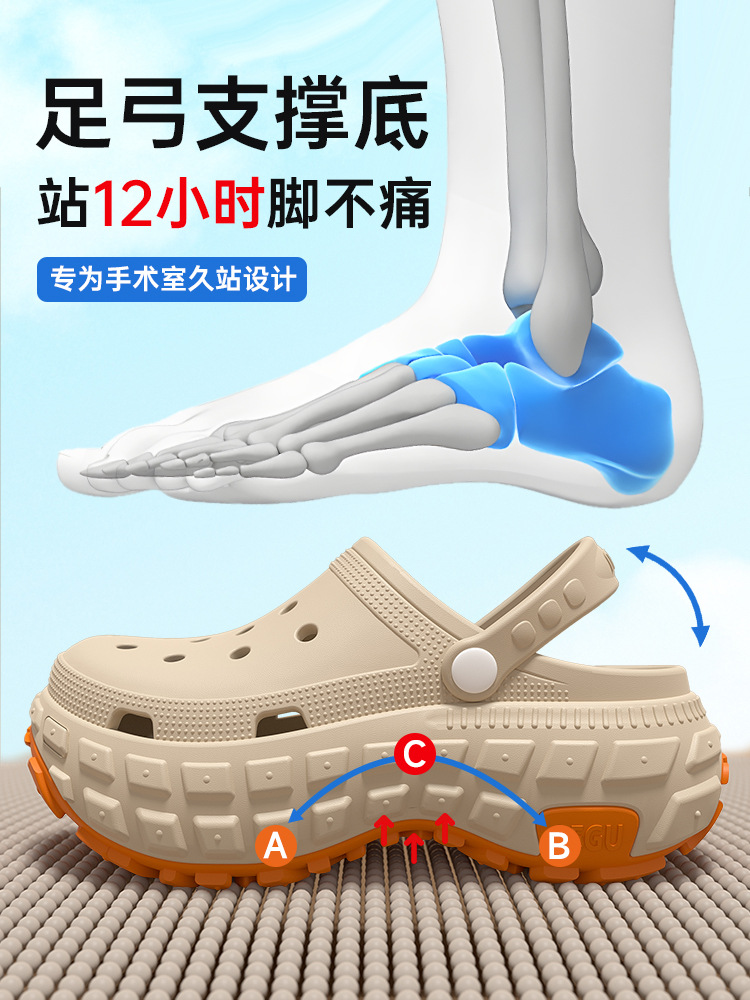 足弓支撐洞洞鞋男款2025新款夏季戶外厚底防滑耐磨防臭eva涼拖男