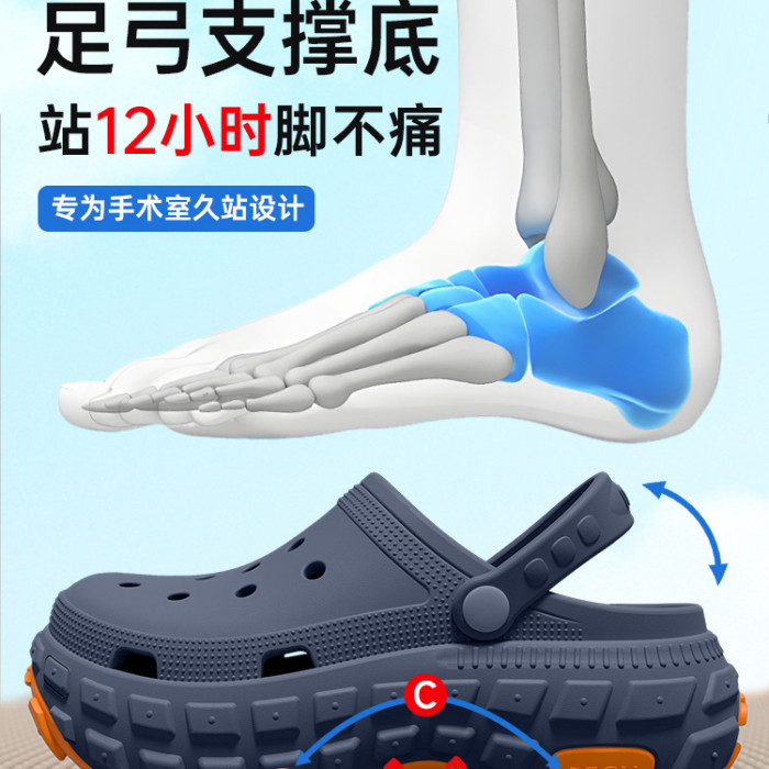 厚底洞洞鞋男款夏季外穿2025新款防滑防臭足弓支撐透氣踩屎感涼拖
