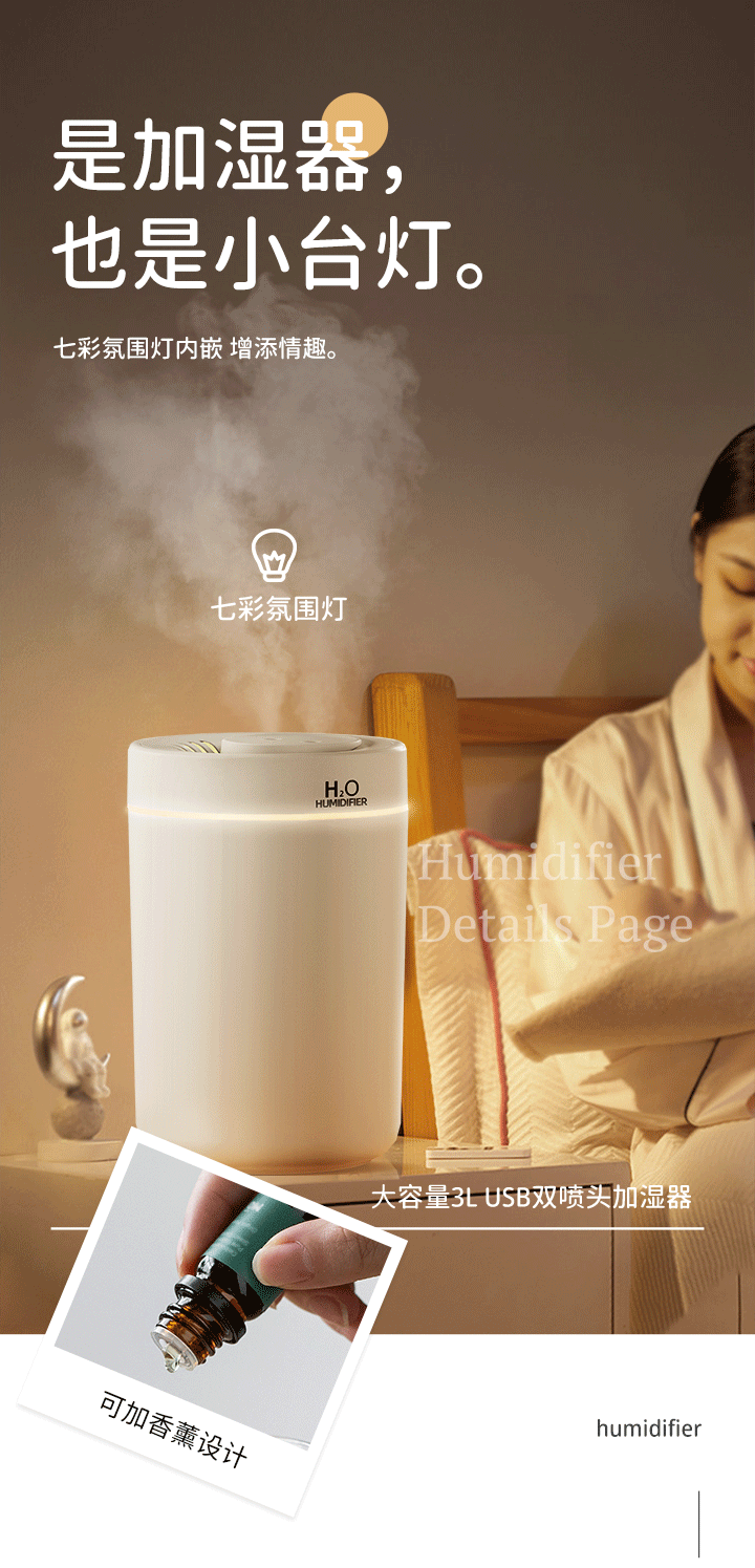 USB雙噴加溼器 家用臥室靜音大容量霧香薰桌面加溼器香薰空氣淨化