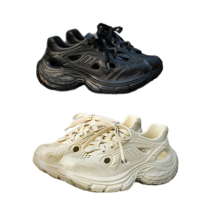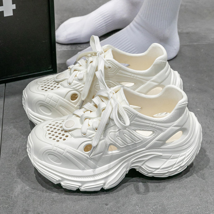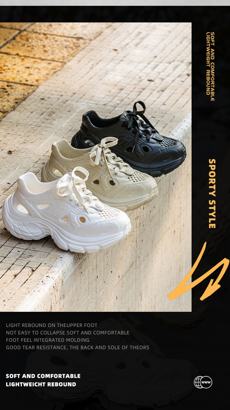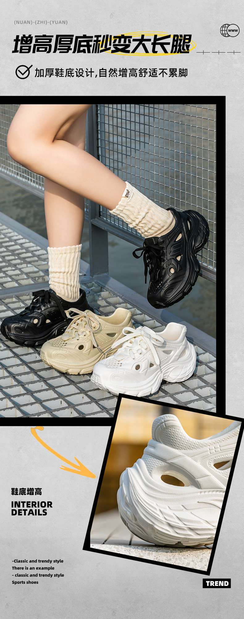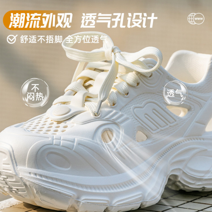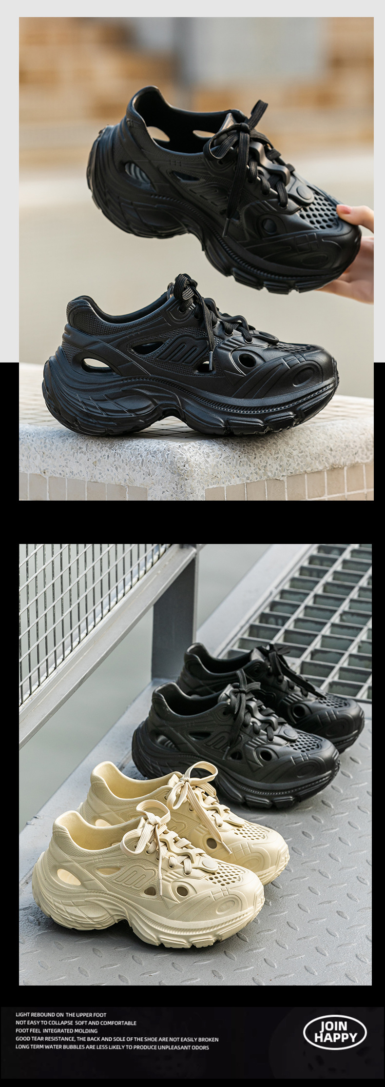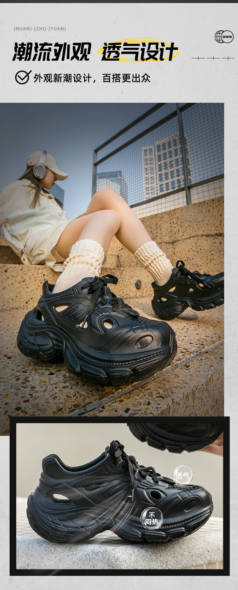 厚底洞洞鞋女款外穿夏季2025新款沙灘防滑拖鞋包頭增高老爹涼鞋女