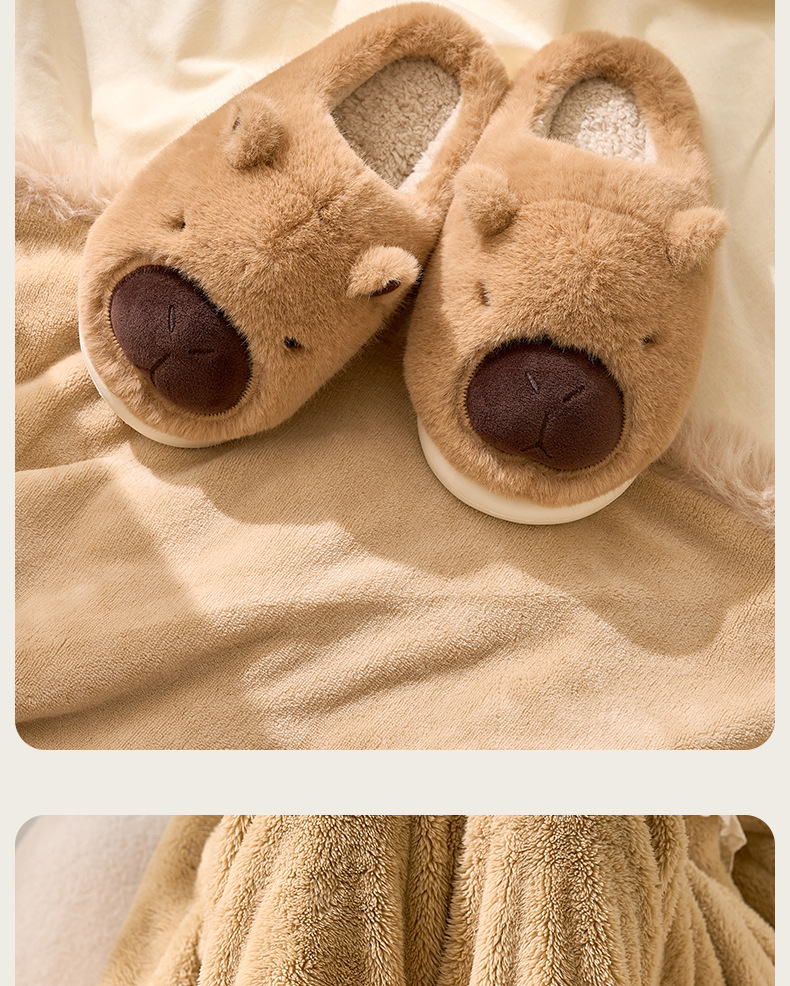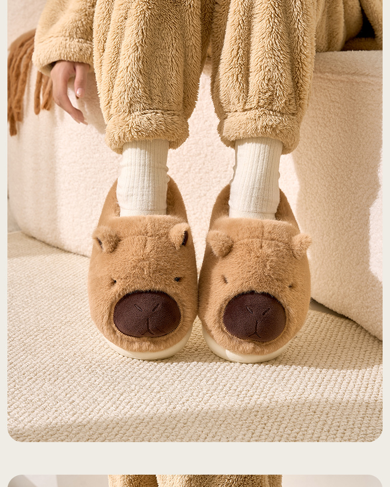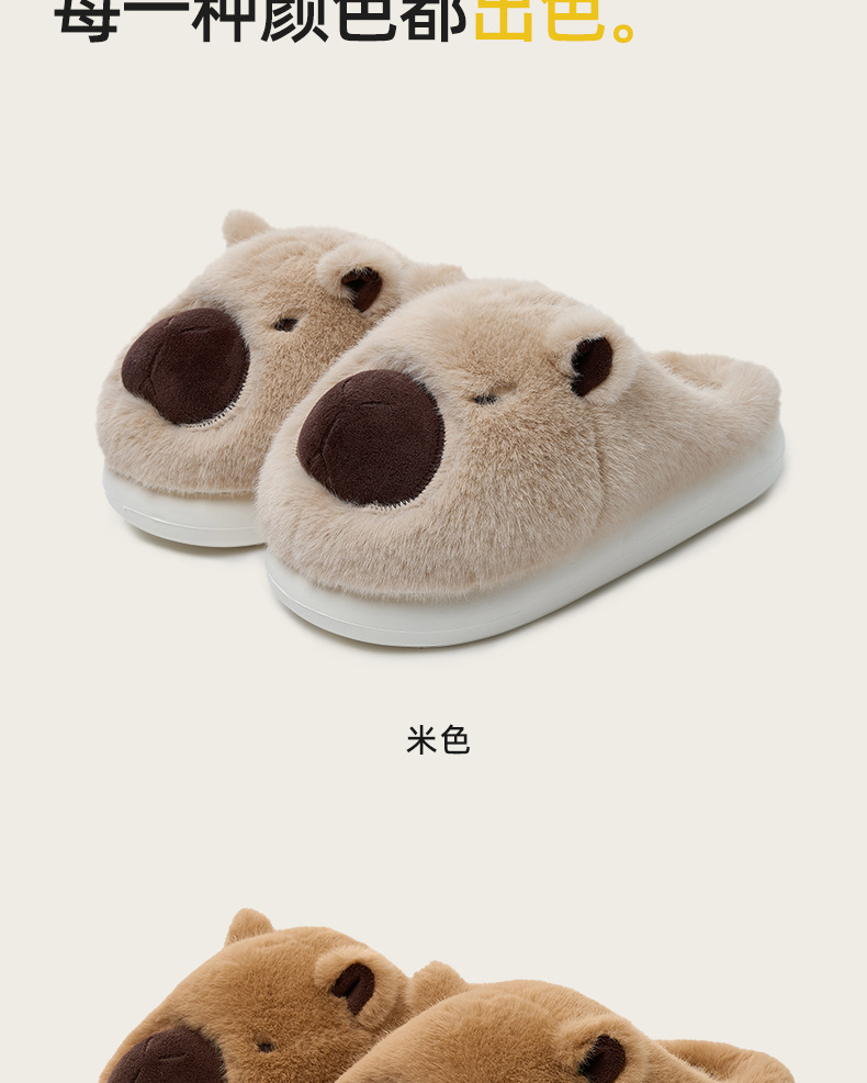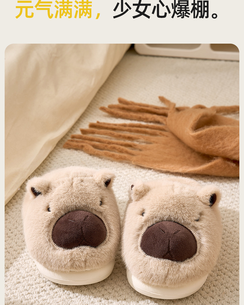 25年醜萌卡皮巴拉棉拖鞋女秋冬季家用家居毛拖鞋室內居家毛絨棉鞋