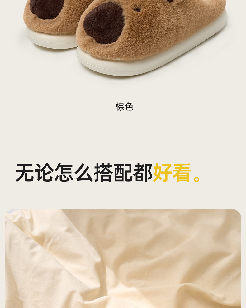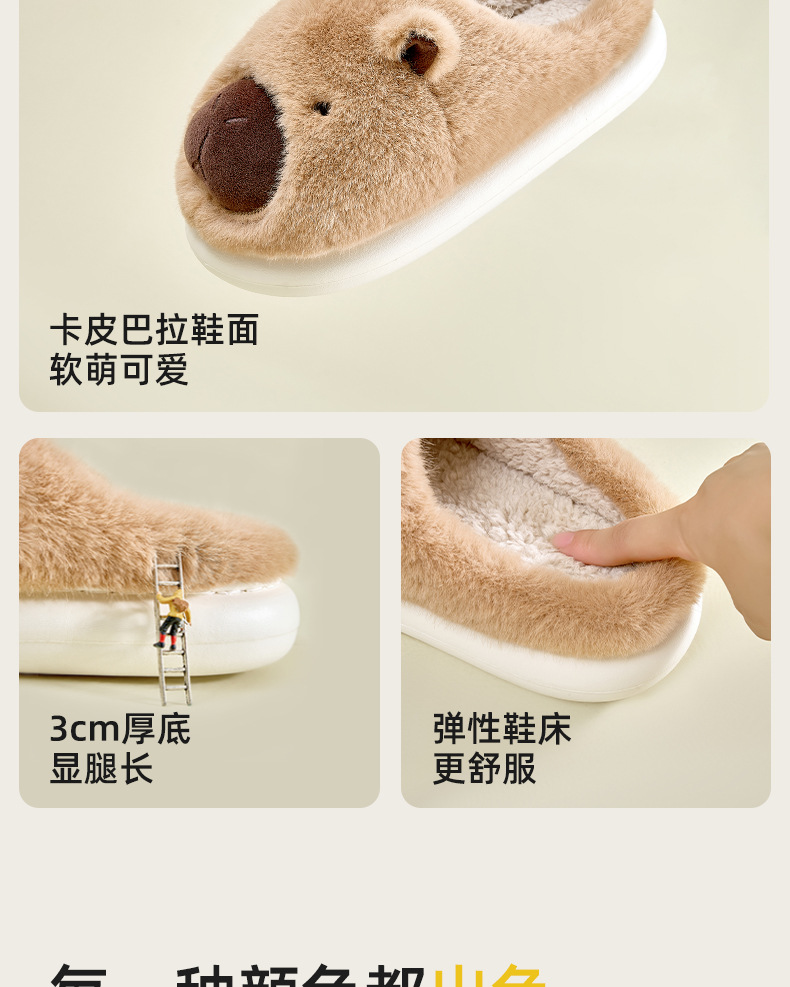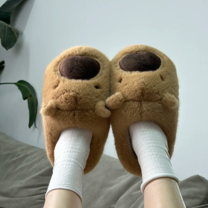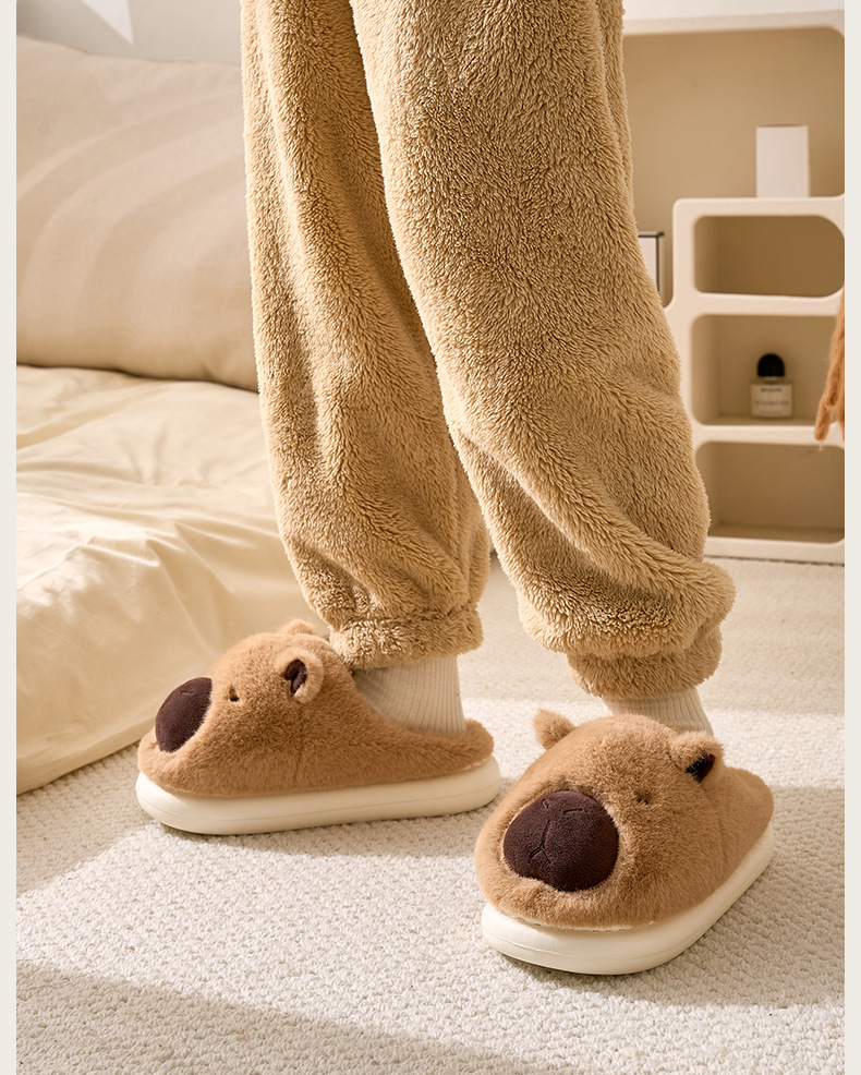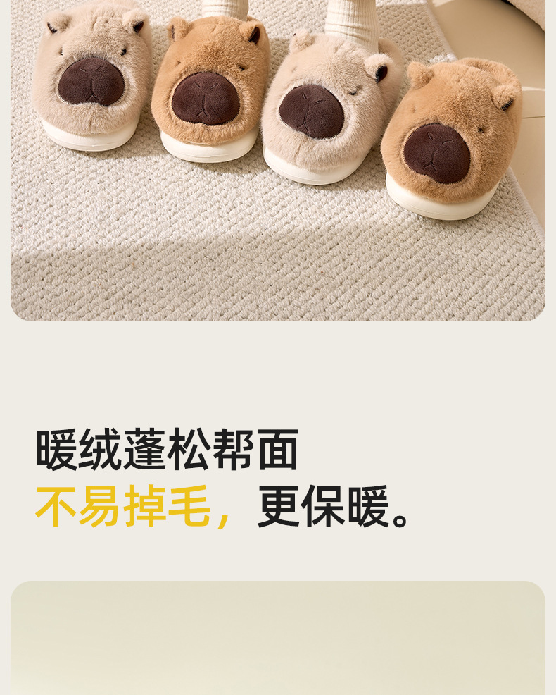 25年醜萌卡皮巴拉棉拖鞋女秋冬季家用家居毛拖鞋室內居家毛絨棉鞋