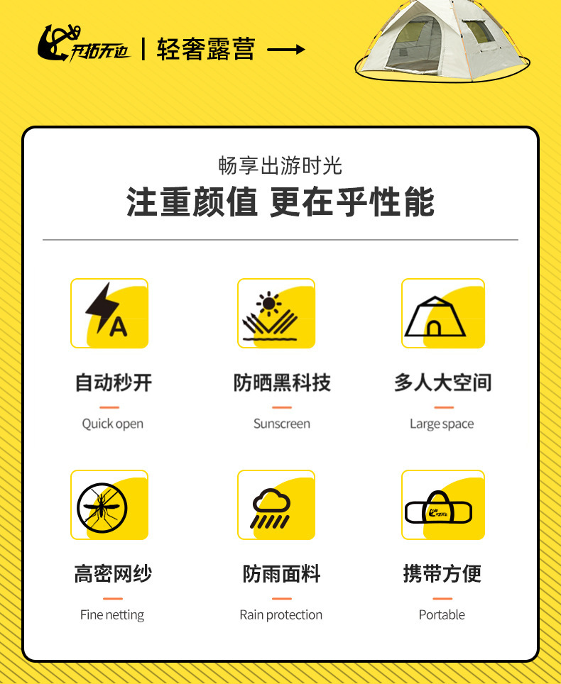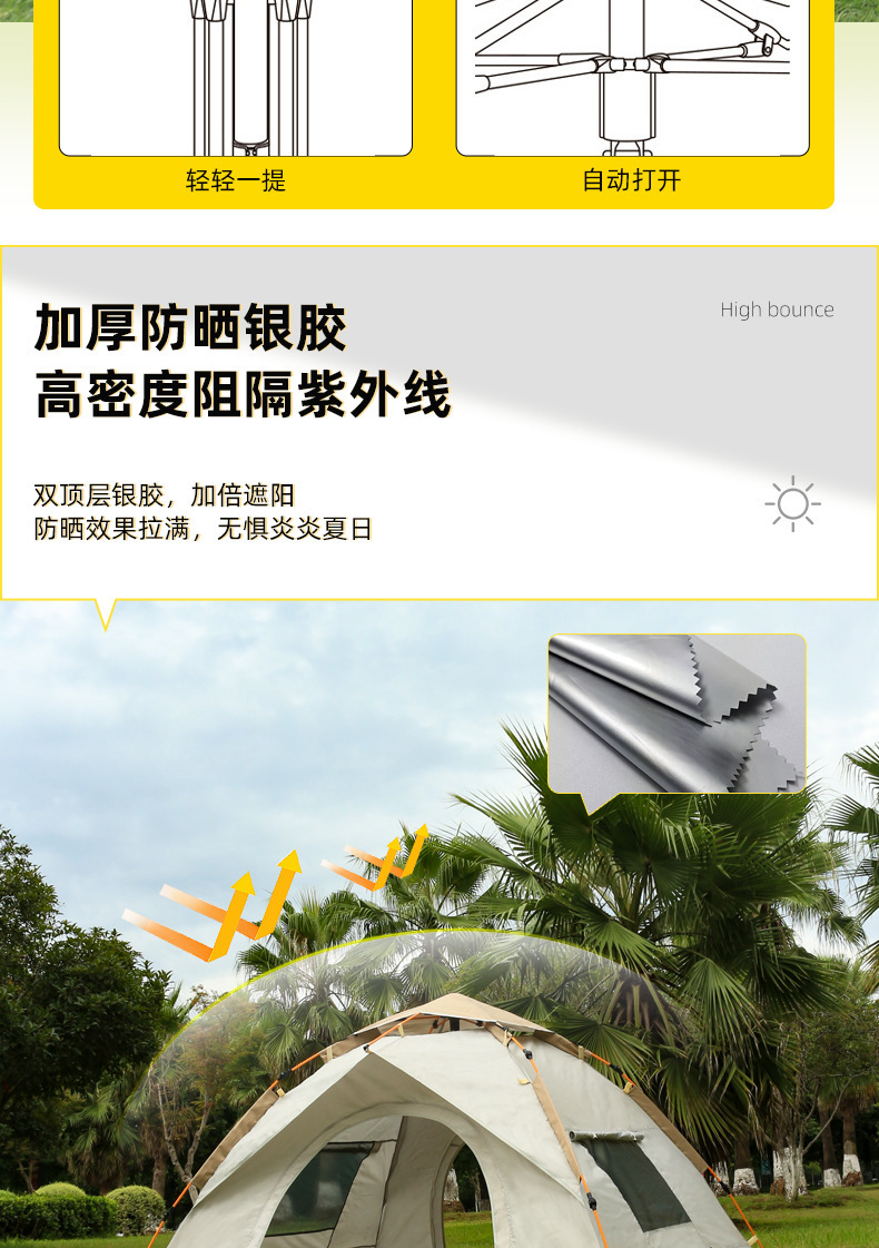 野外露營帳篷全自動速開沙灘全套可攜式折曡野營銀膠防曬防雨帳篷