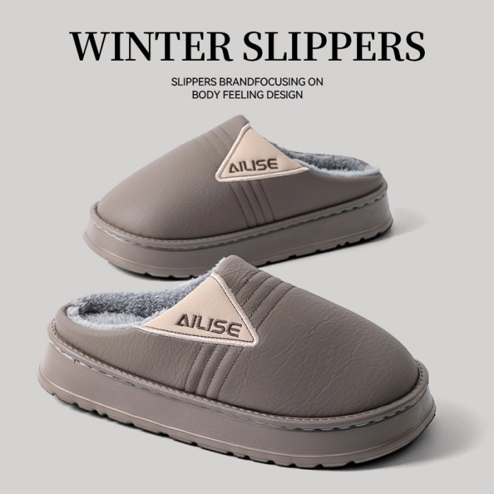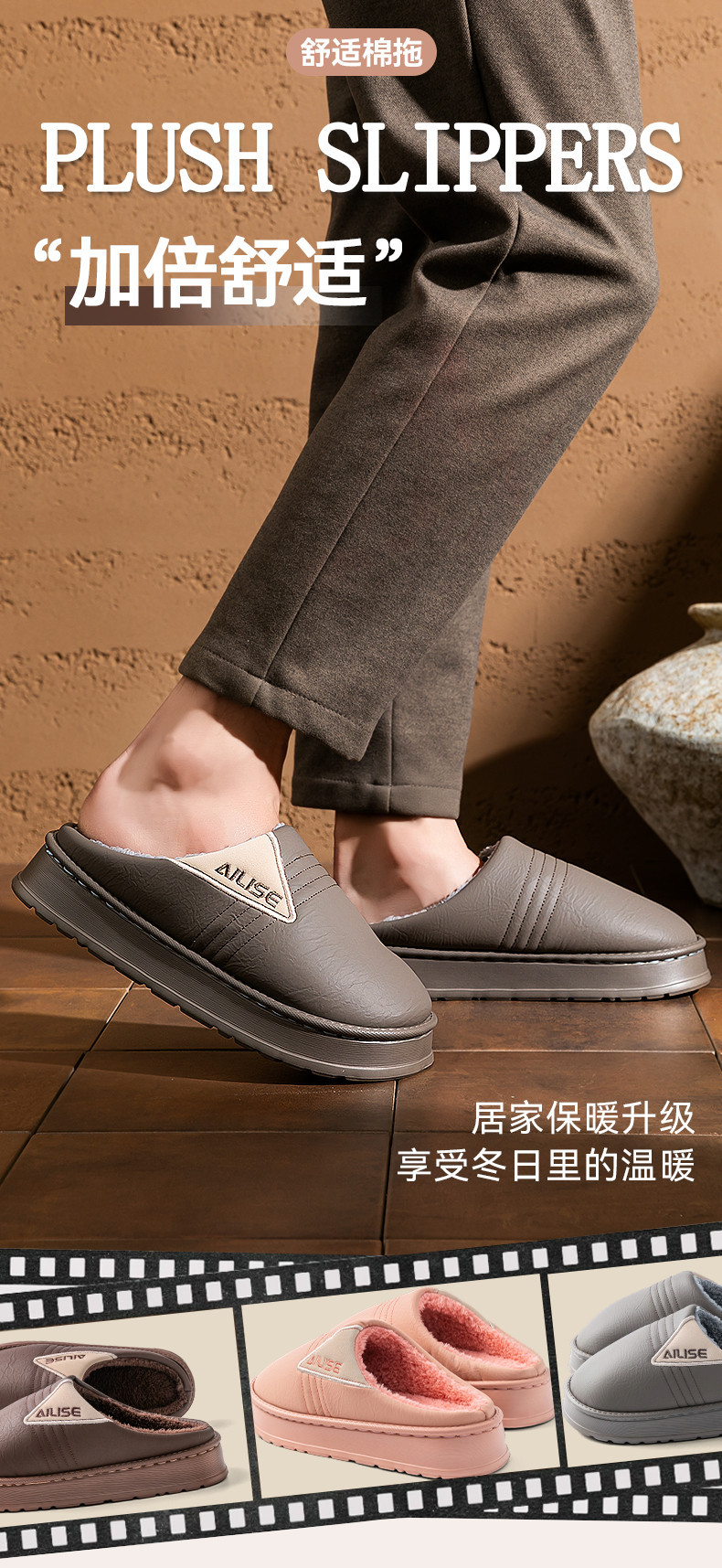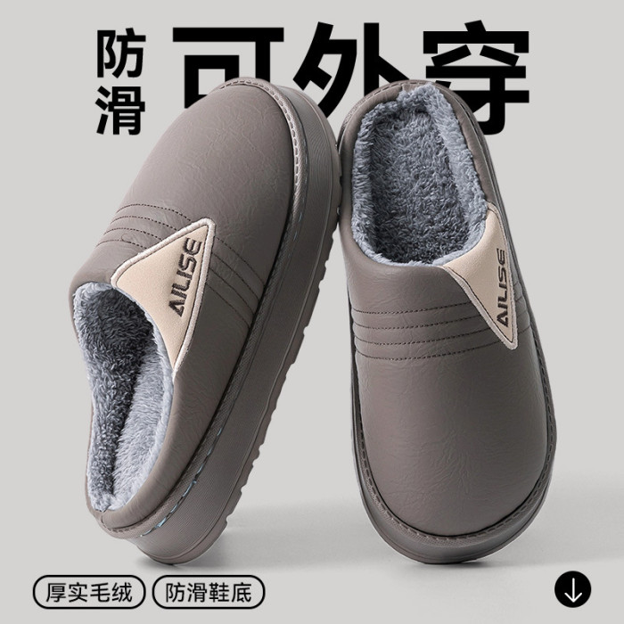防水棉拖鞋男款秋冬季2025新款居家居室內保暖大碼毛毛絨厚底棉鞋