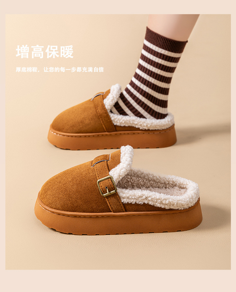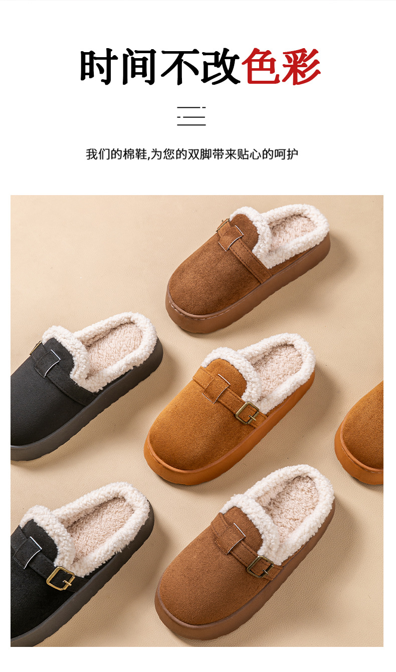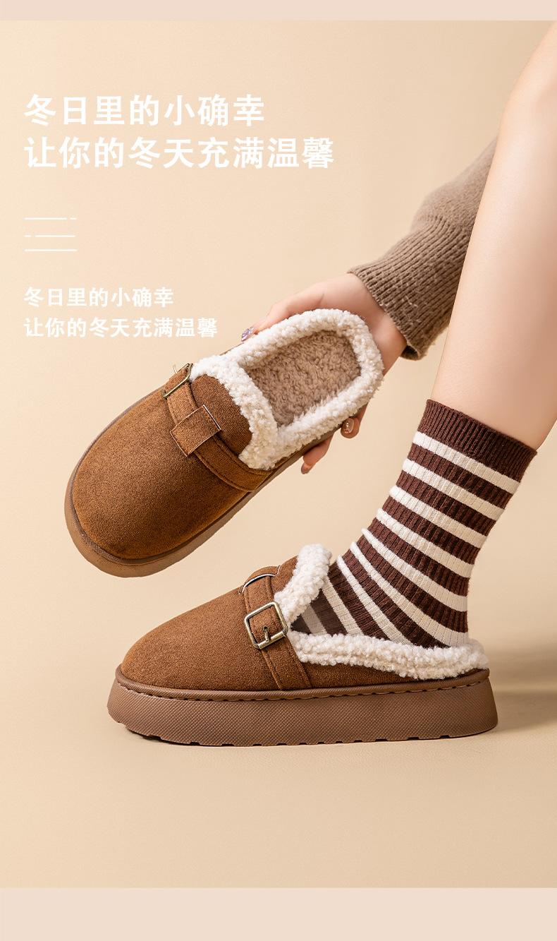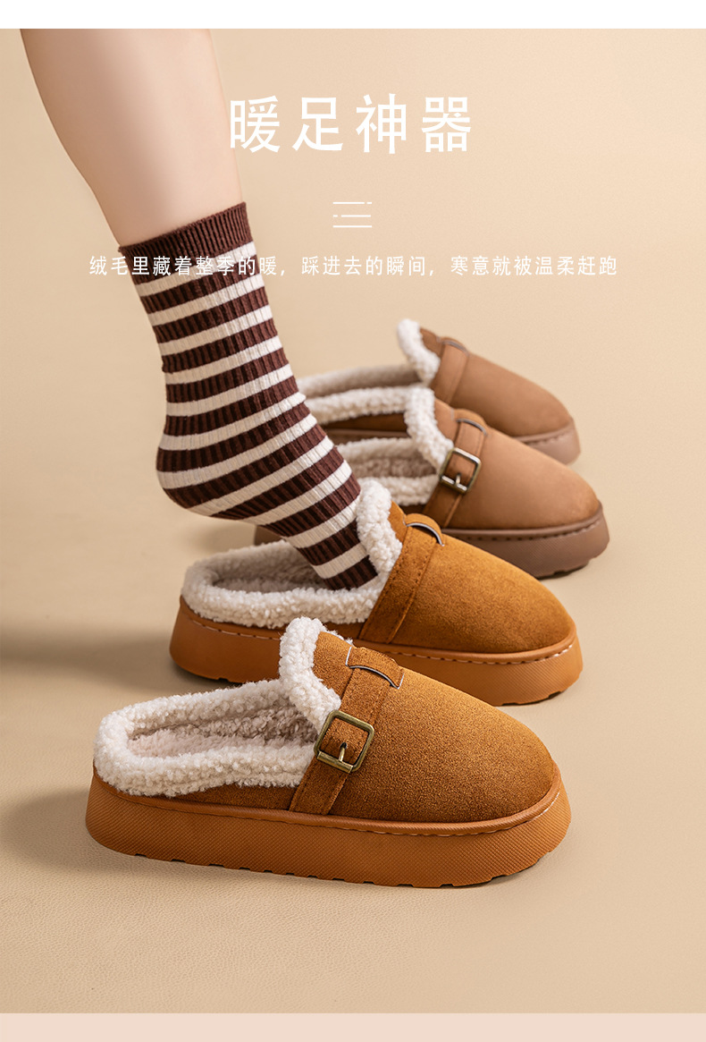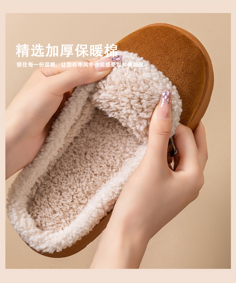 時尚勃肯鞋女秋冬季新款室內家居毛毛絨厚底保暖棉拖鞋女冬天外穿