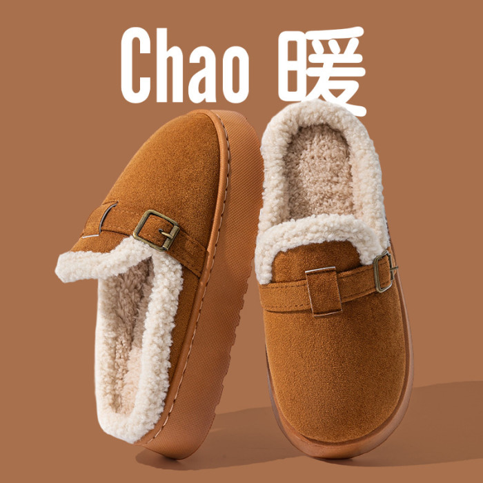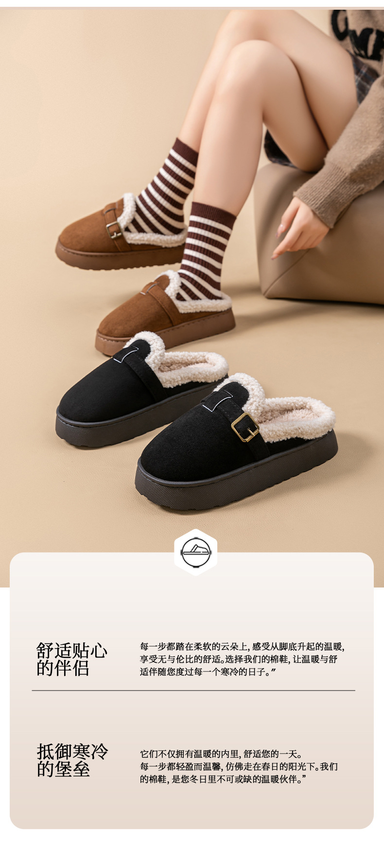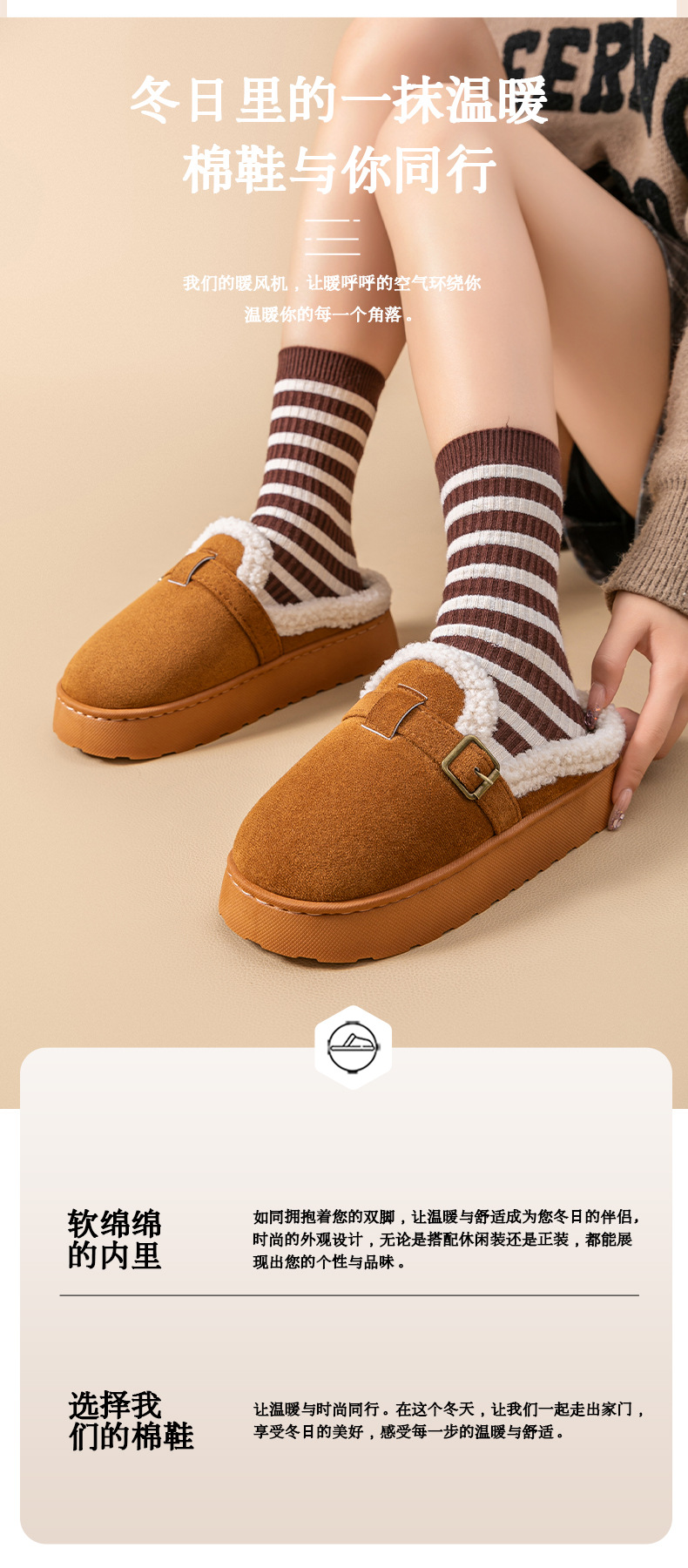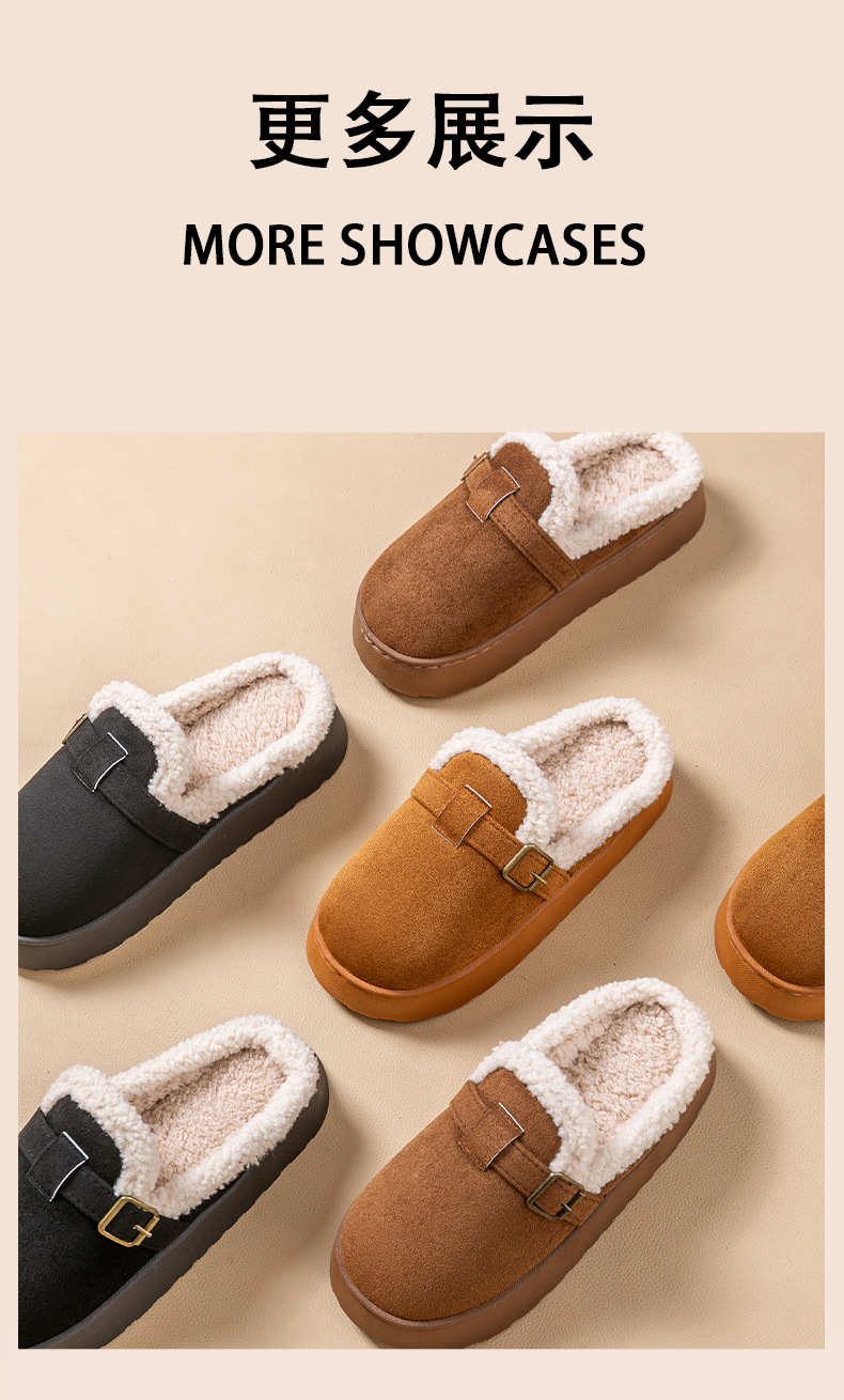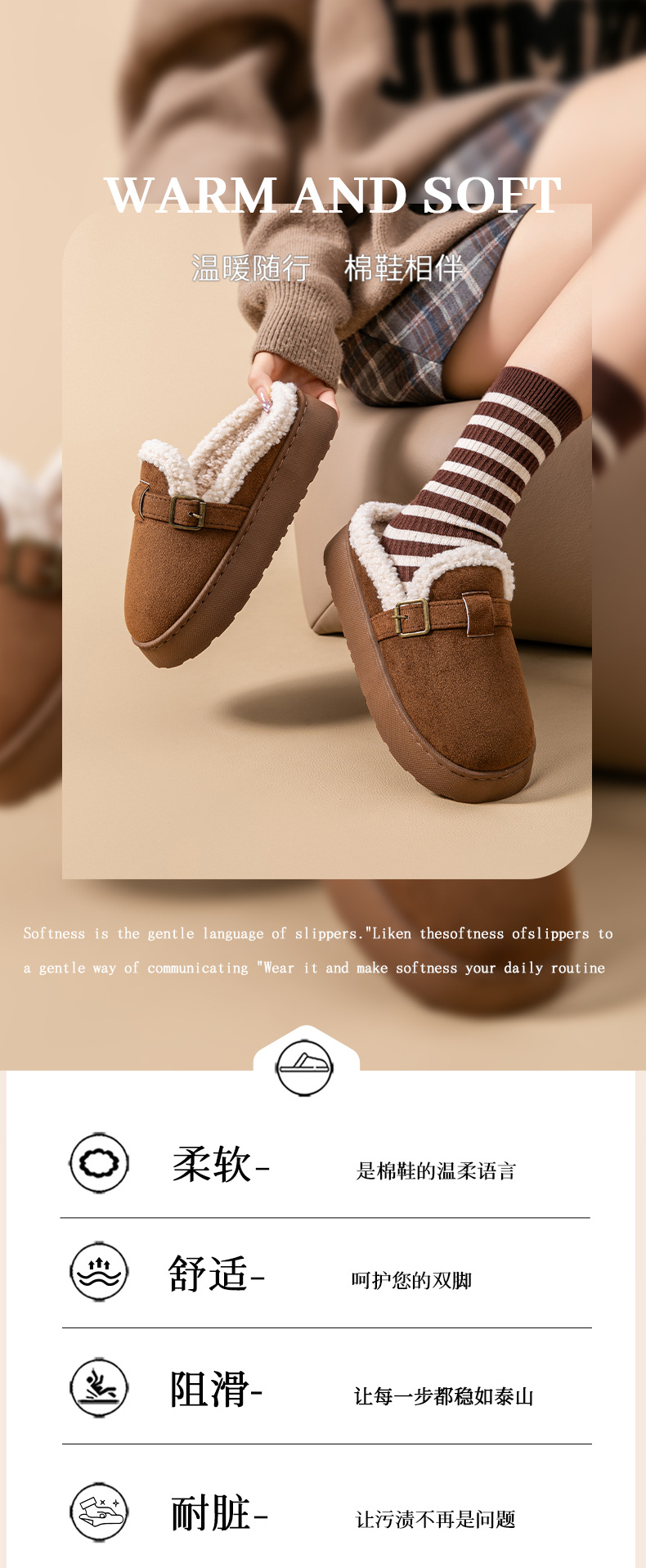 時尚勃肯鞋女秋冬季新款室內家居毛毛絨厚底保暖棉拖鞋女冬天外穿