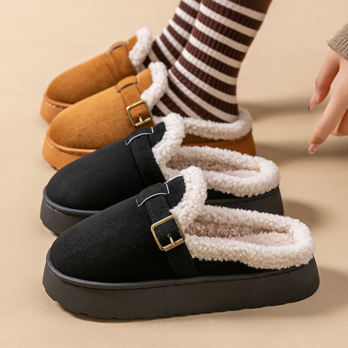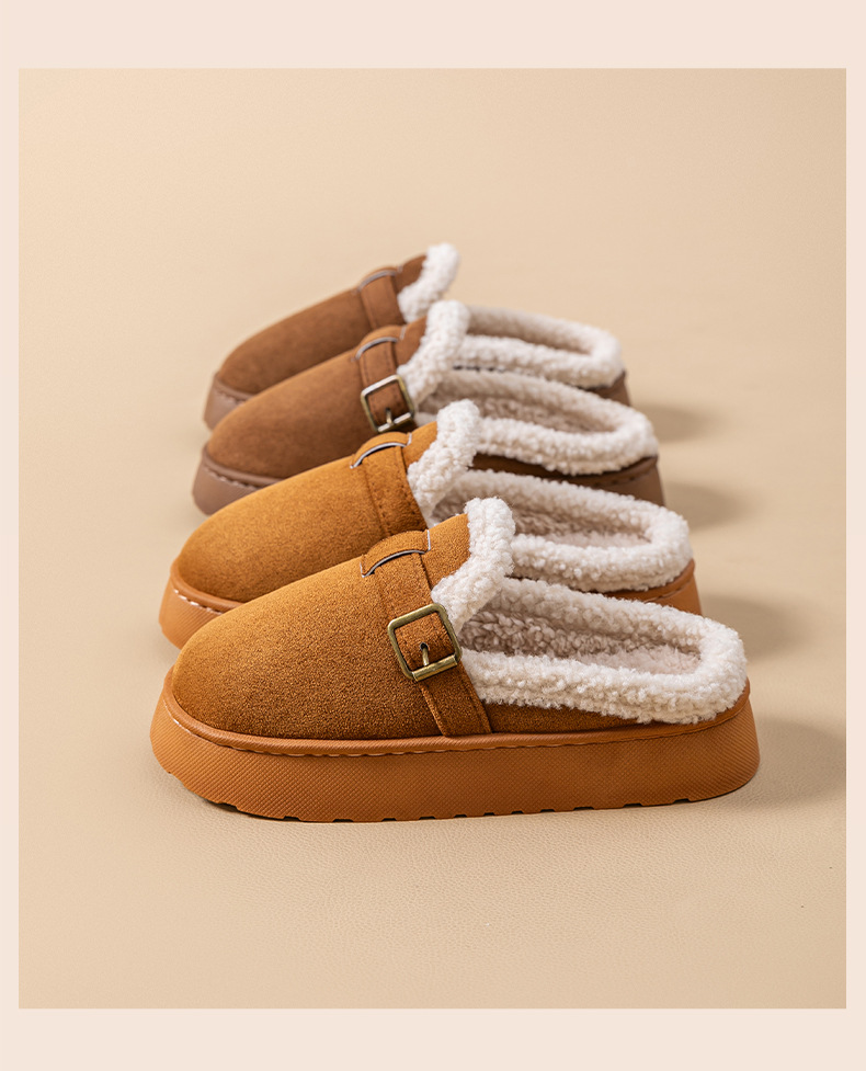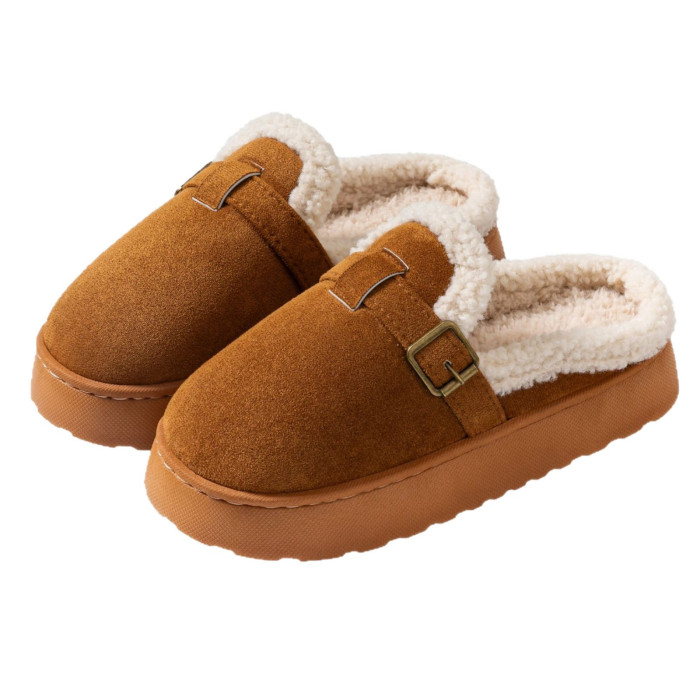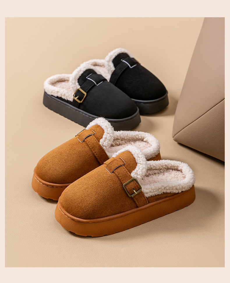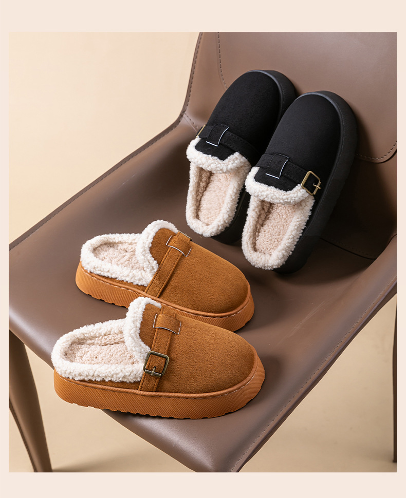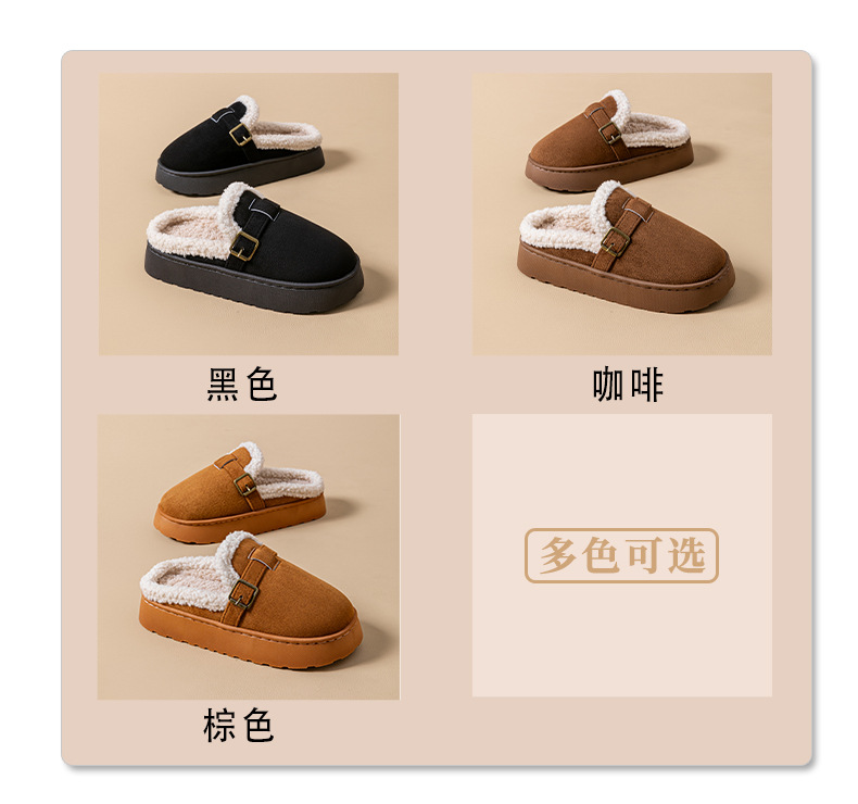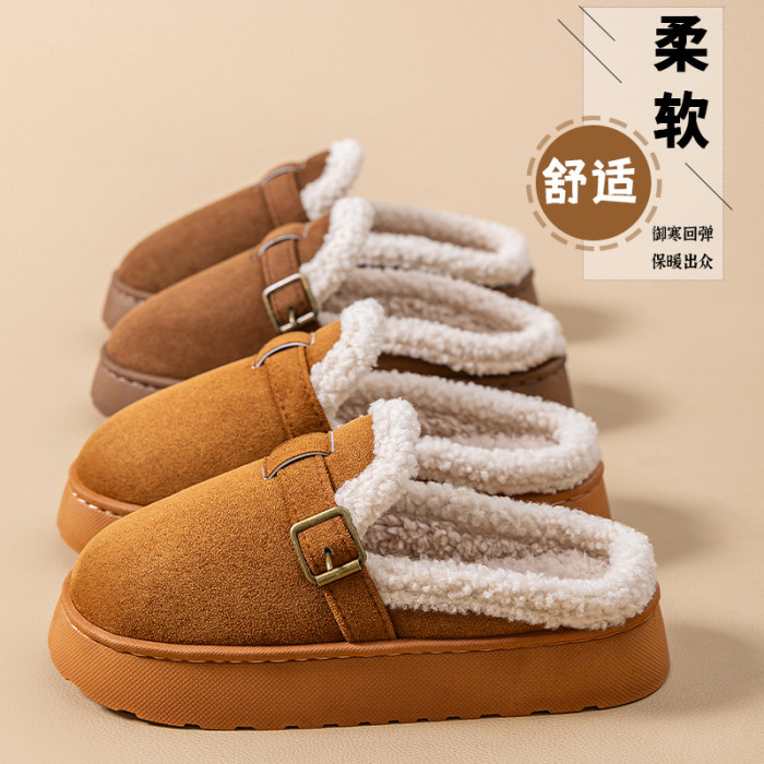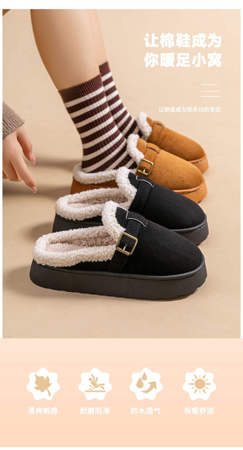 時尚勃肯鞋女秋冬季新款室內家居毛毛絨厚底保暖棉拖鞋女冬天外穿
