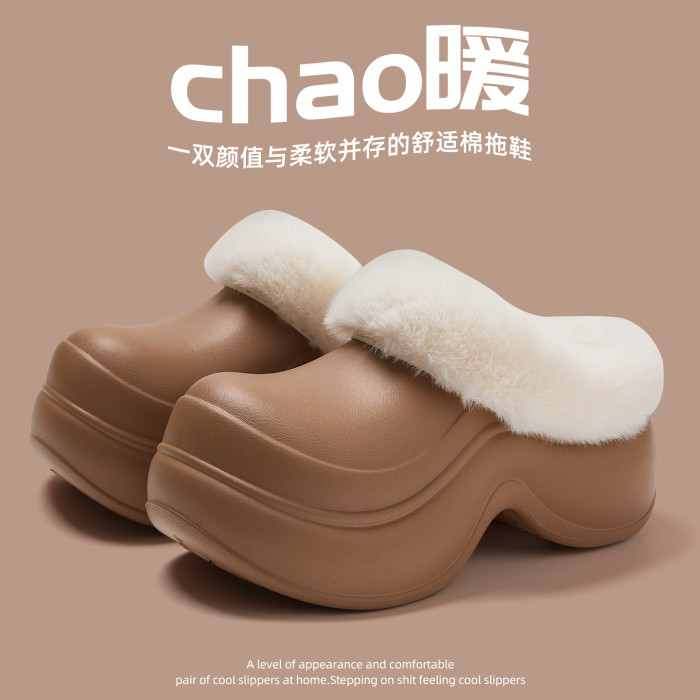 2025新款棉拖鞋女包跟冬季簡約外穿厚底防滑毛絨保暖棉鞋女士