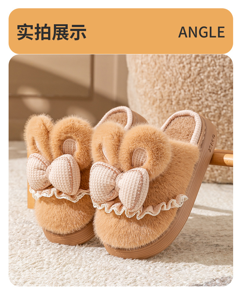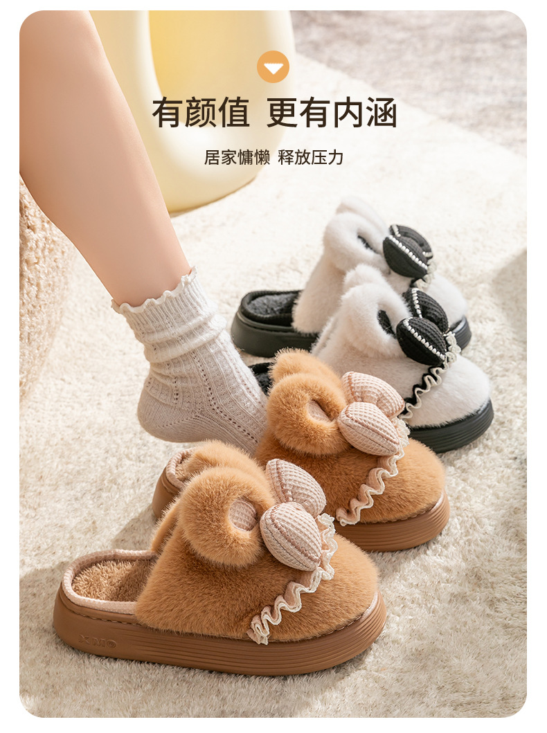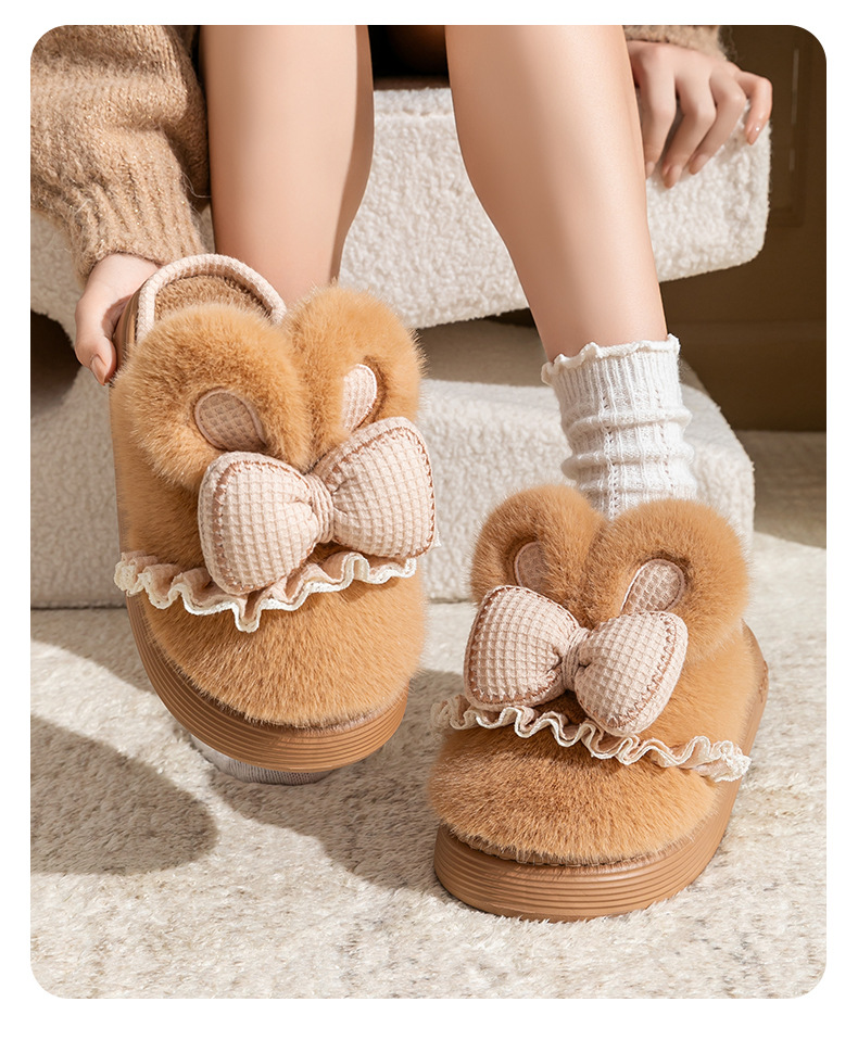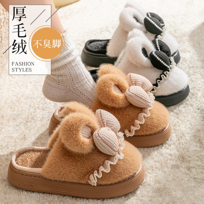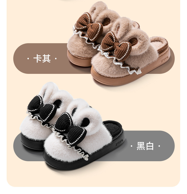 新款冬季女款厚毛絨蝴蝶結棉拖鞋居家室內保暖防滑可愛情侶棉鞋