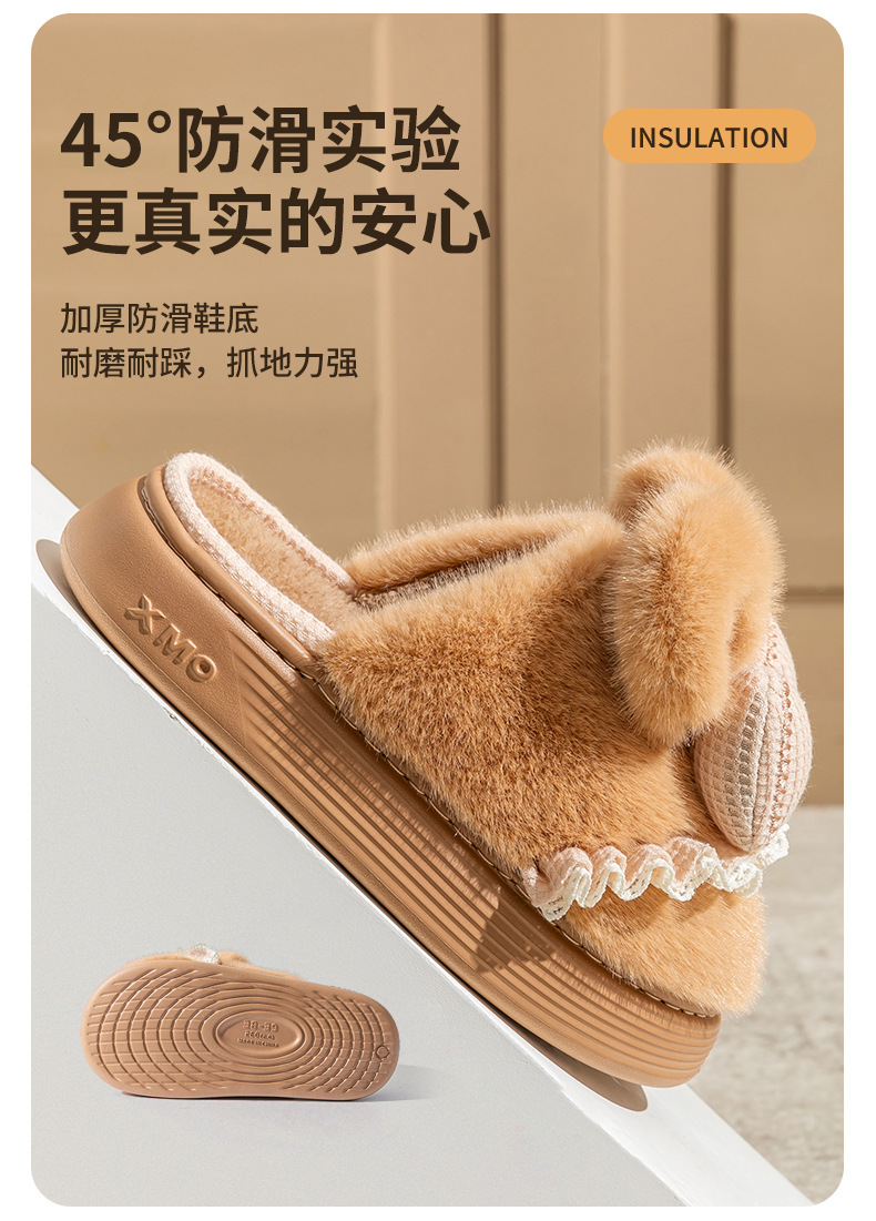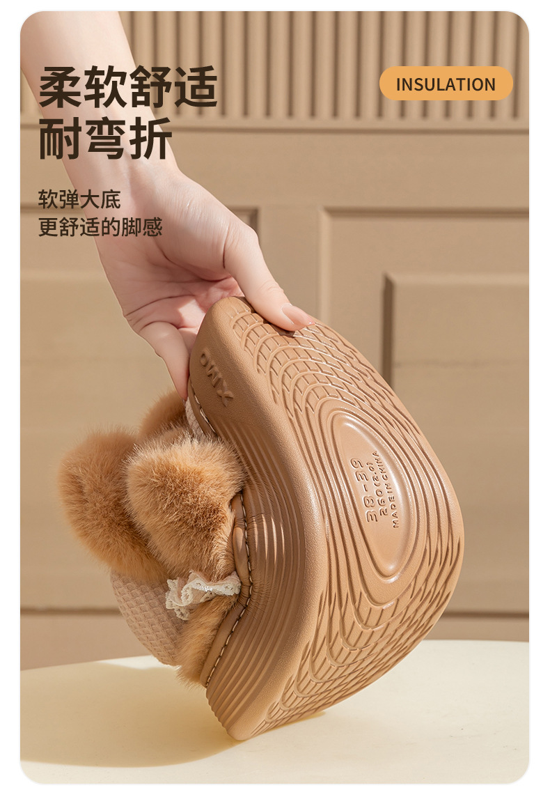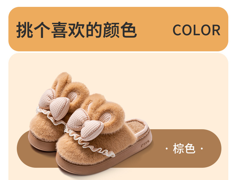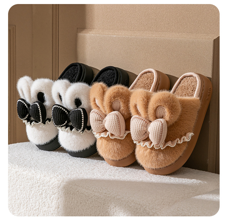 新款冬季女款厚毛絨蝴蝶結棉拖鞋居家室內保暖防滑可愛情侶棉鞋