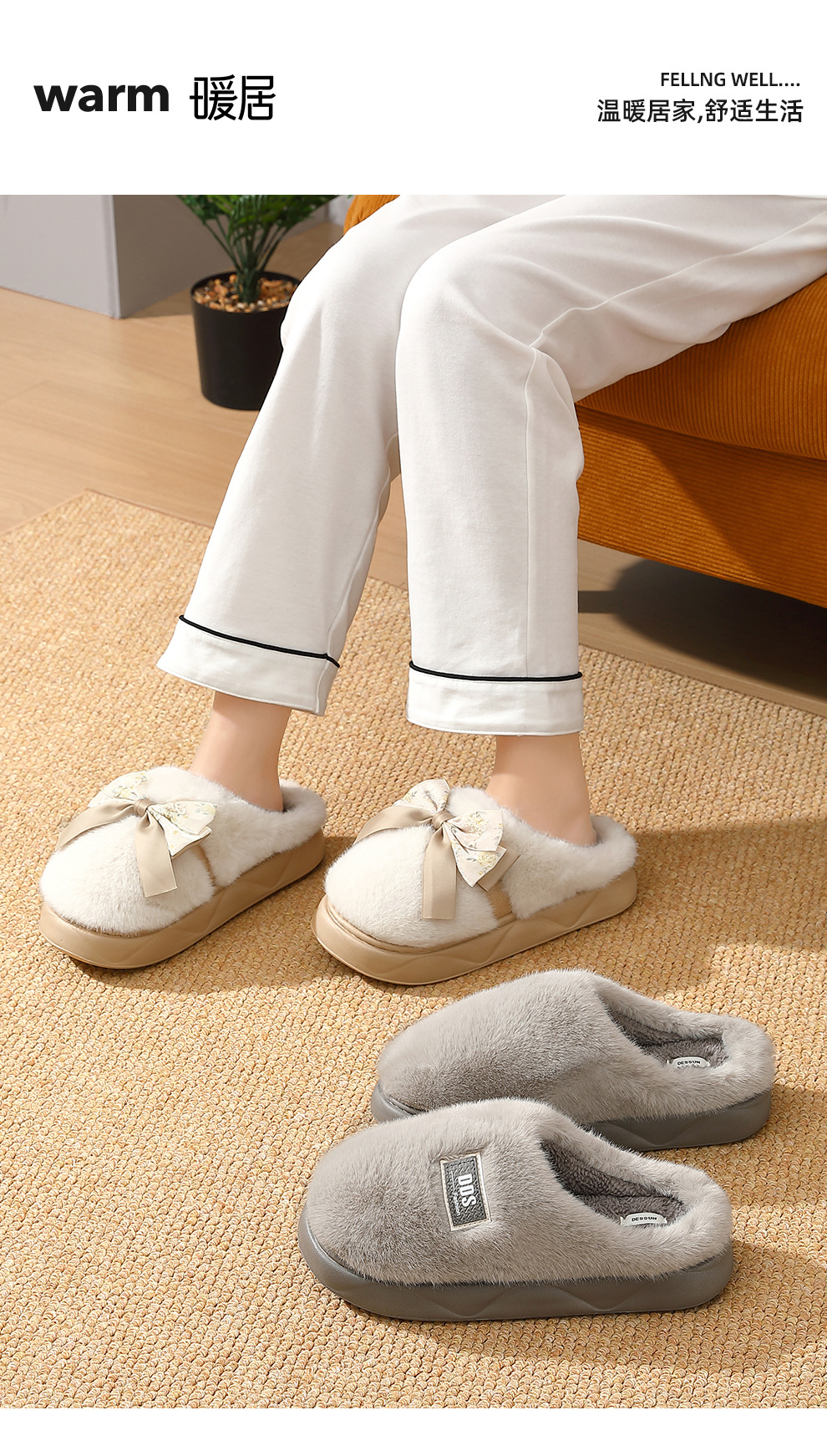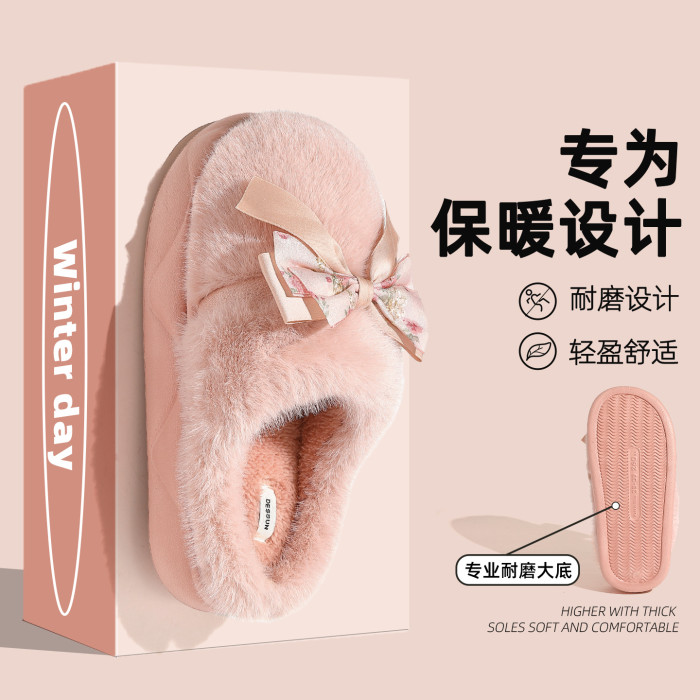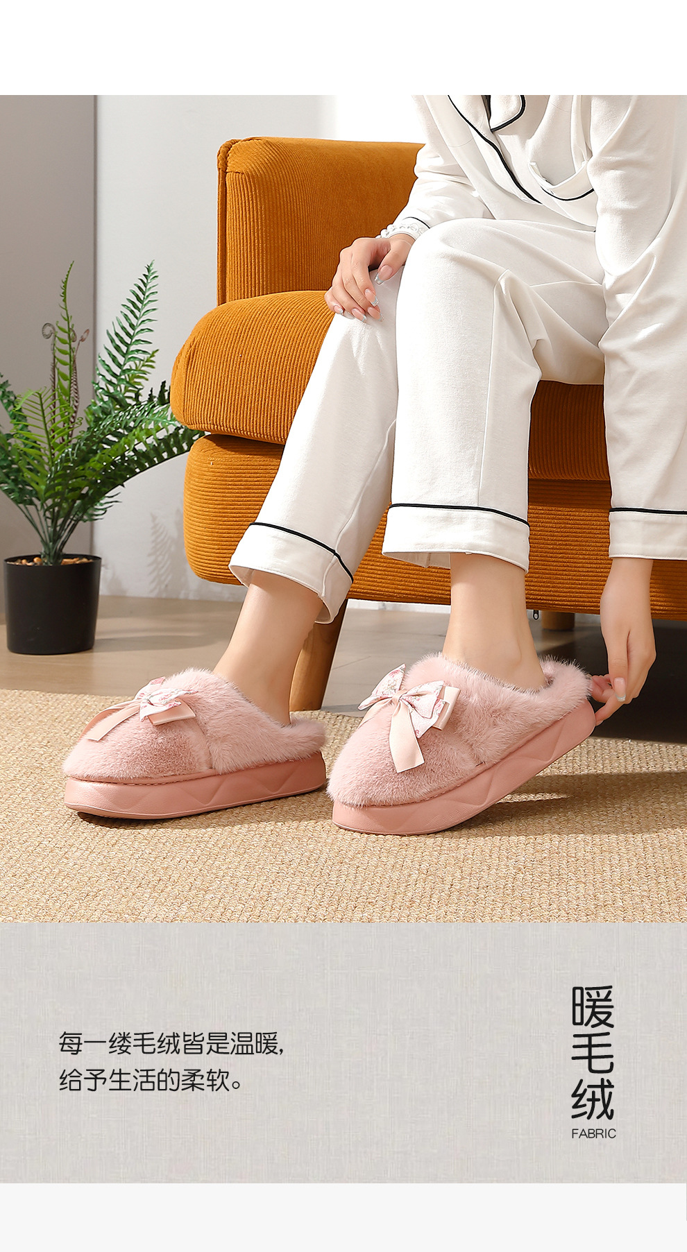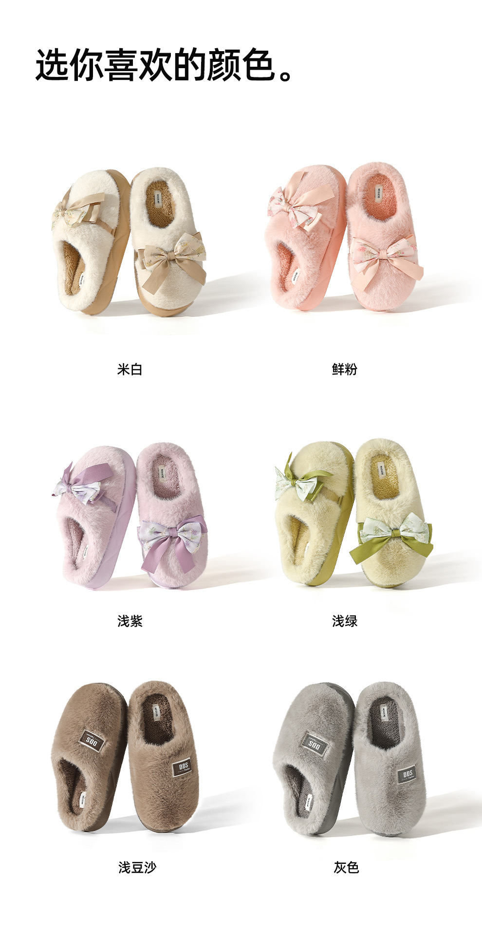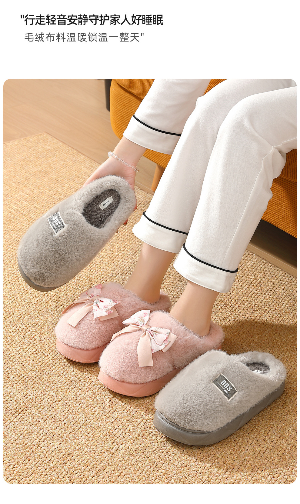 蝴蝶結棉拖鞋女士秋冬季家居室內情侶家用防滑毛絨保暖棉拖男