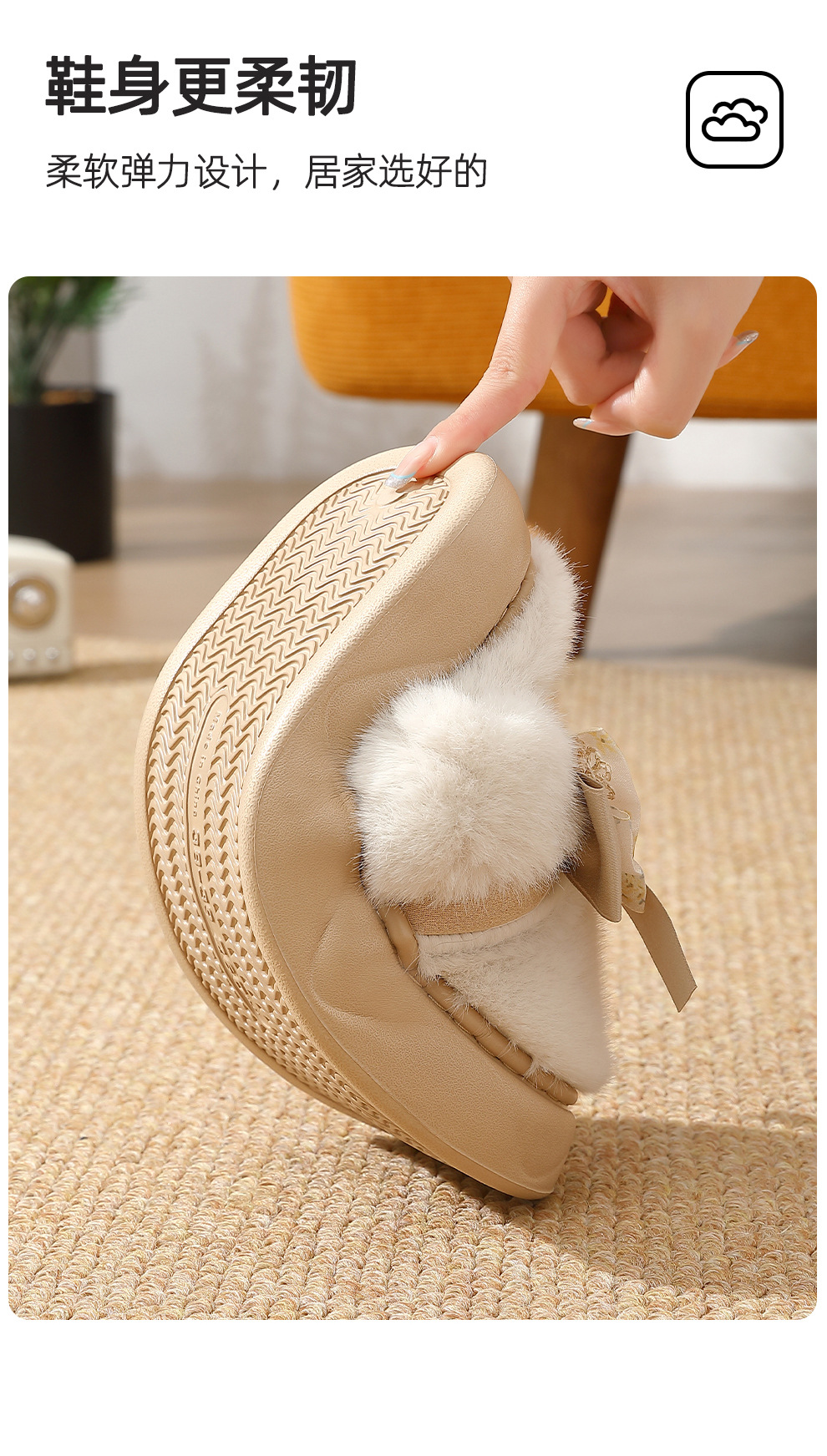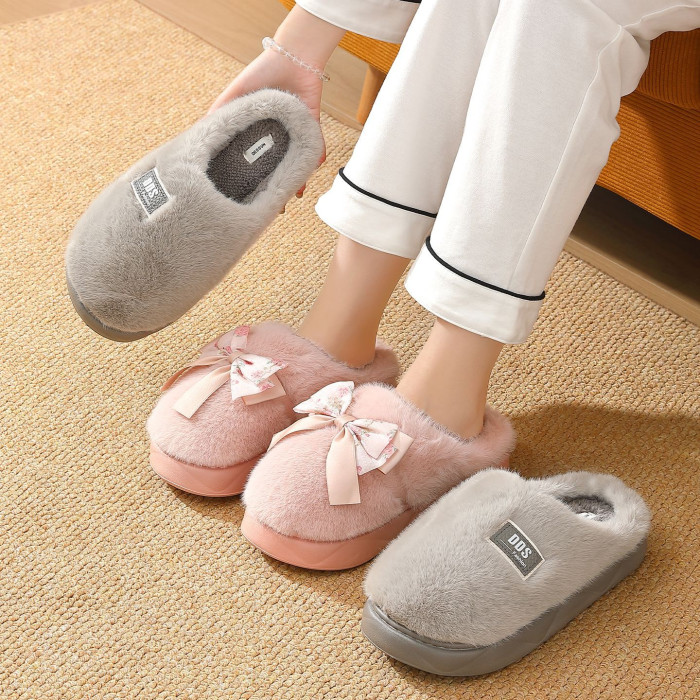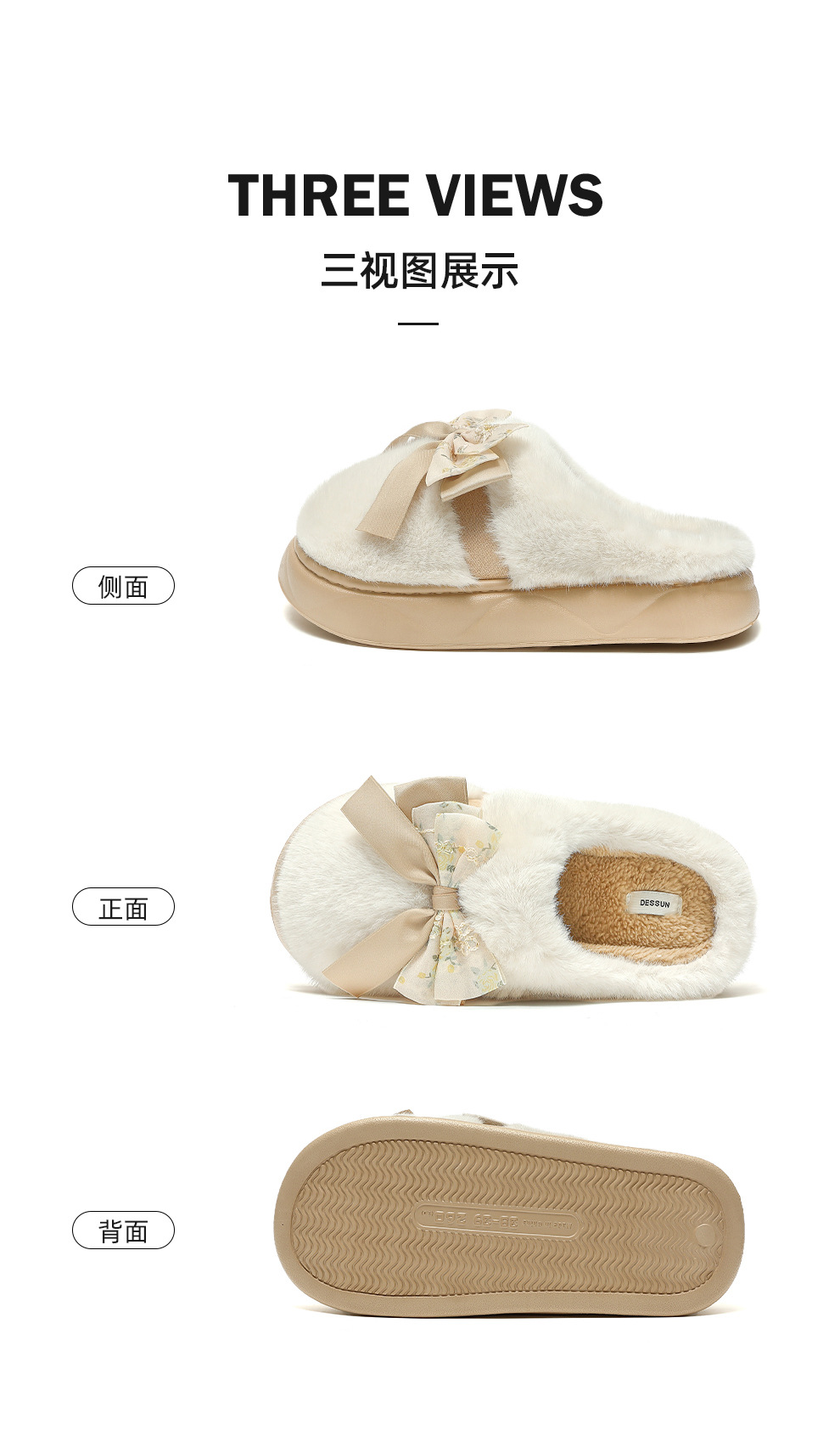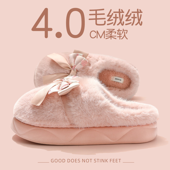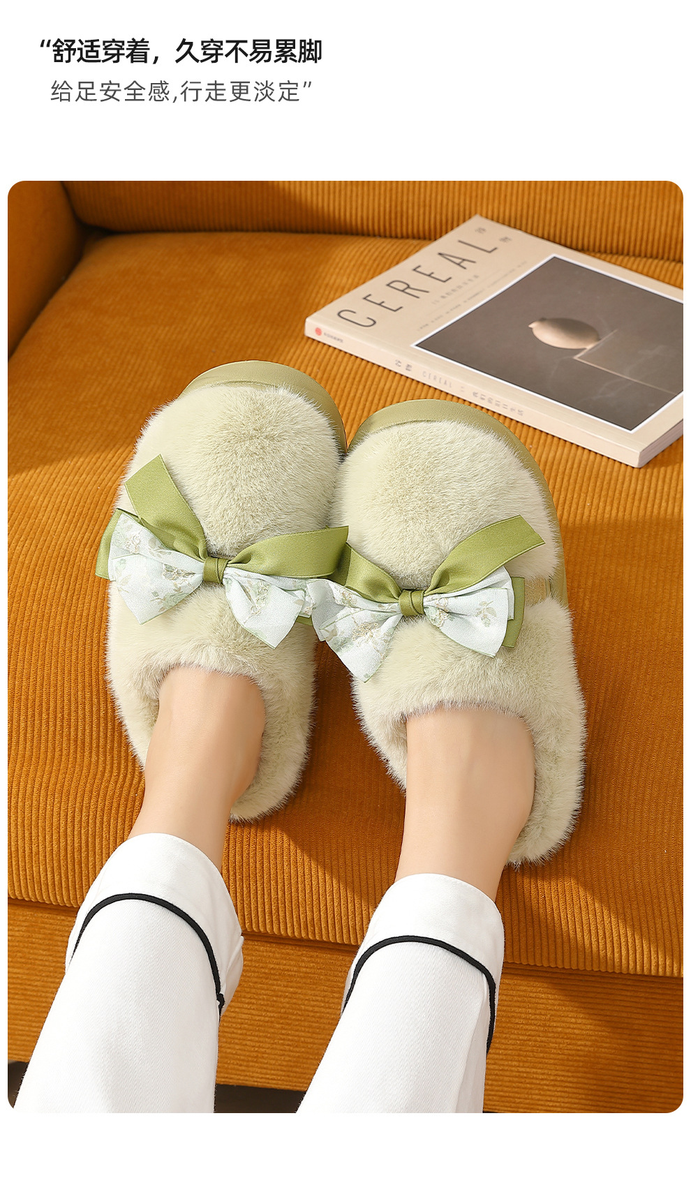 蝴蝶結棉拖鞋女士秋冬季家居室內情侶家用防滑毛絨保暖棉拖男