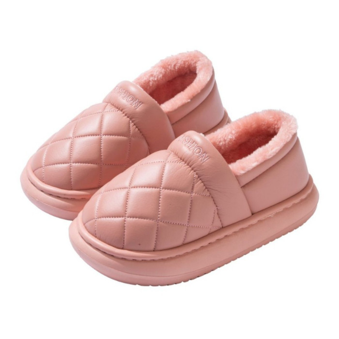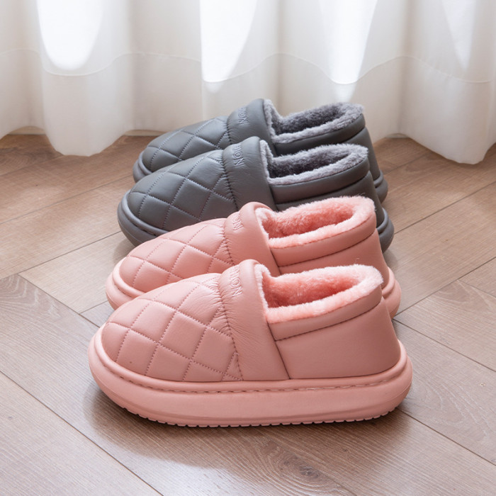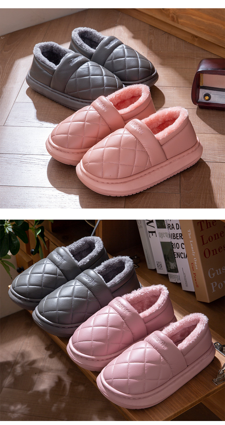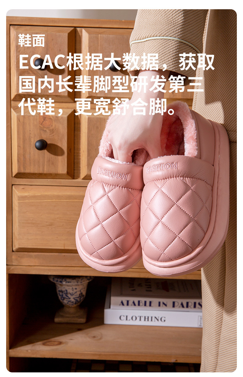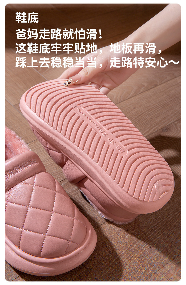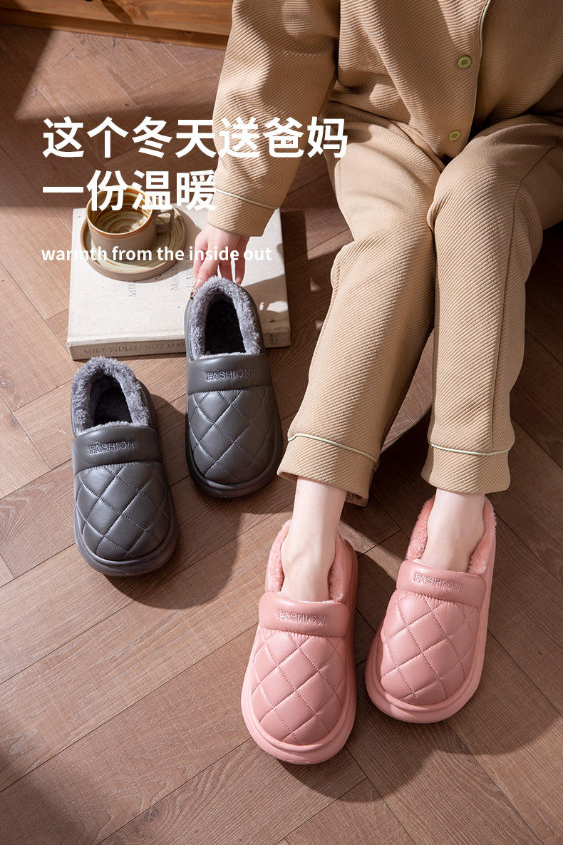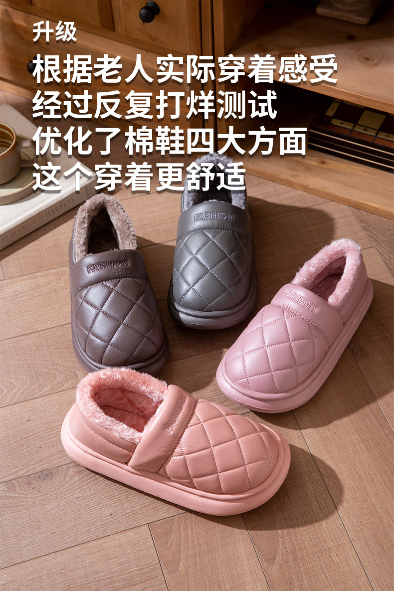 厚底防水棉拖鞋女冬季室內家居全包跟防滑保暖中老年人棉鞋男外穿