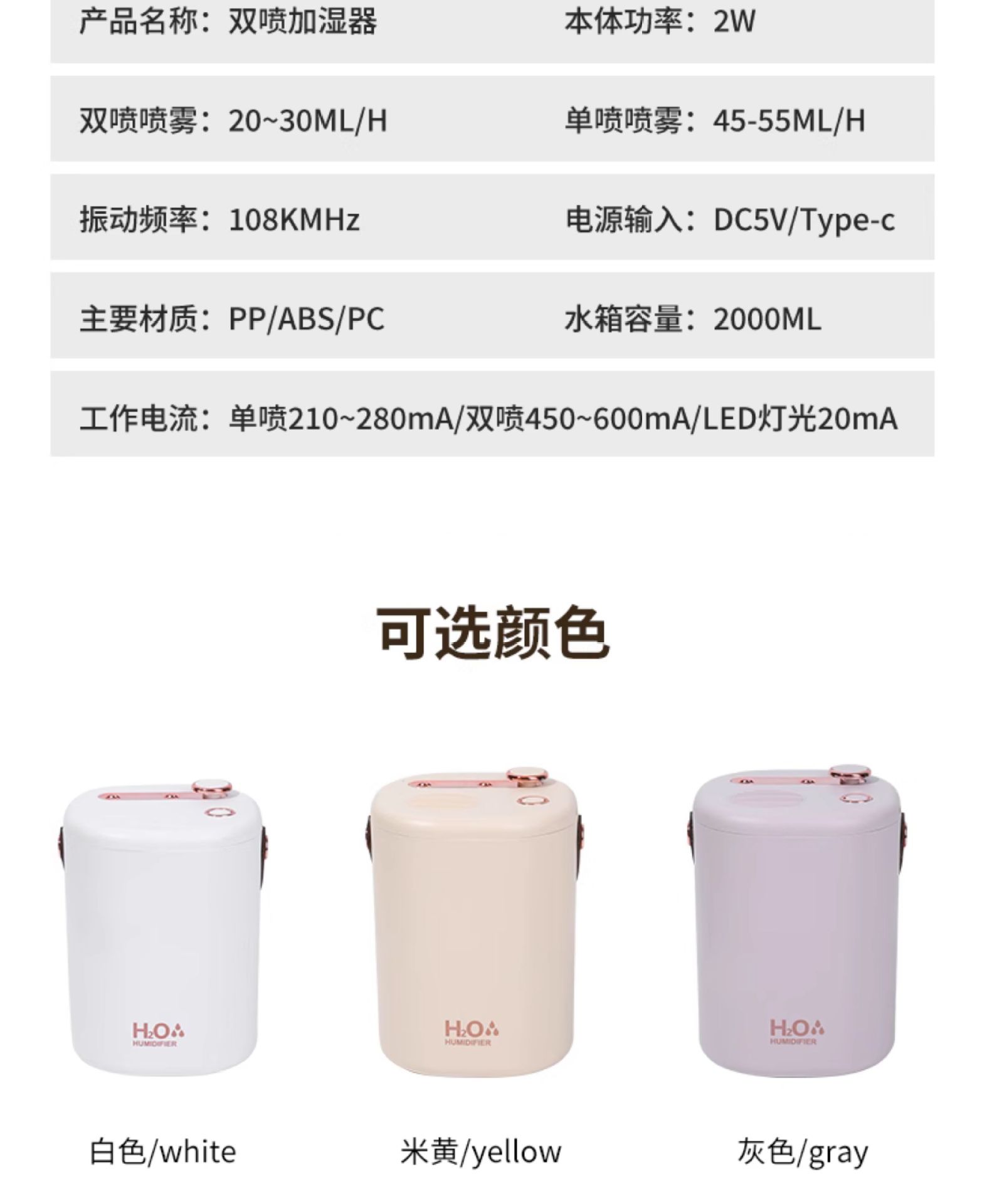| 顔色 | 升級充插兩用【冷灰色】雙噴大霧-三檔智能調節-溫馨夜燈 |
