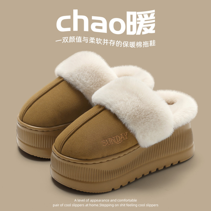 超厚底毛毛拖棉拖鞋女士冬季保暖室內新款居家防滑外穿棉拖女