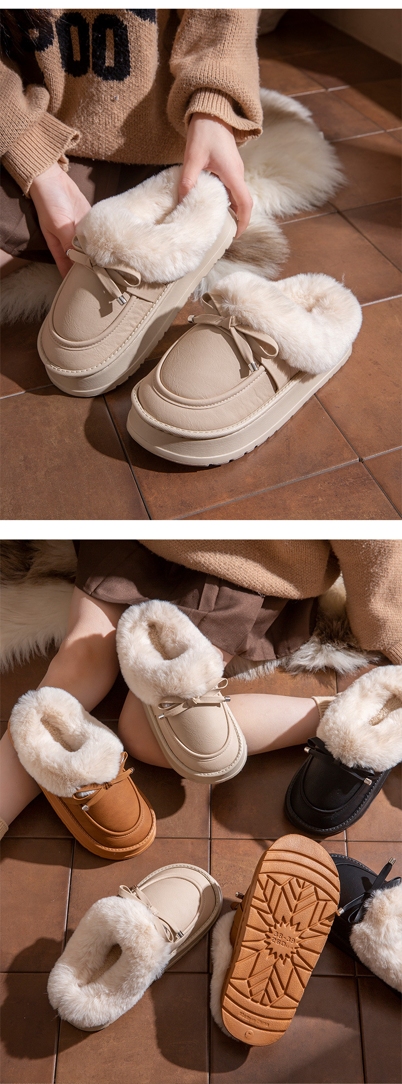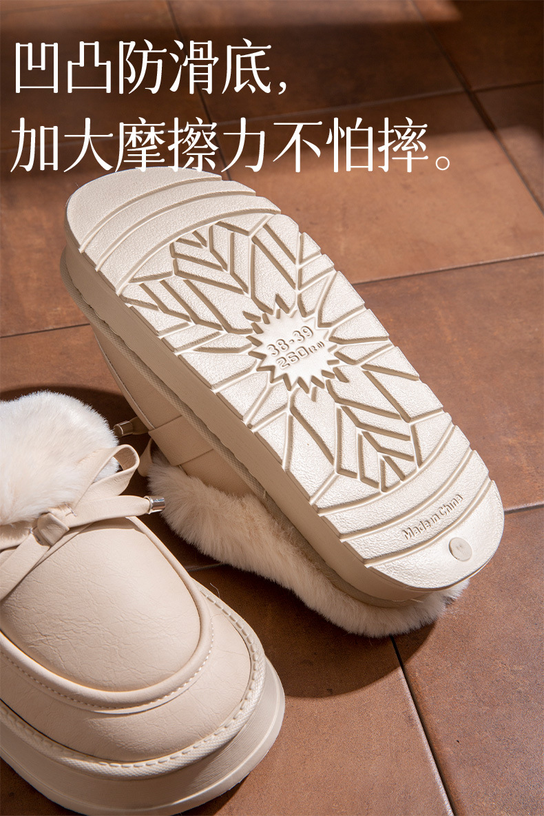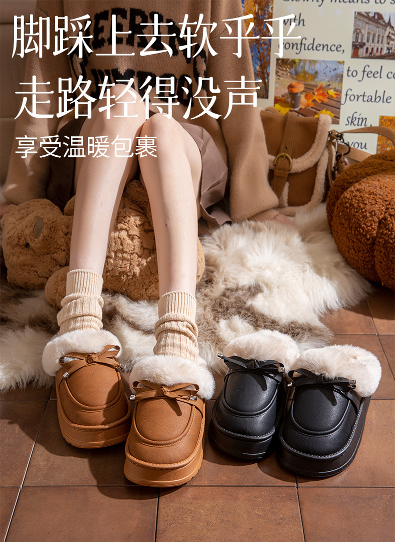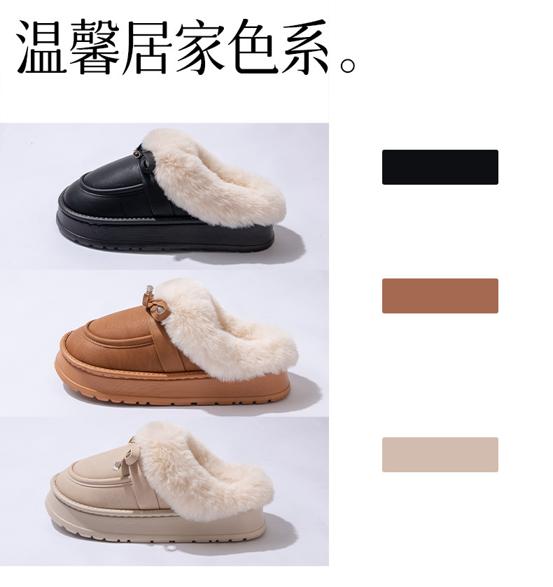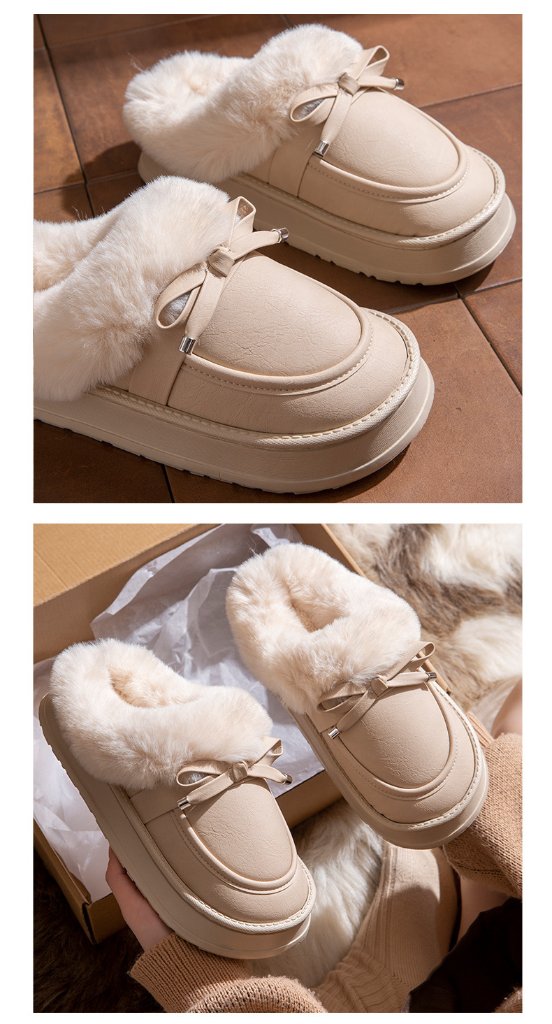 毛毛拖鞋女款冬季室內居家時尚蝴蝶結加絨保暖防滑PU皮防水棉拖鞋