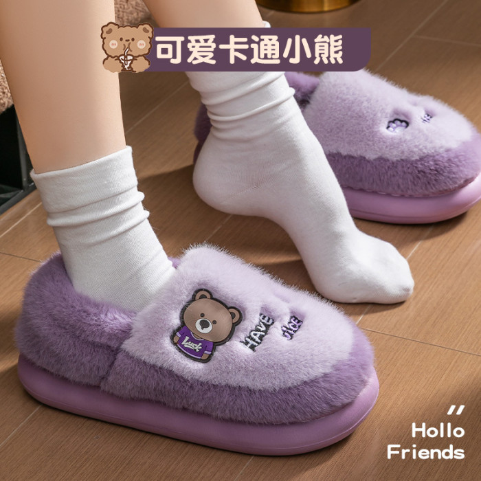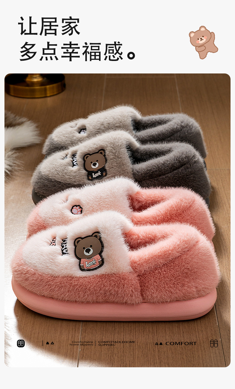 棉拖鞋女款2025秋冬季新款室內家居加絨加厚保暖卡通毛毛絨拖鞋女