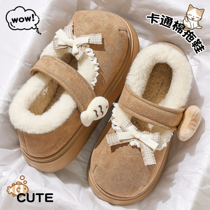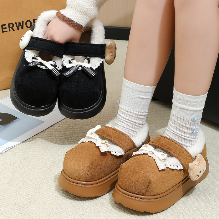 棉鞋女士秋冬外穿2025新款室內可愛厚底保暖毛毛絨包跟棉鞋室外