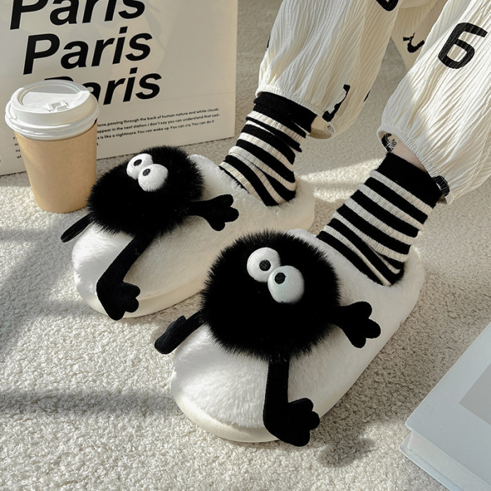 煤球棉拖鞋女秋冬季情侶家居室內毛絨保暖軟底防滑毛毛拖鞋男