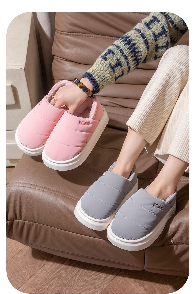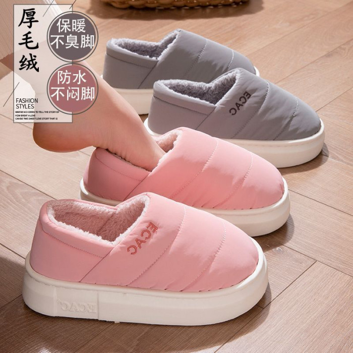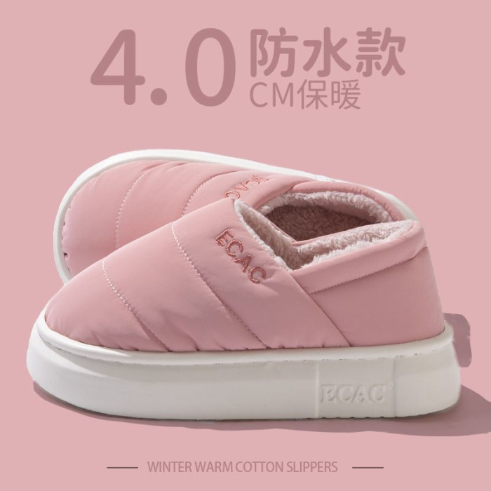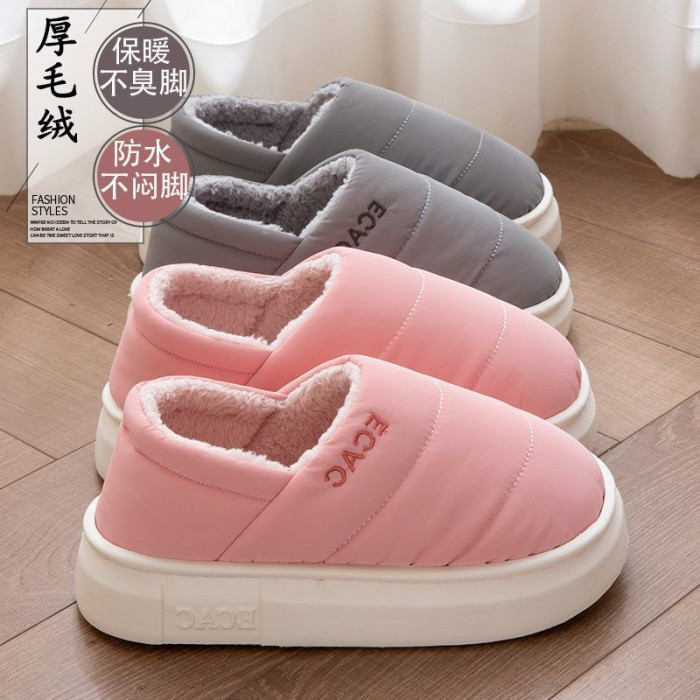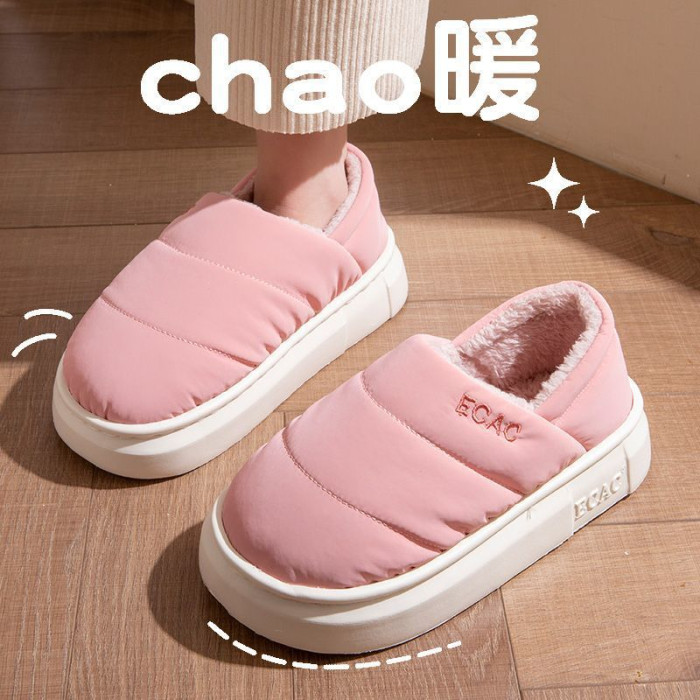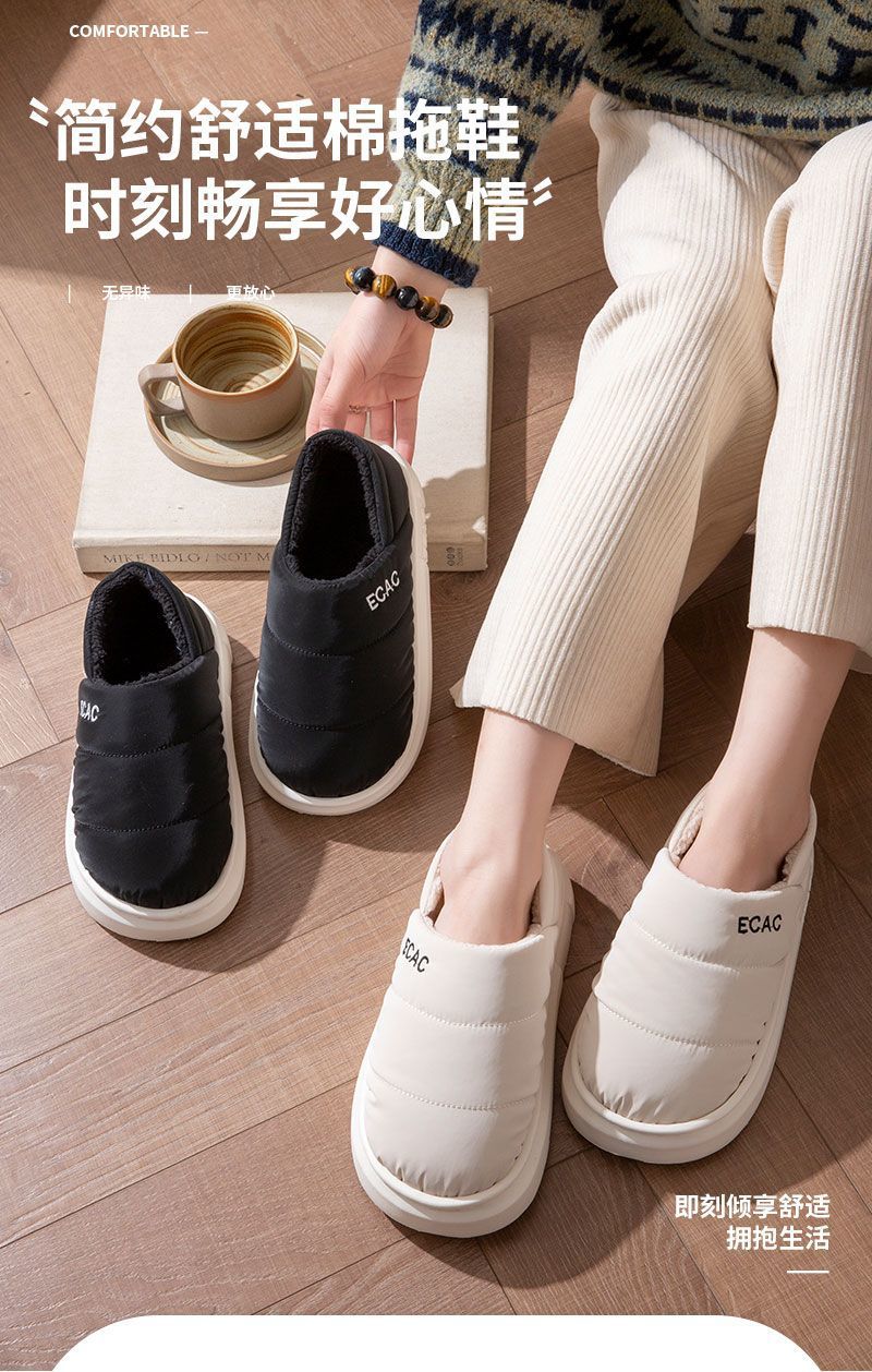 厚底防水棉拖鞋女冬季2025新款家居室內毛絨保暖包跟棉鞋男士外穿