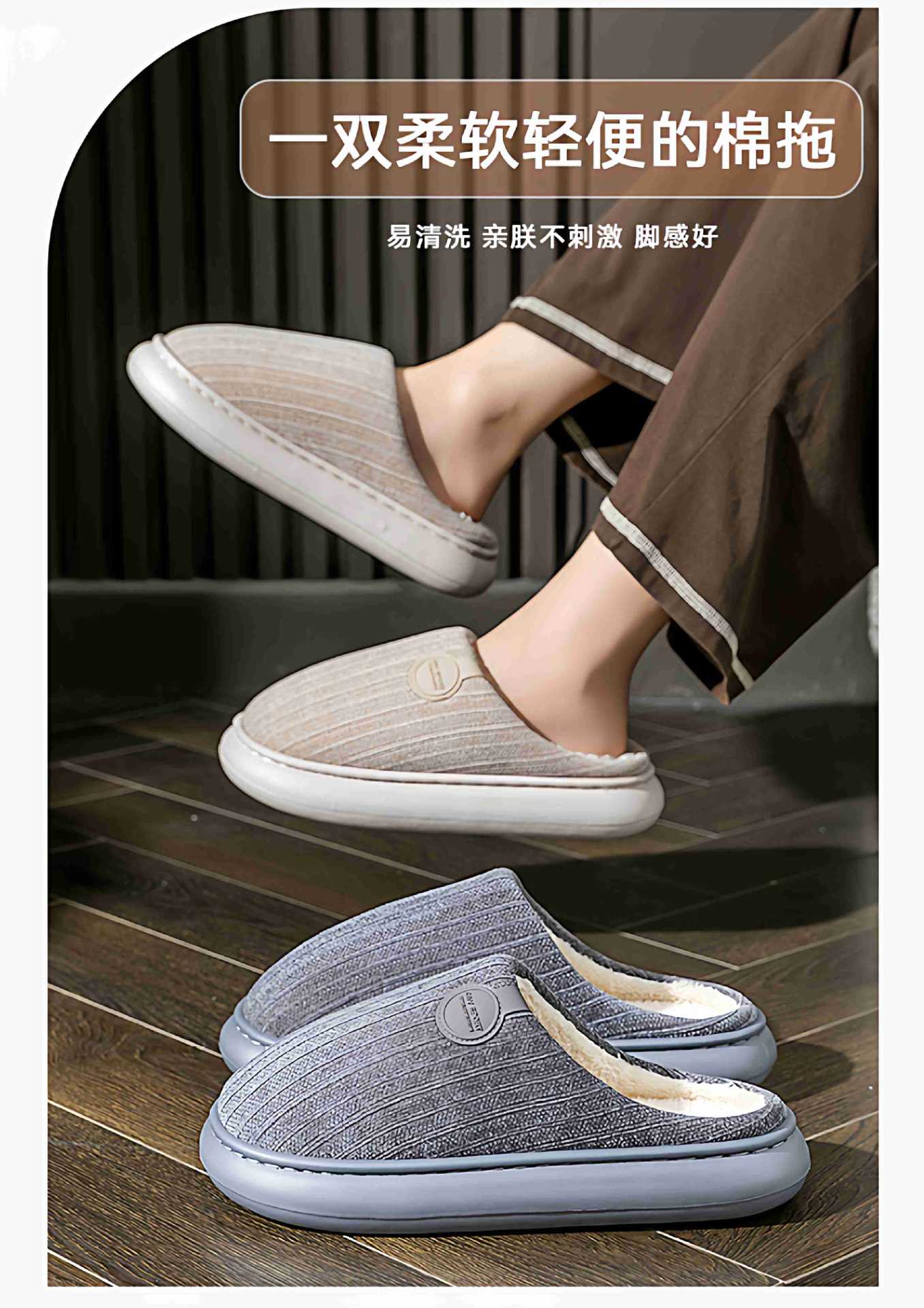 厚底棉拖鞋男士秋冬季2025新款室內家居防滑加絨加厚保暖毛絨拖鞋