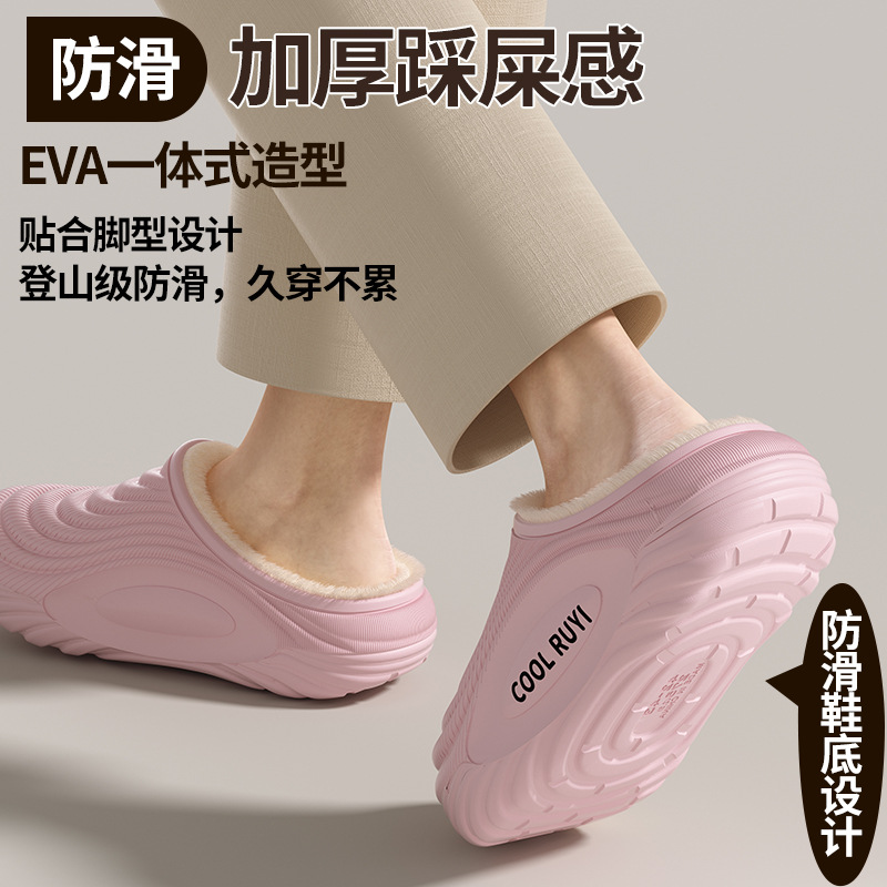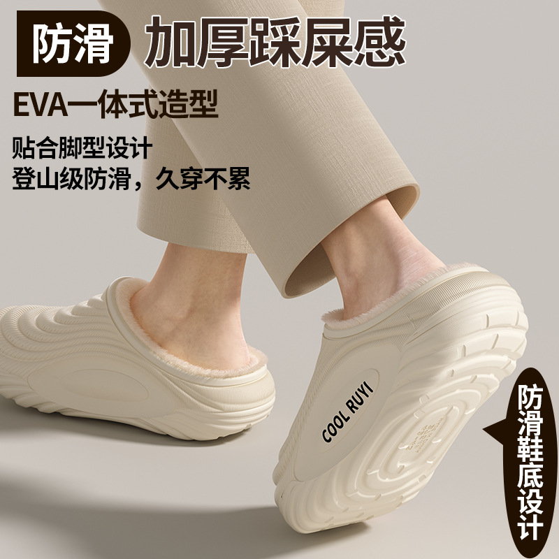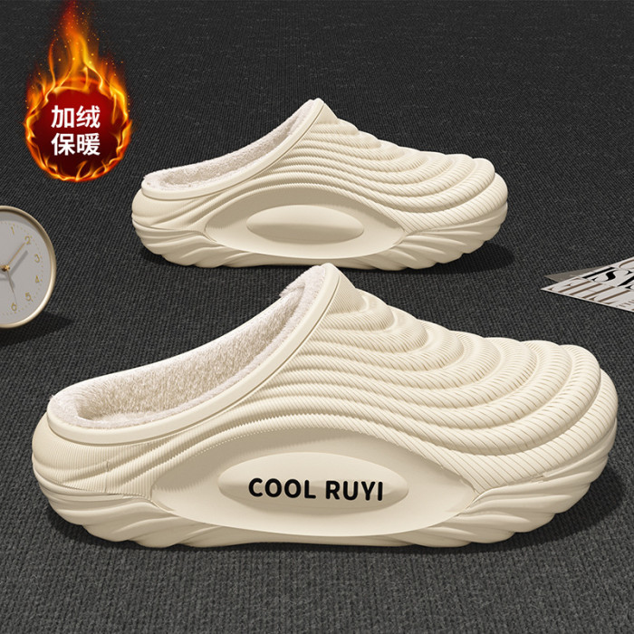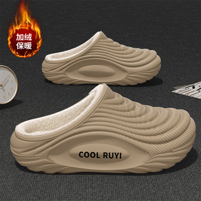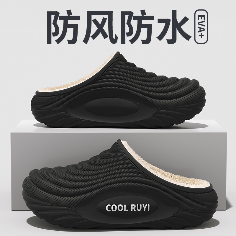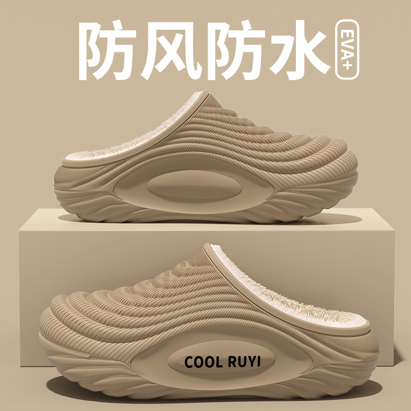 加絨保暖厚底棉拖潮流男士eva半拖冬季居家防滑外穿棉拖鞋
