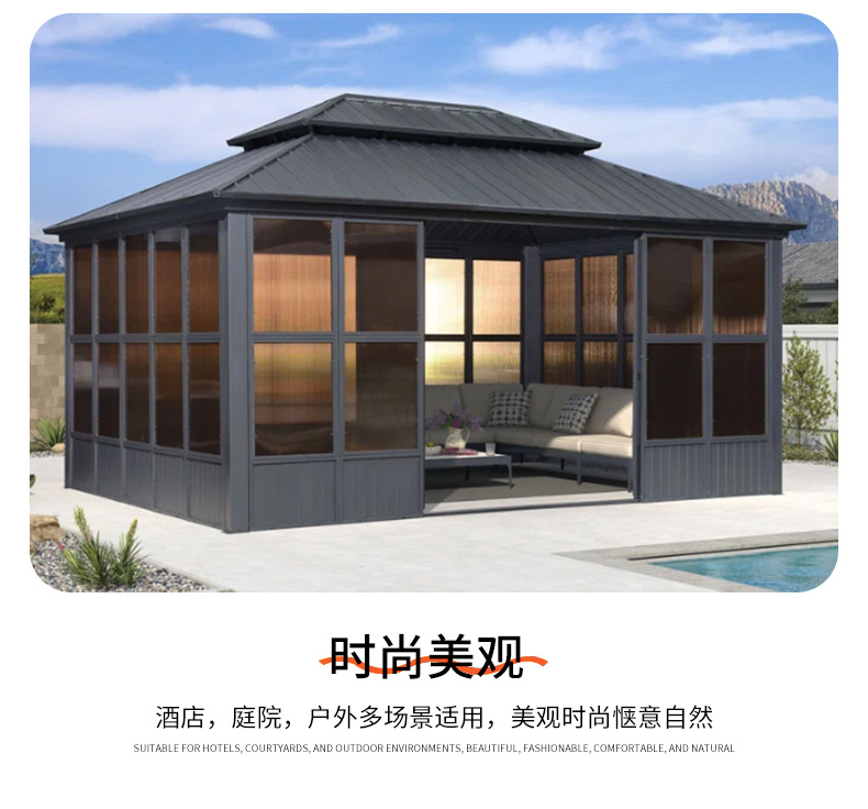 家用室外挑簷八邊形支架滌綸帳篷露營野餐加厚防曬防蚊雙層頂帳篷