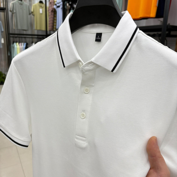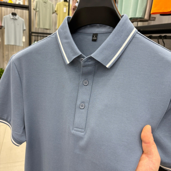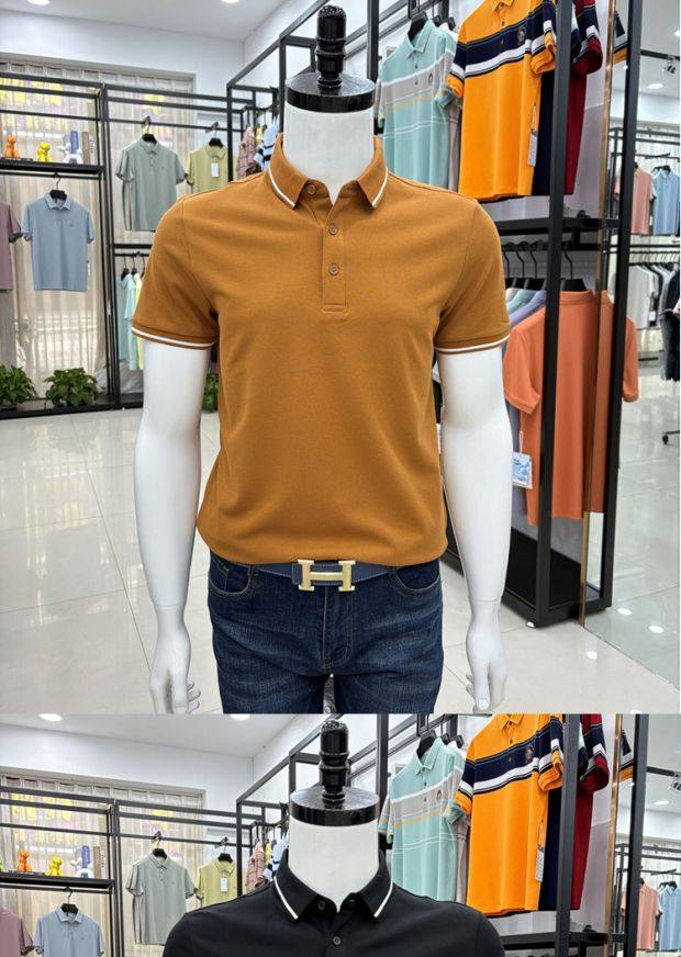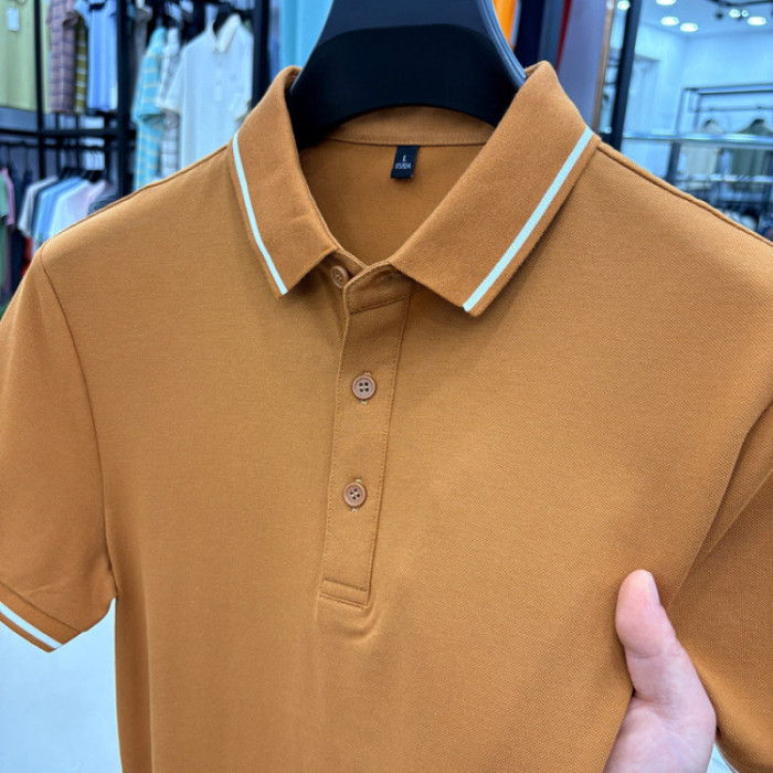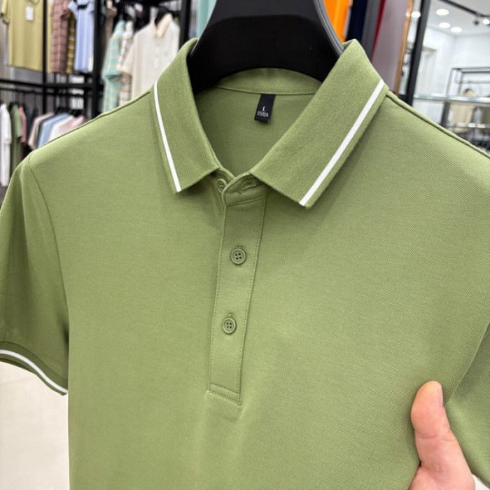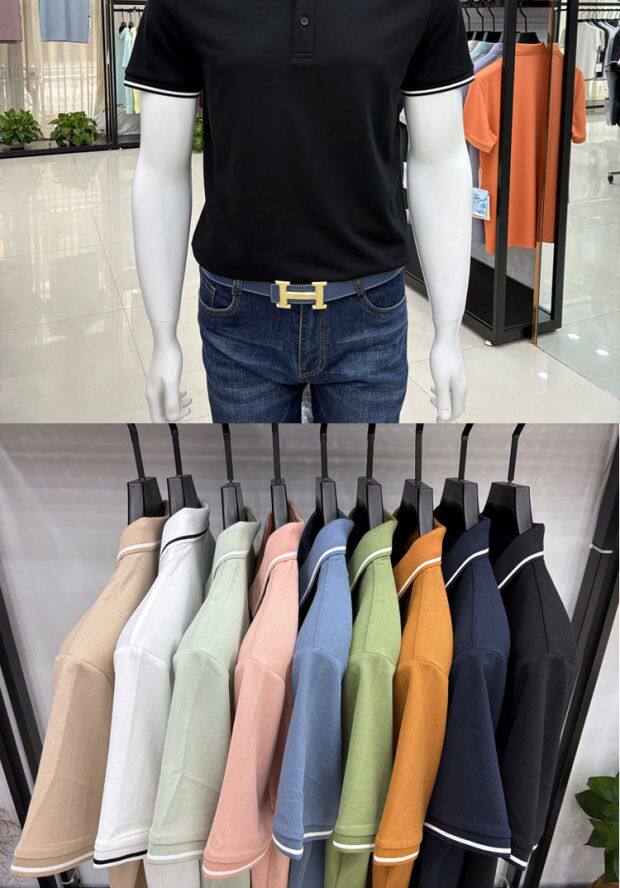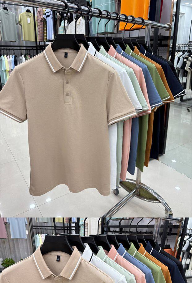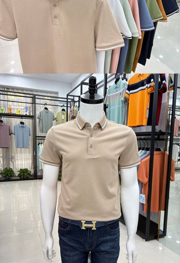 7A抗菌除蟎絲光棉純色短袖男T恤2025夏翻領男短袖中年短袖POLO衫