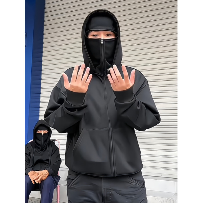 美式高街巴拉克拉法連帽衛衣男款秋季潮牌高級感cleanfit開衫外套
