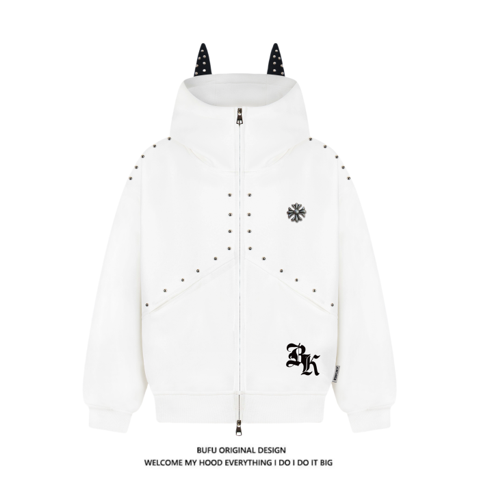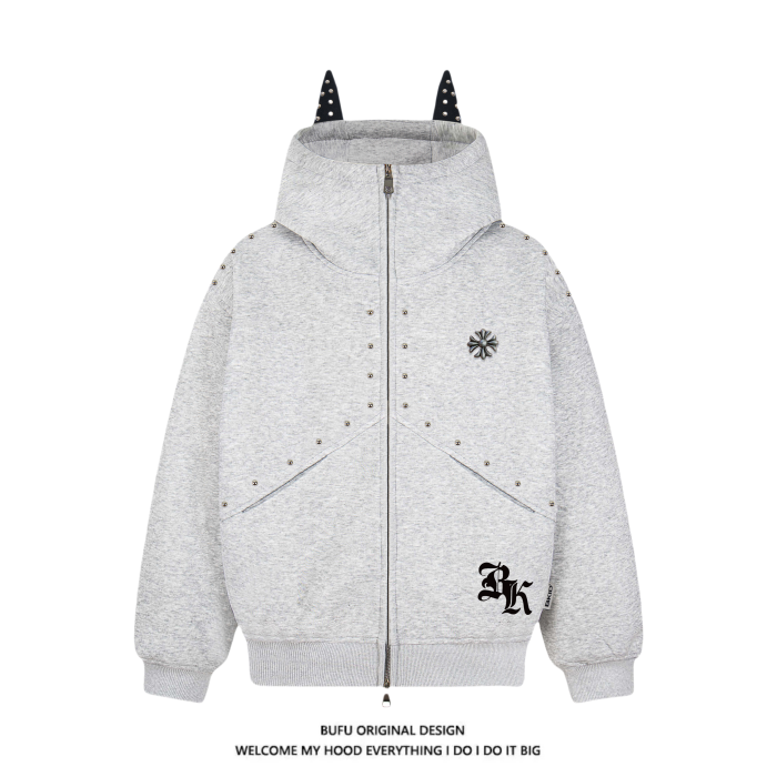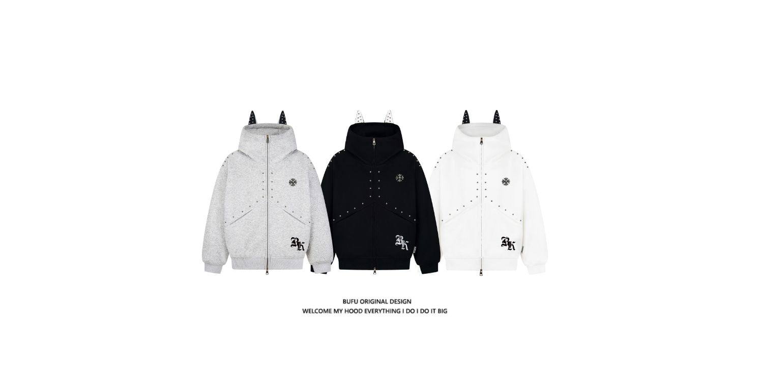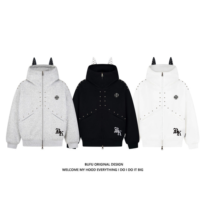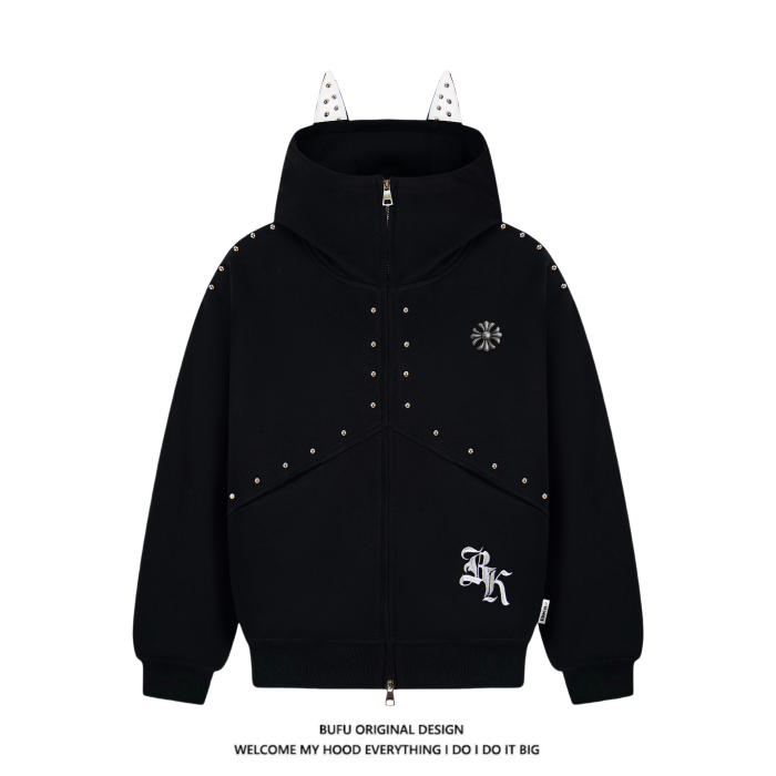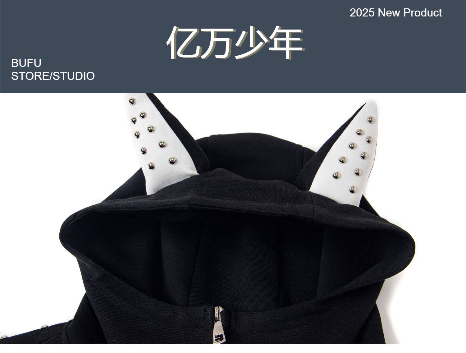 億萬少年BUFU美式鉚釘小惡魔衛衣連帽男女秋季情侶杜賓犬寬松外套