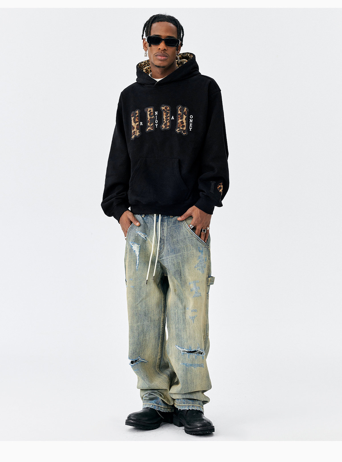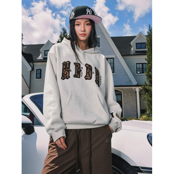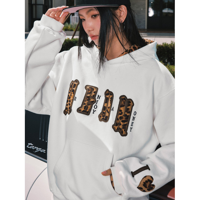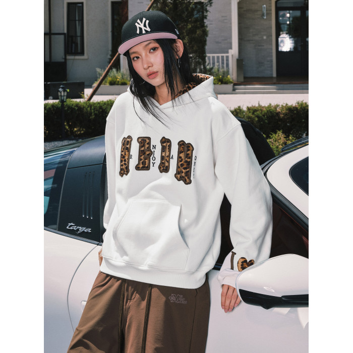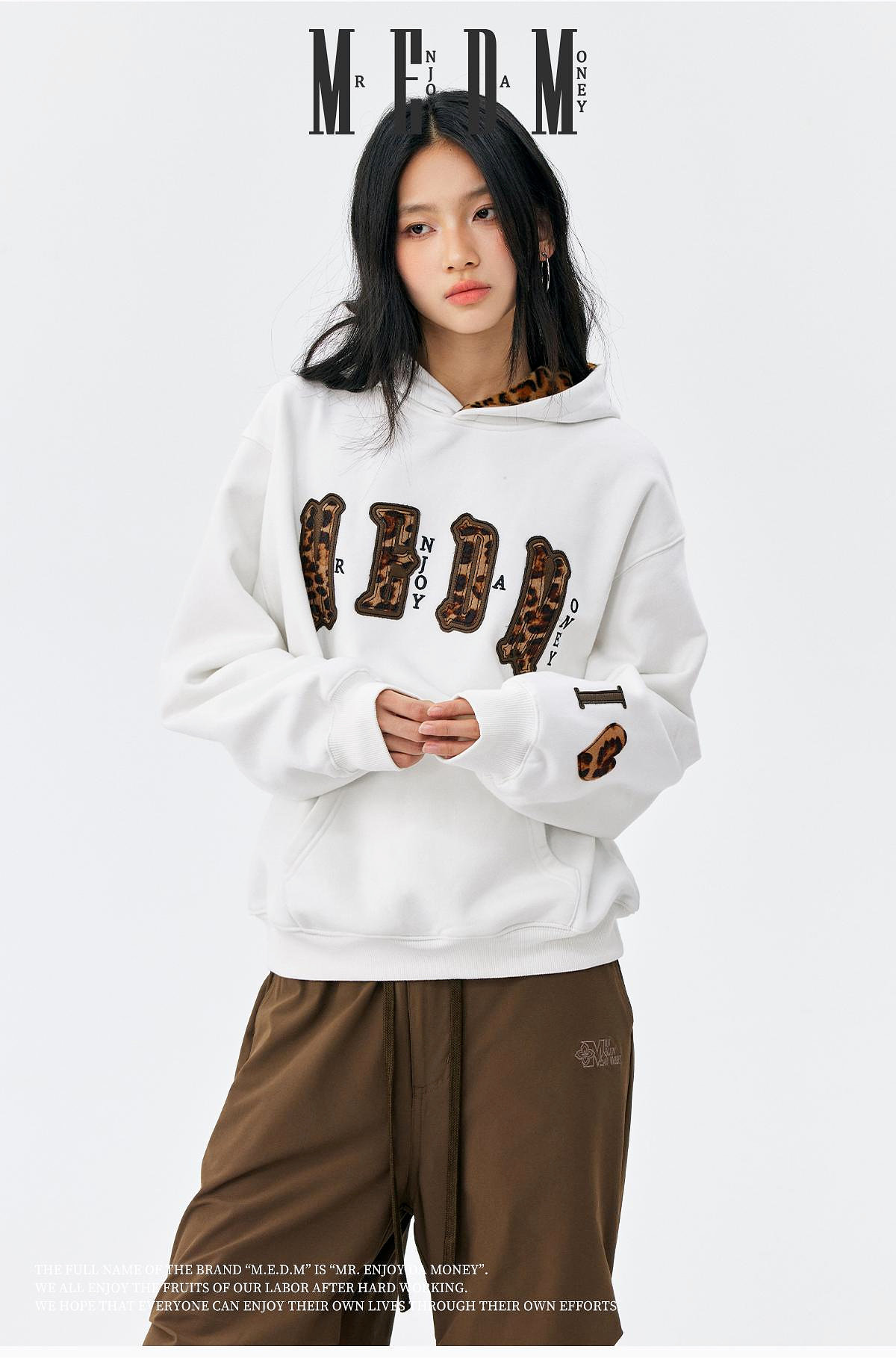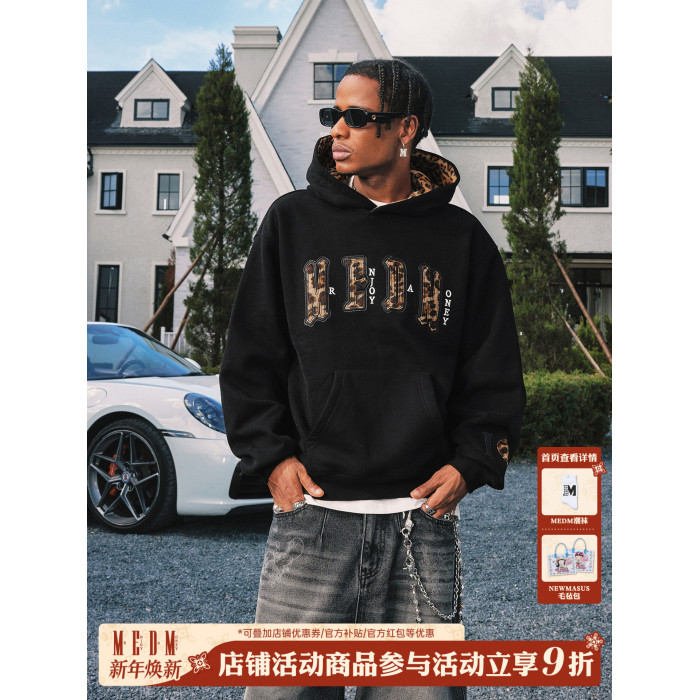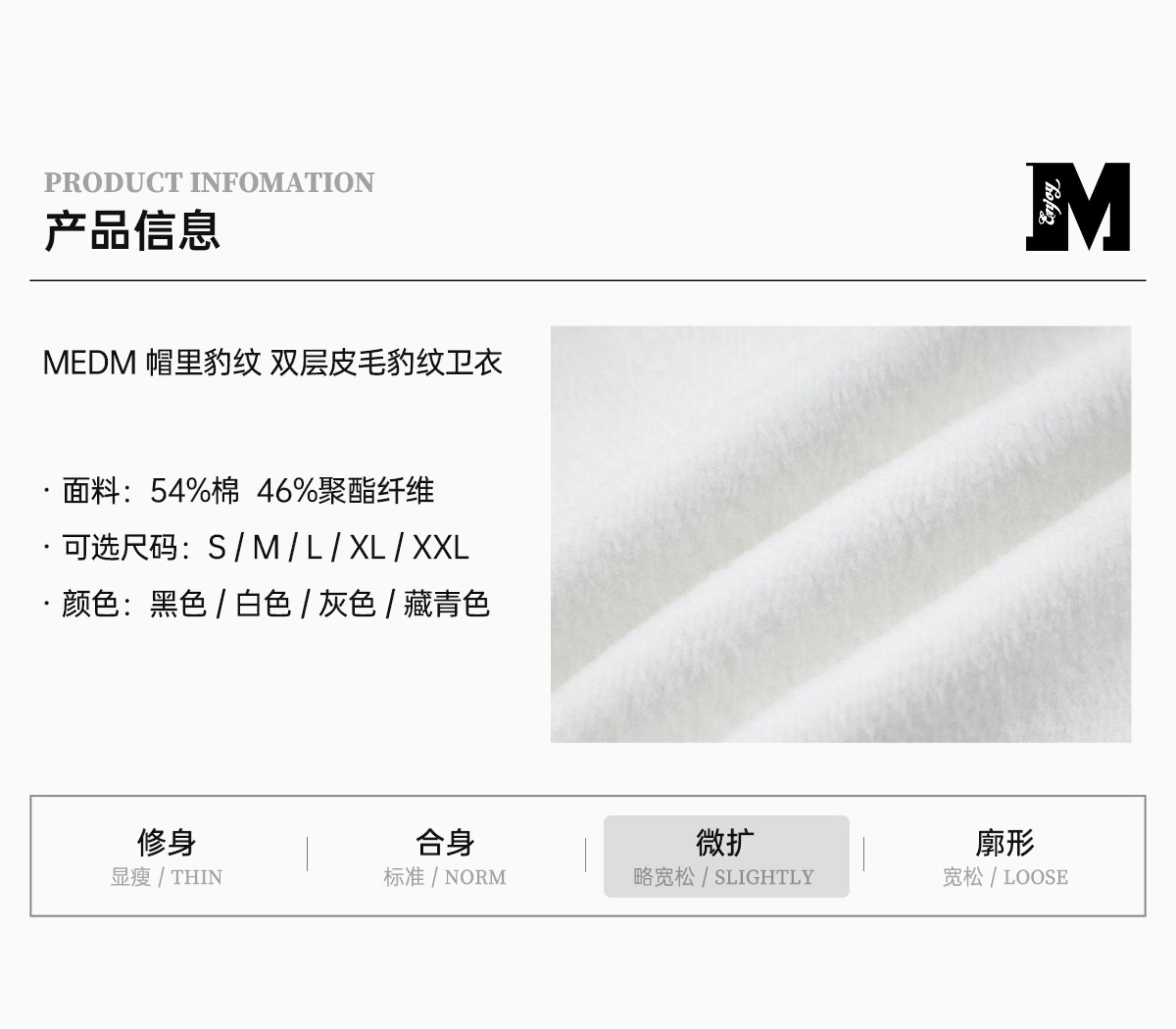 MEDM 帽裡豹紋 雙層皮毛豹紋休閒連帽衛衣美式通勤套頭情侶外套男