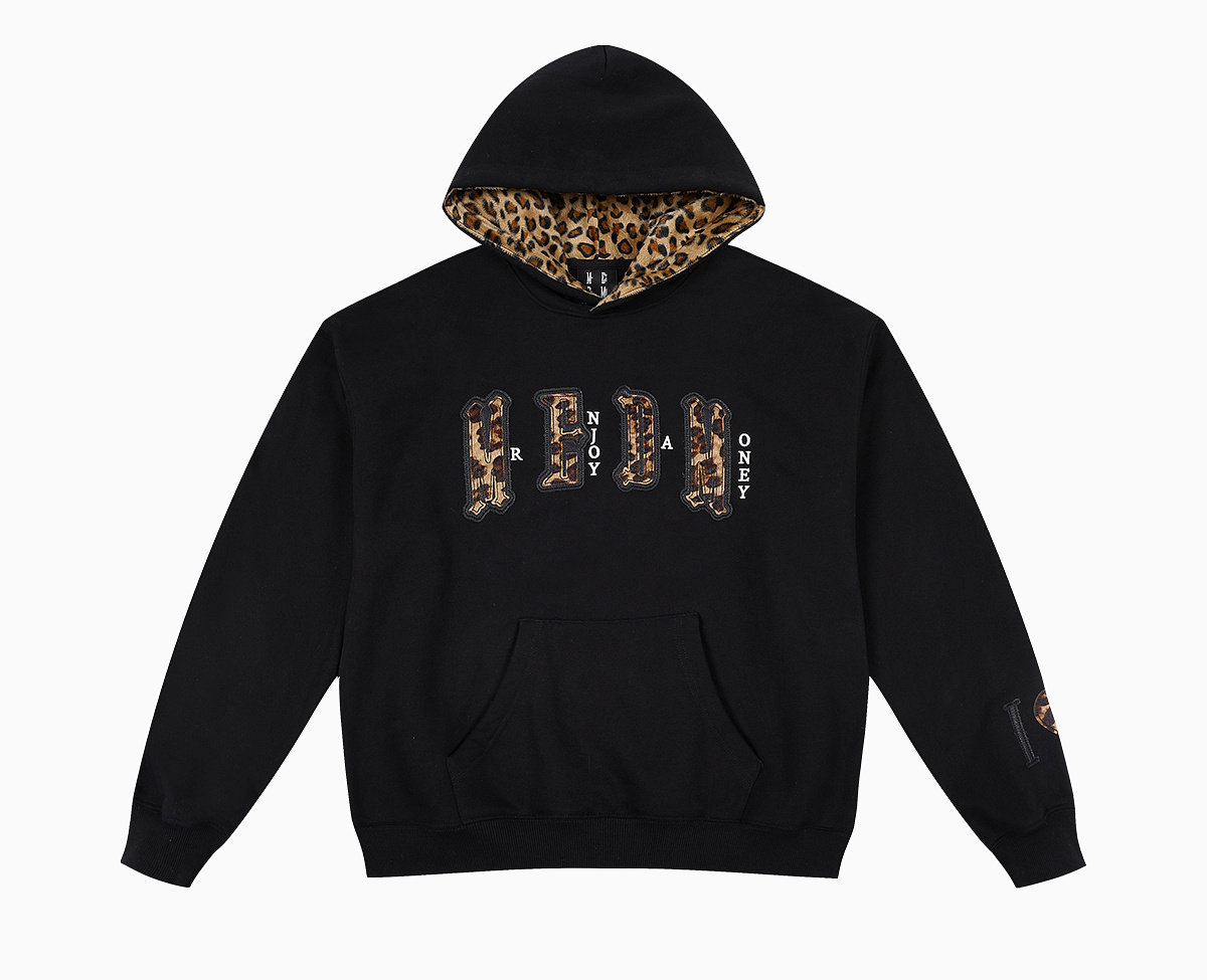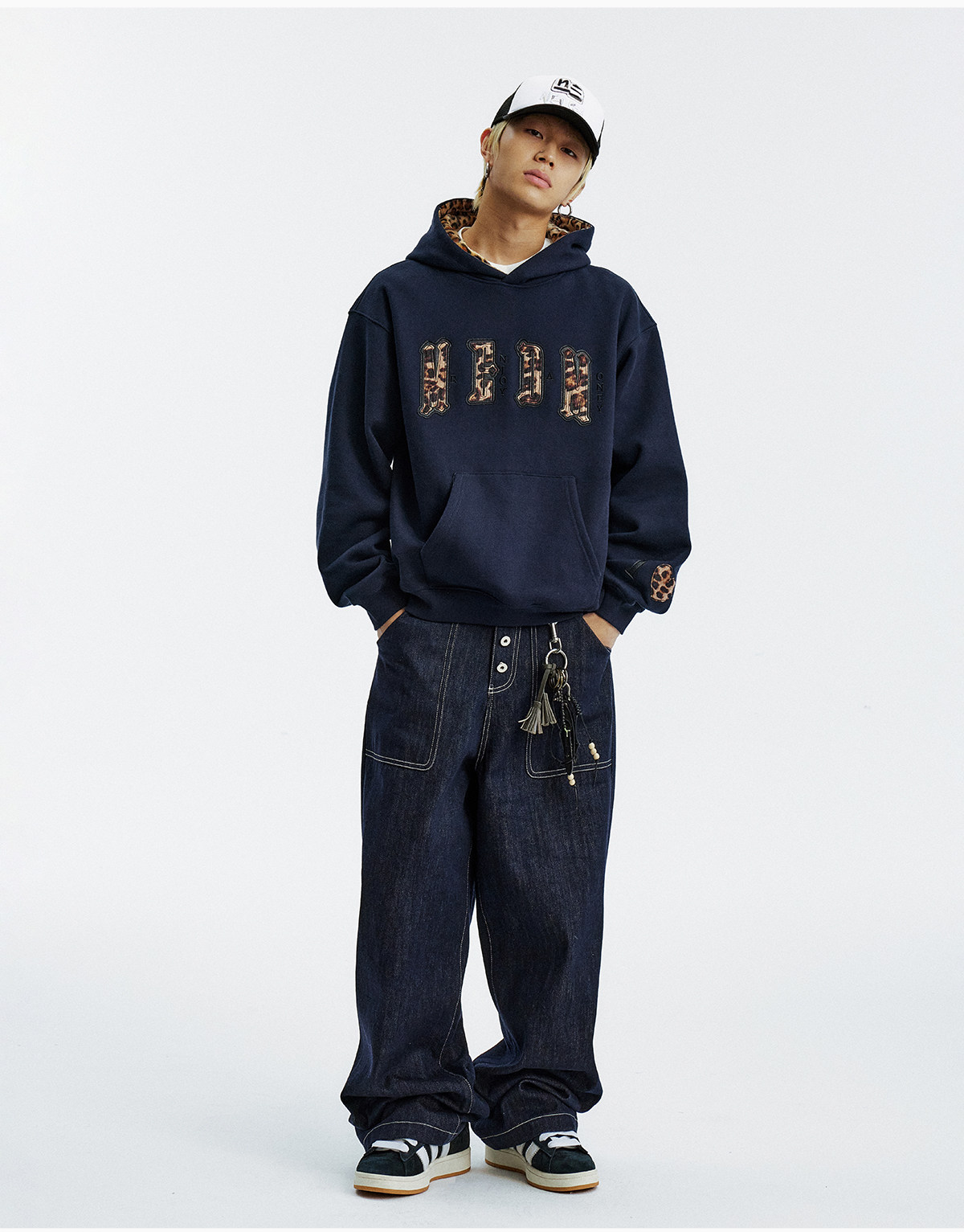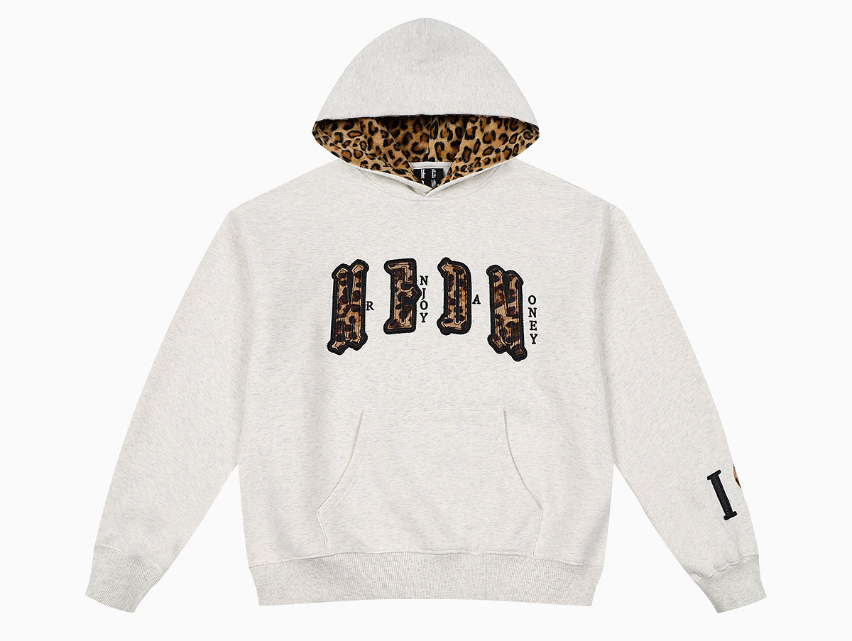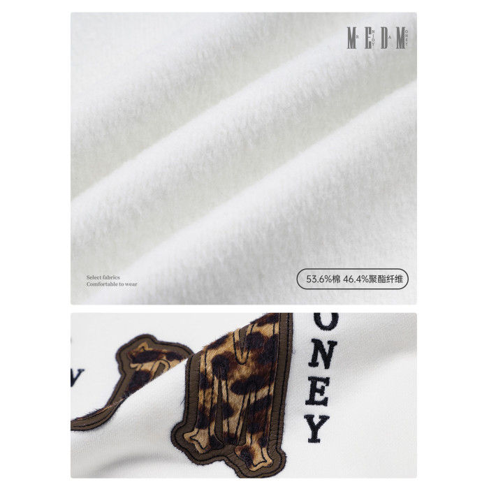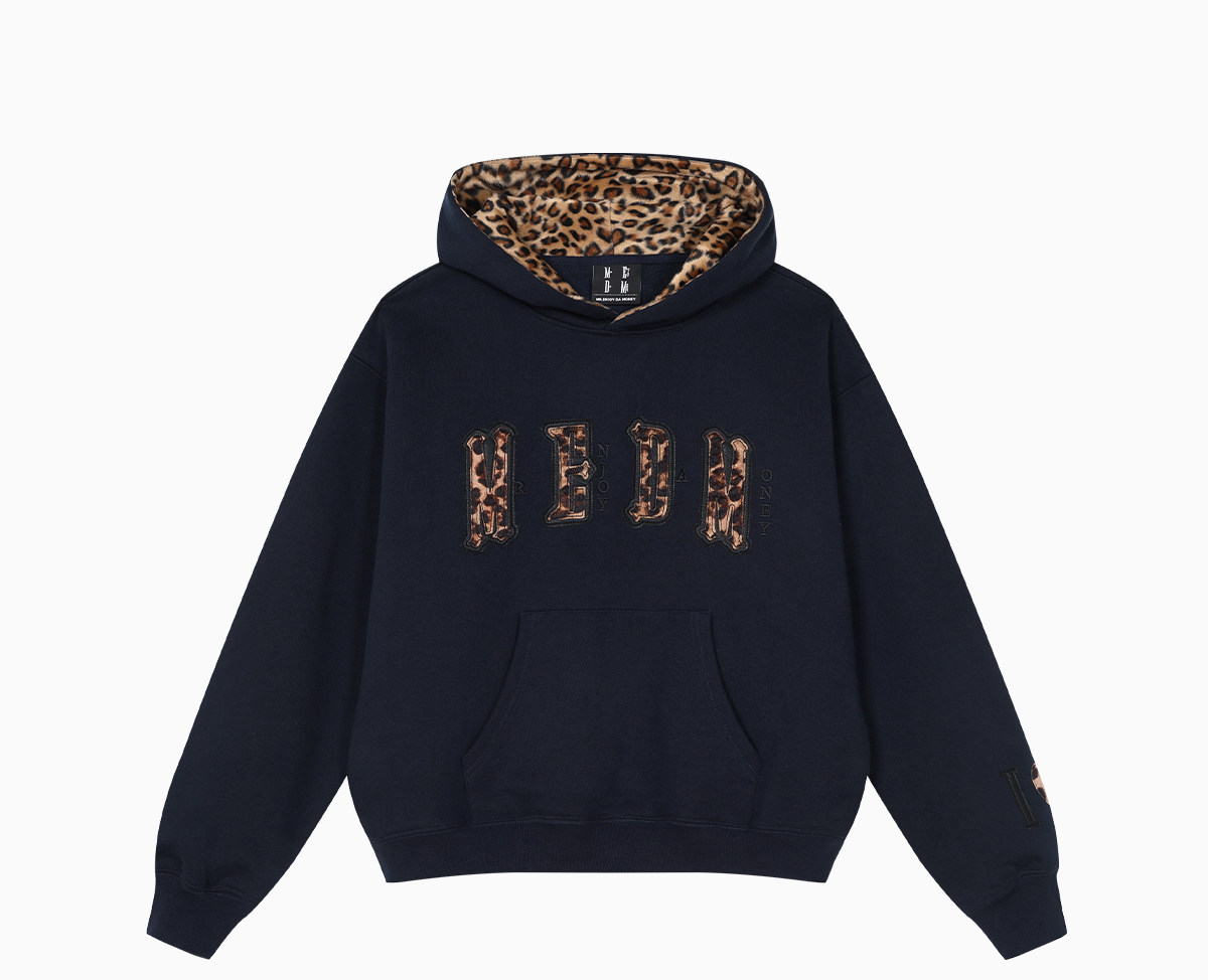 MEDM 帽裡豹紋 雙層皮毛豹紋休閒連帽衛衣美式通勤套頭情侶外套男