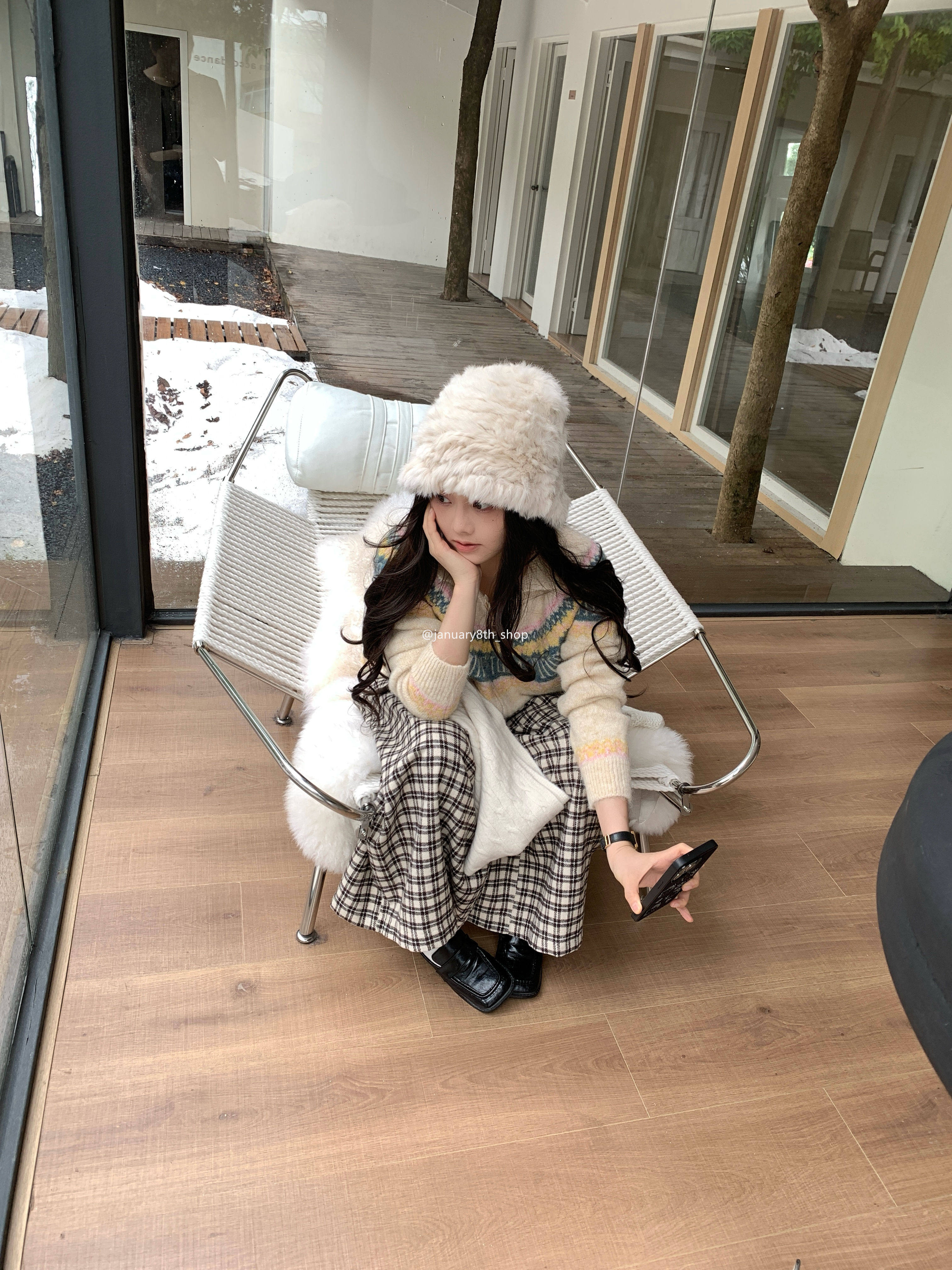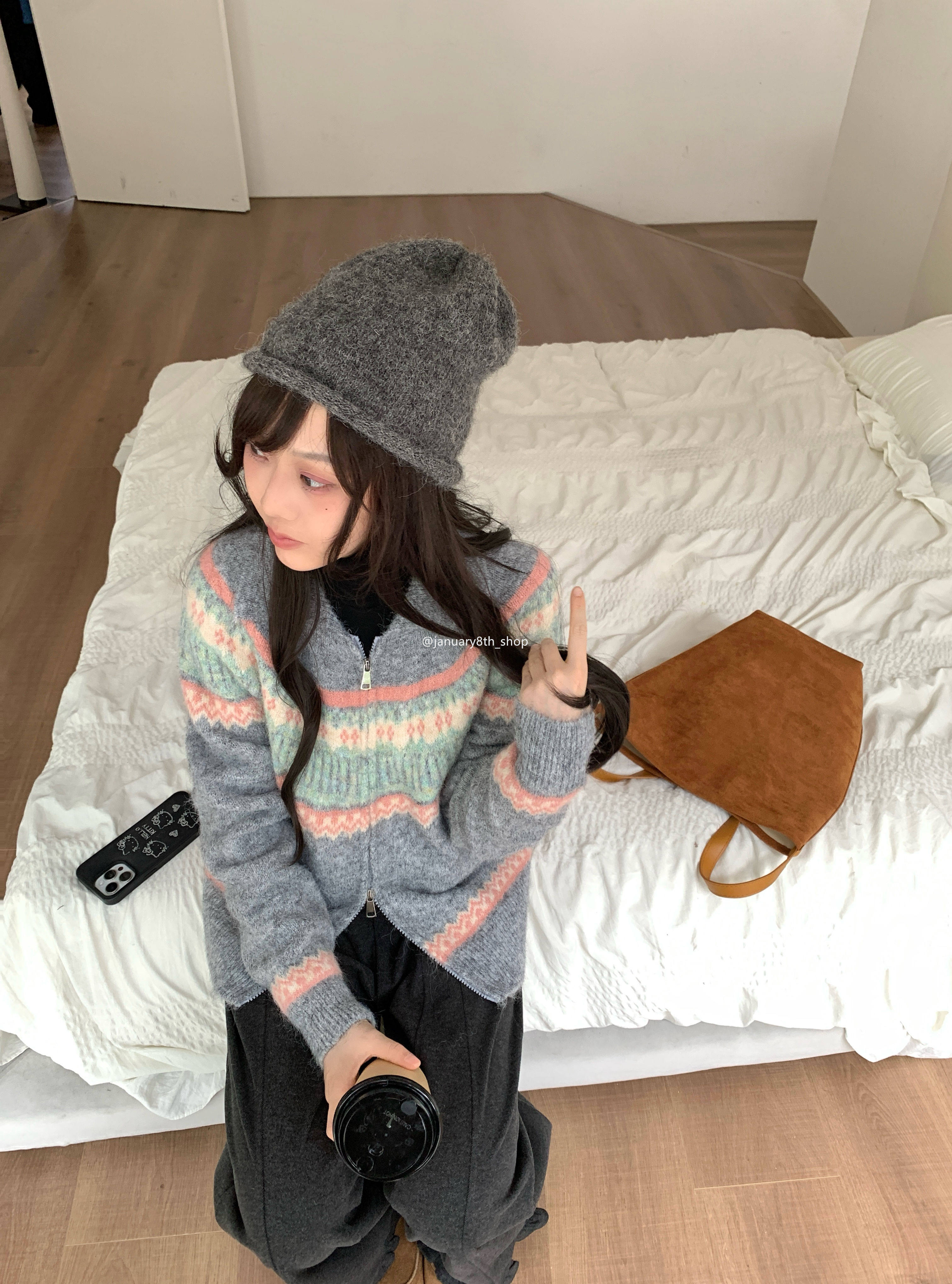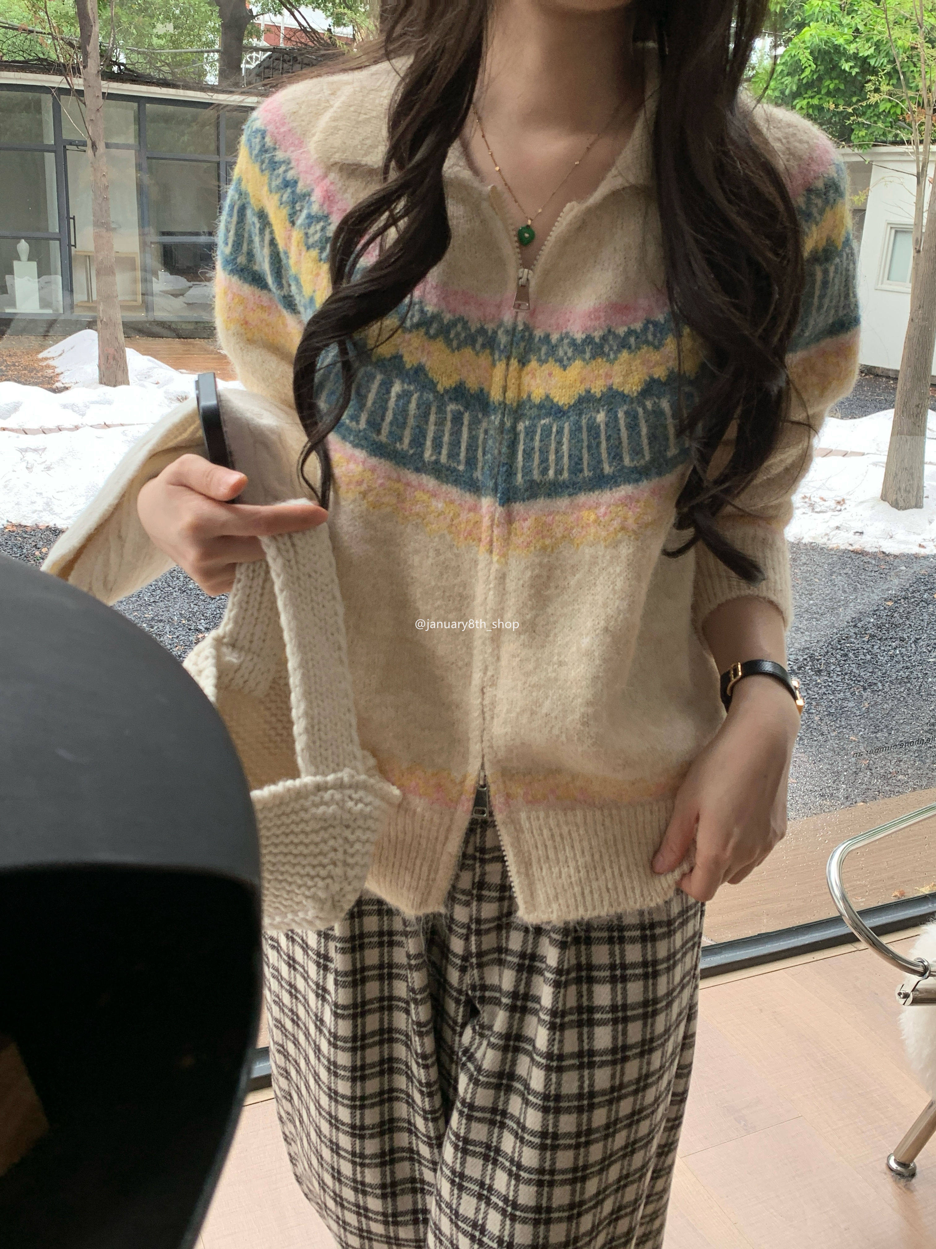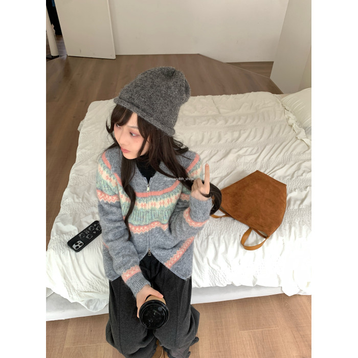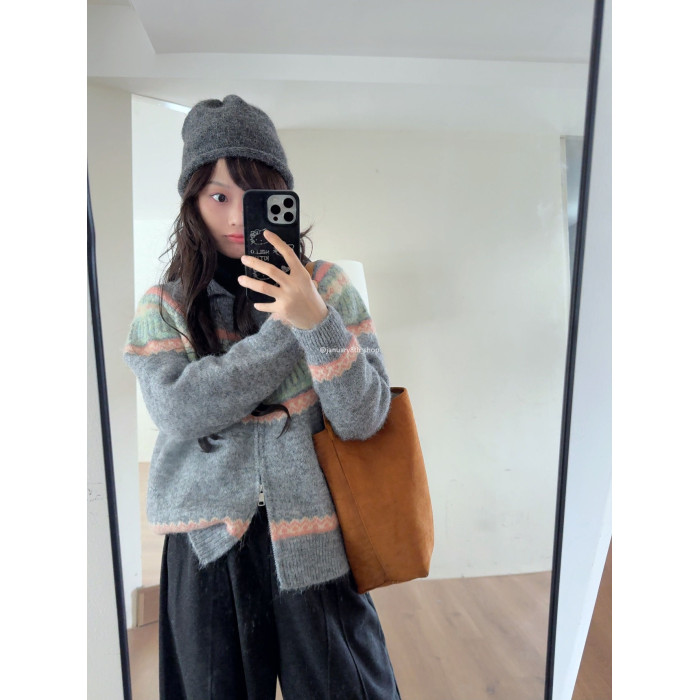 特不退 羊絨混紡 費爾島提花針織衫毛衣0.55KG