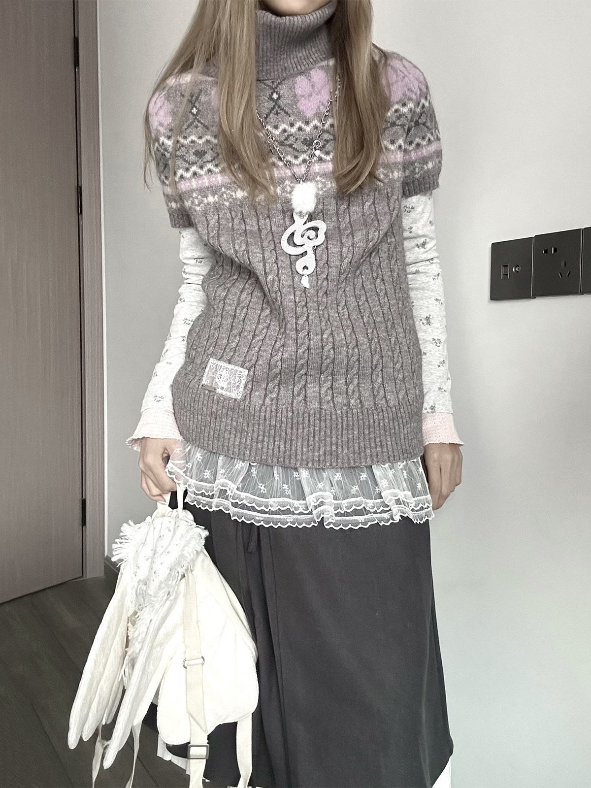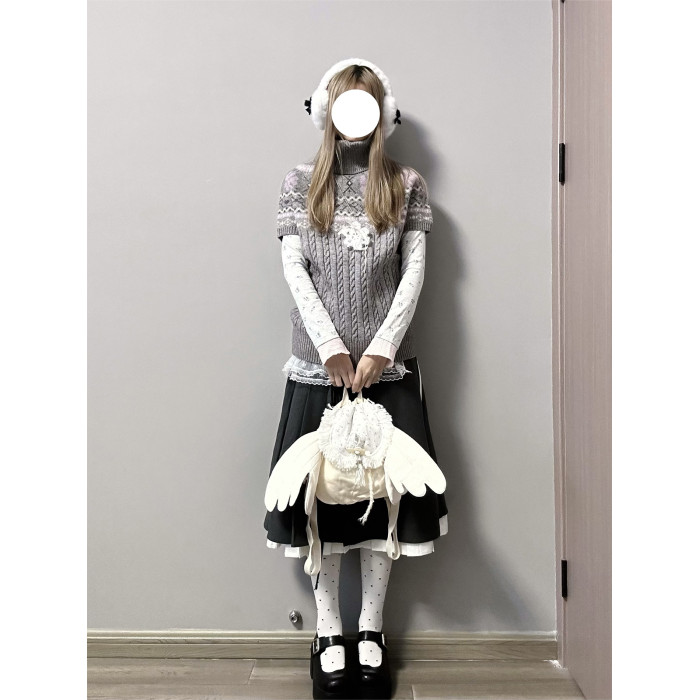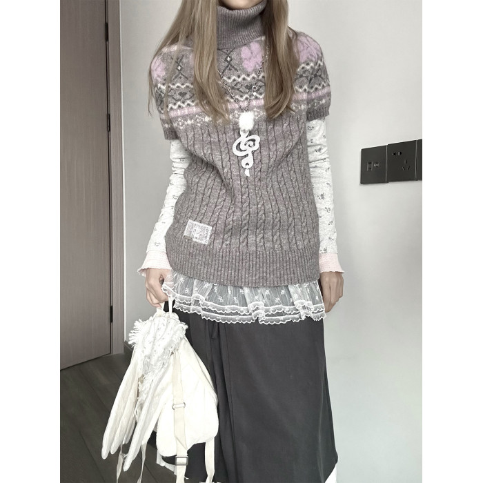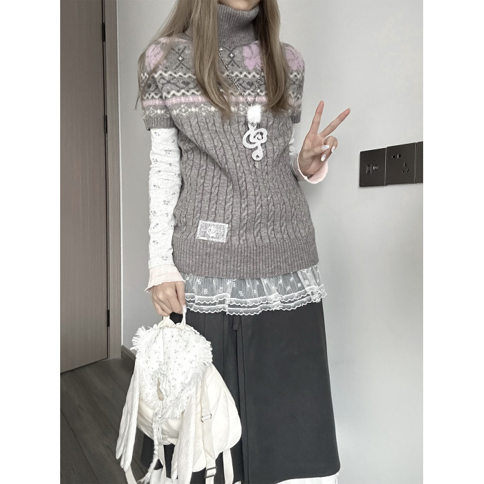 YUNNNIE 半高領費爾島短袖收腰修身女秋冬百搭學院風kyouko針織衫