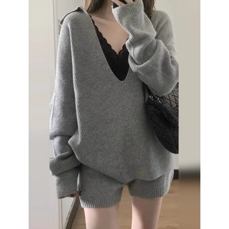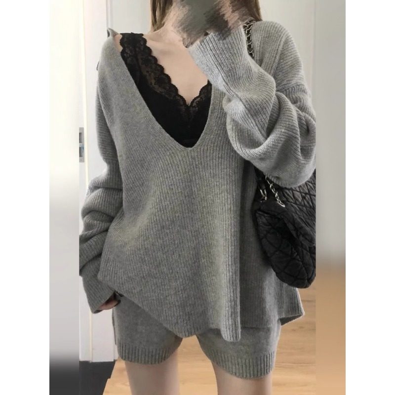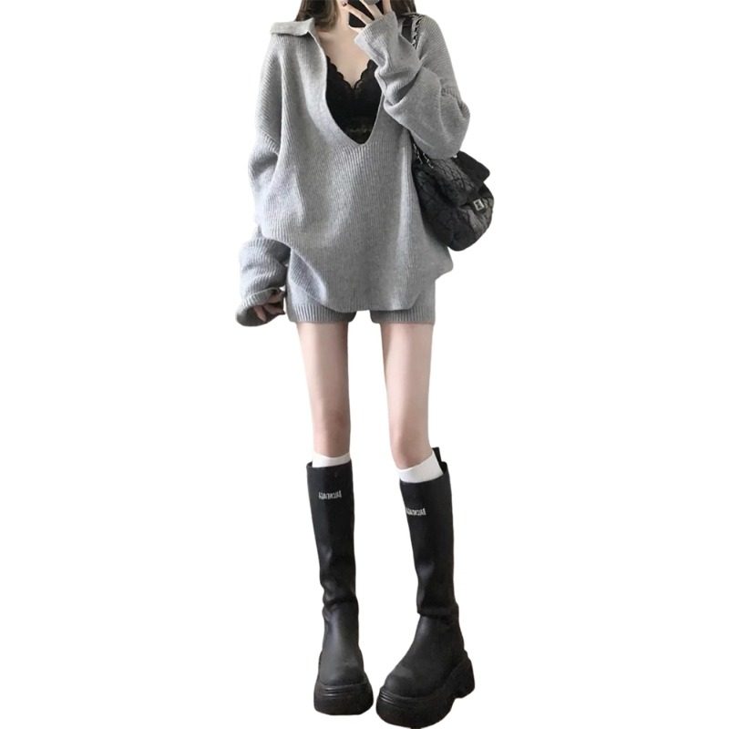 早秋季灰色針織毛衣套裝連衣裙子女2025年新款氣質一整套ootd穿搭