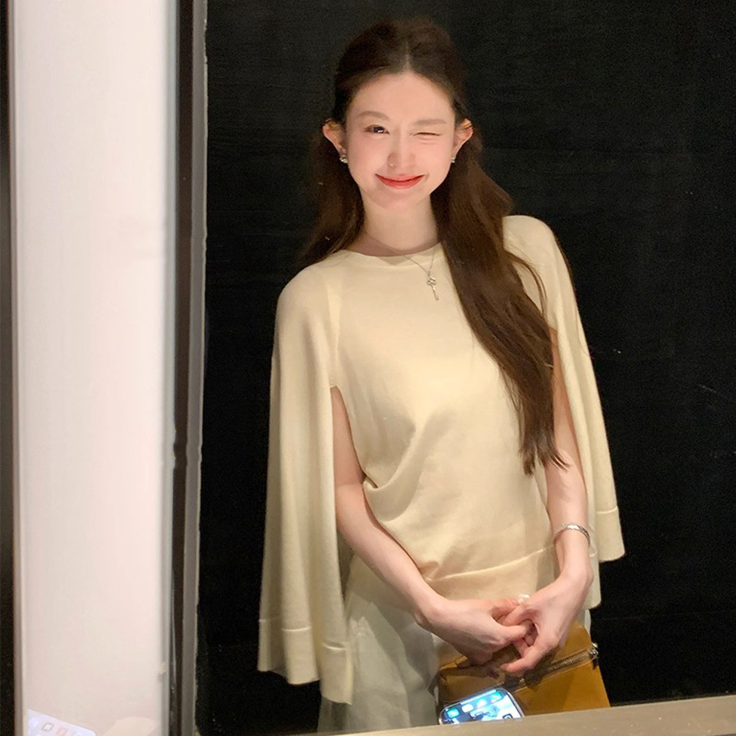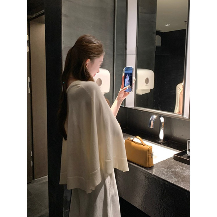 小香風鬭篷式針織衫女春秋2025新款巨好看寬松顯瘦百搭披肩上衣潮