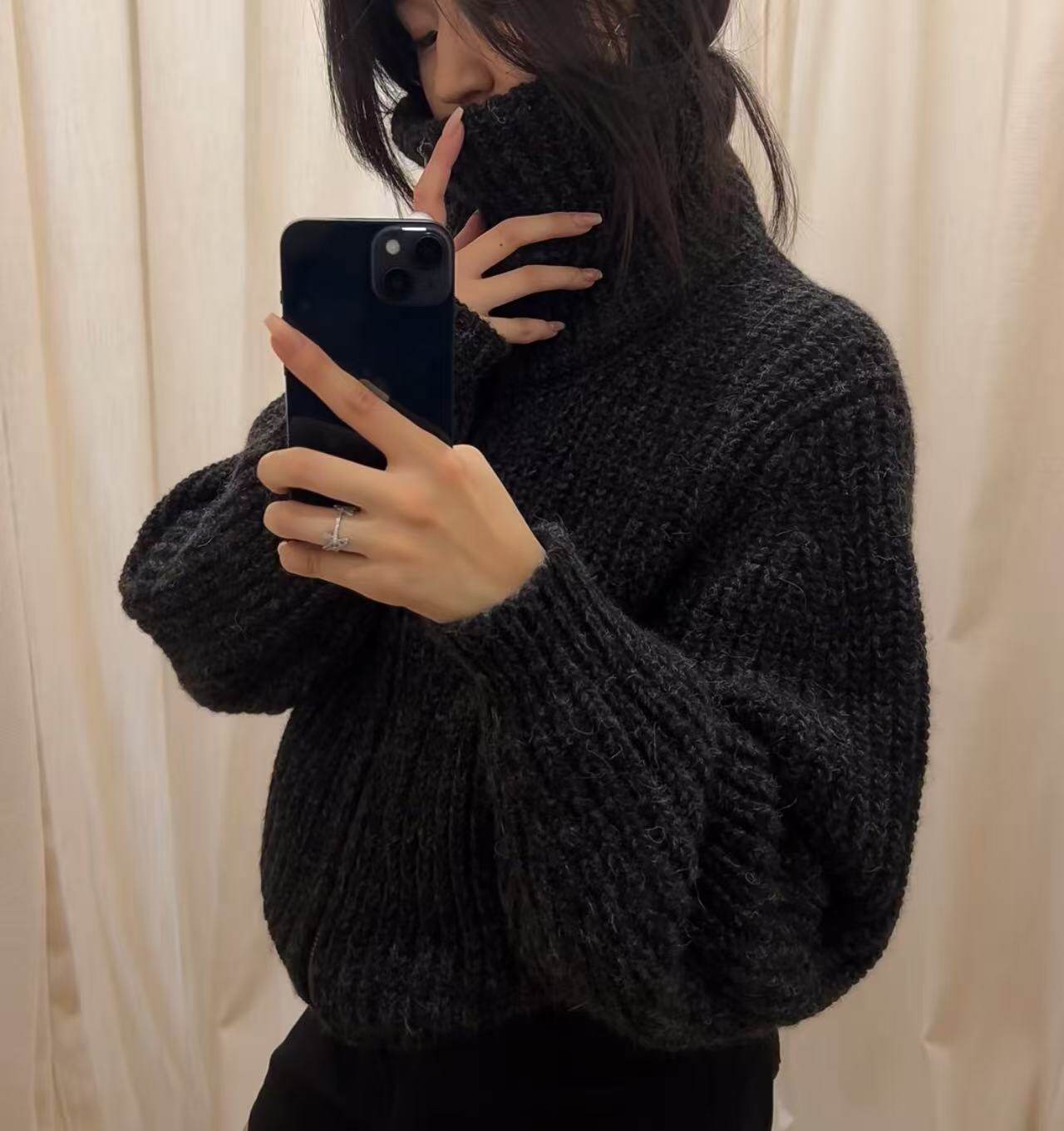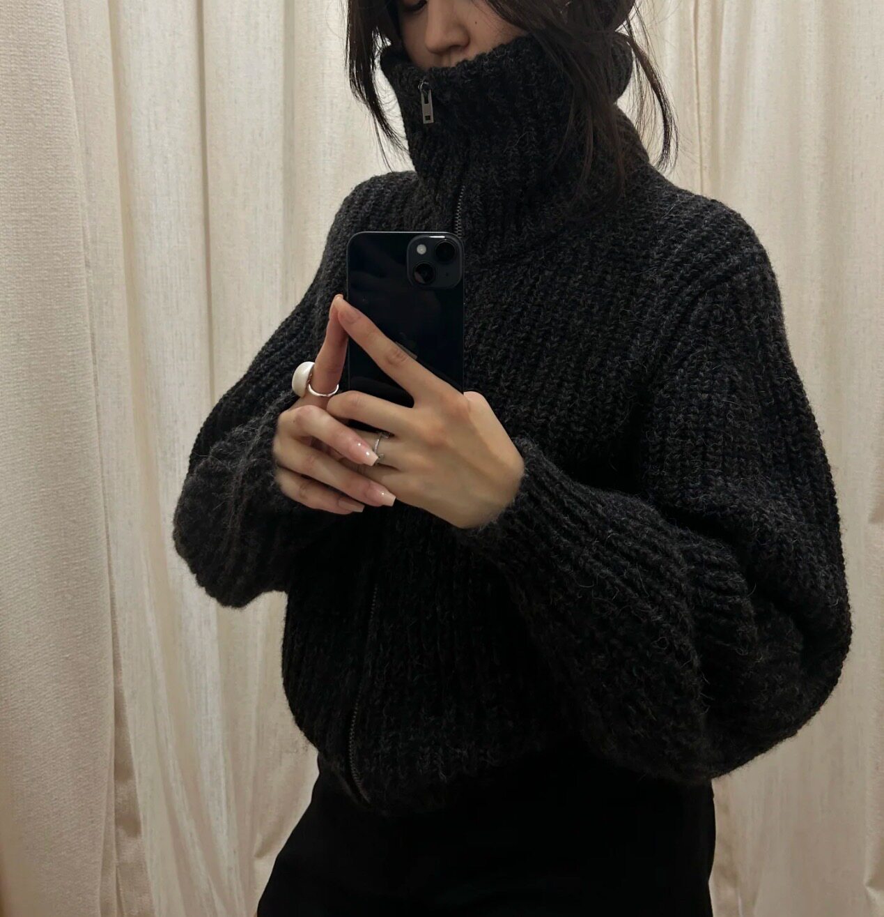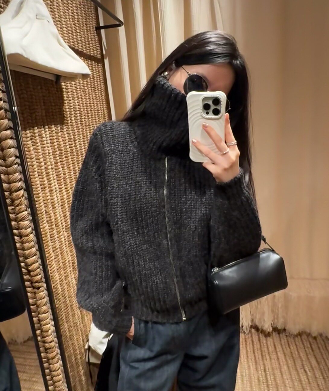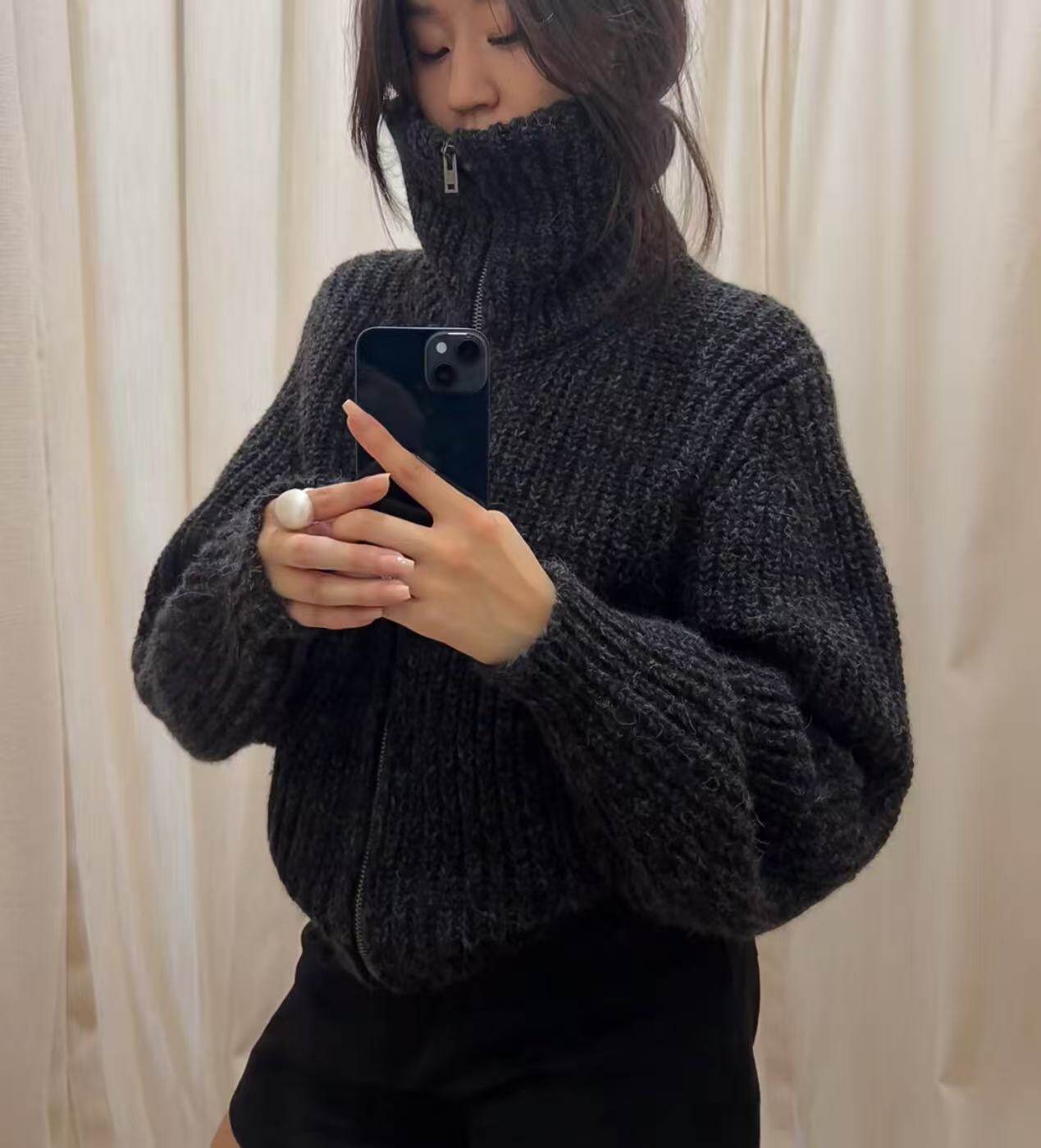 oversize!美式復古拉鍊高領毛衣開衫女秋冬新款寬松加厚針織外套