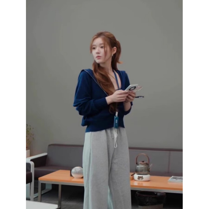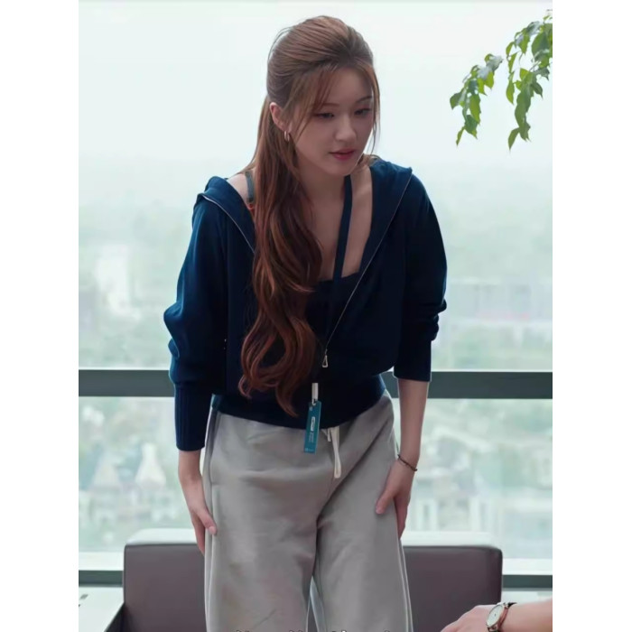 許我耀眼趙露思許妍同款拉鍊連帽毛衣外套女秋冬季設計感短款上衣