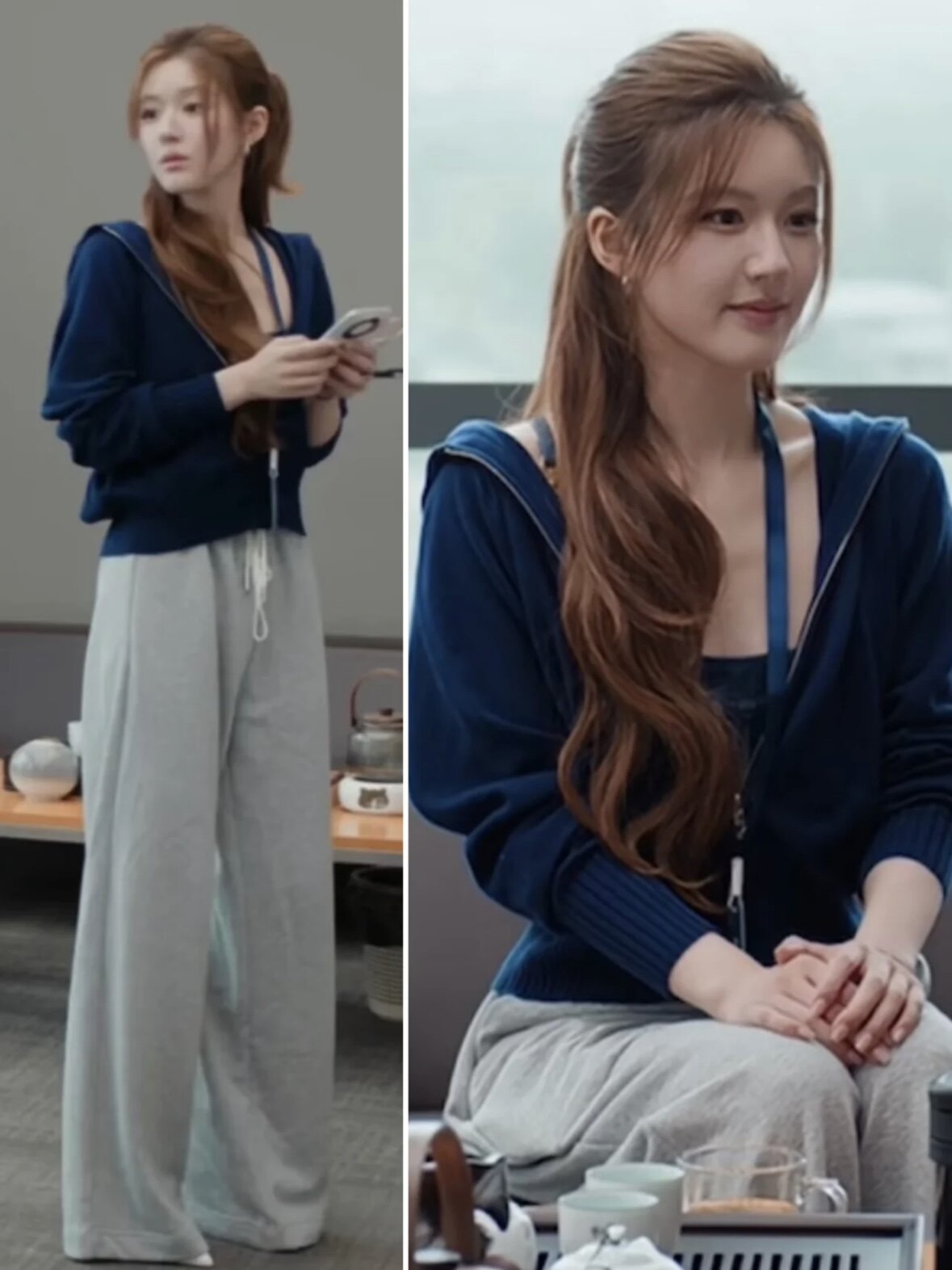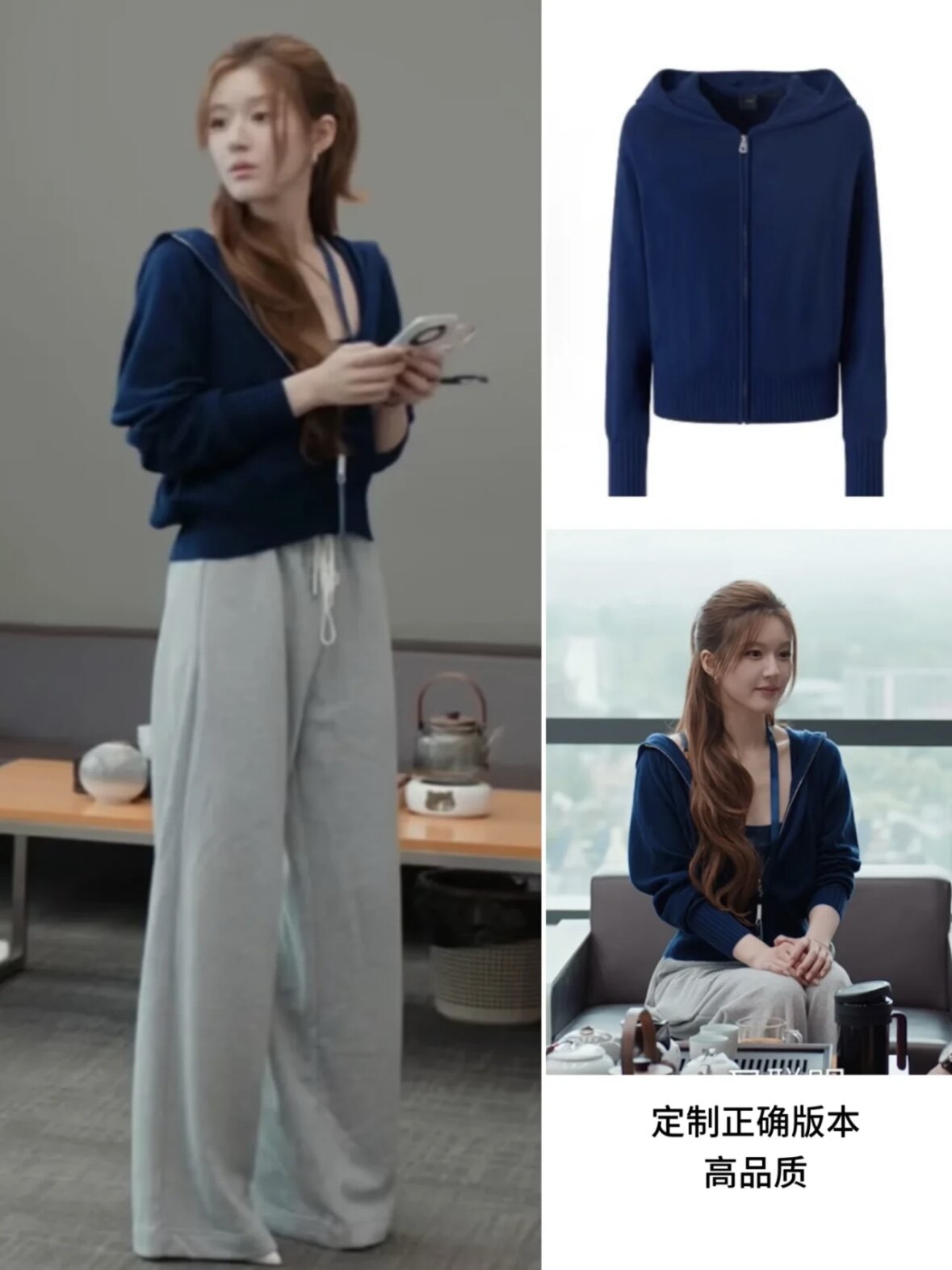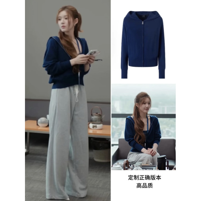 許我耀眼趙露思許妍同款拉鍊連帽毛衣外套女秋冬季設計感短款上衣