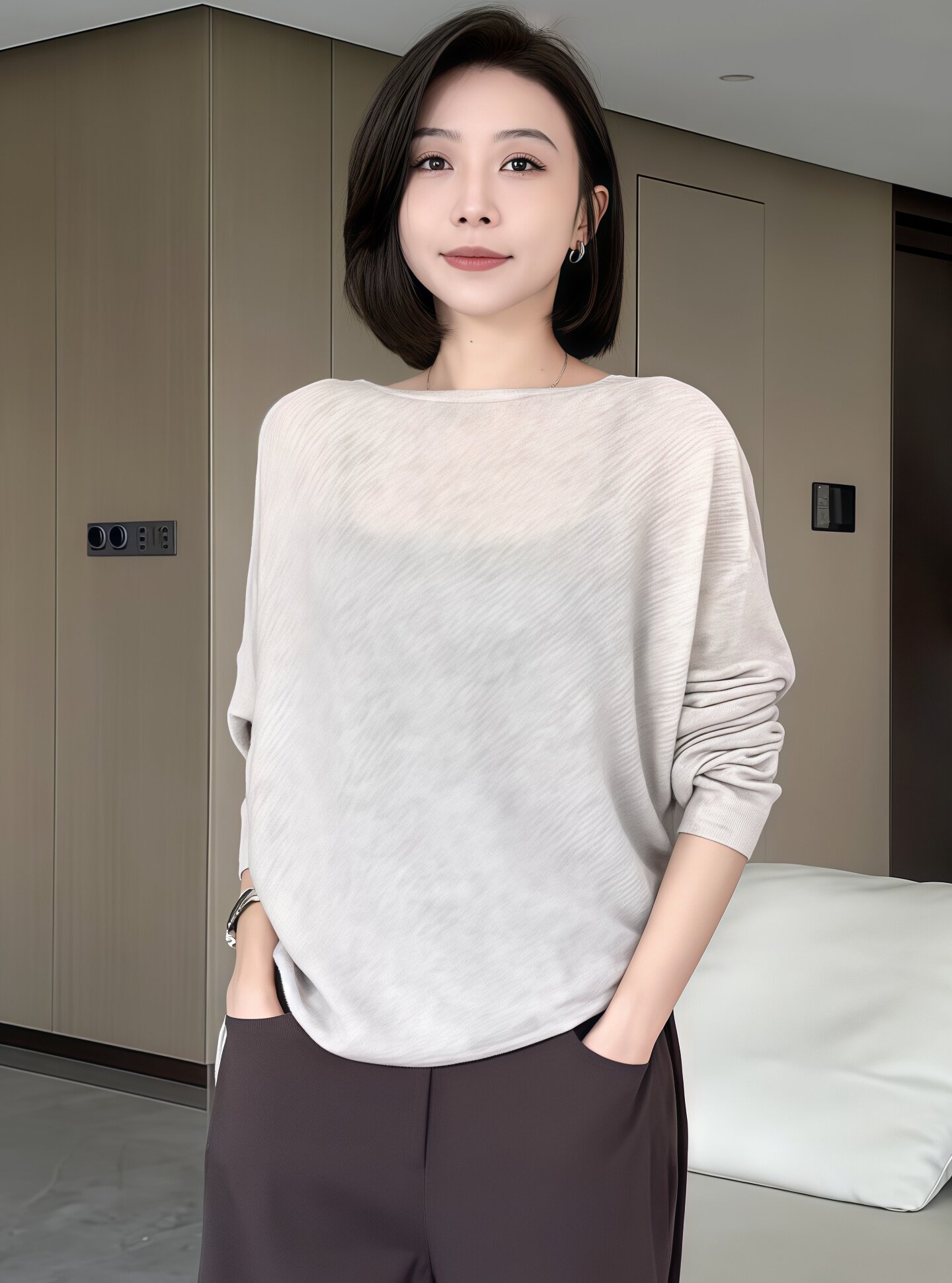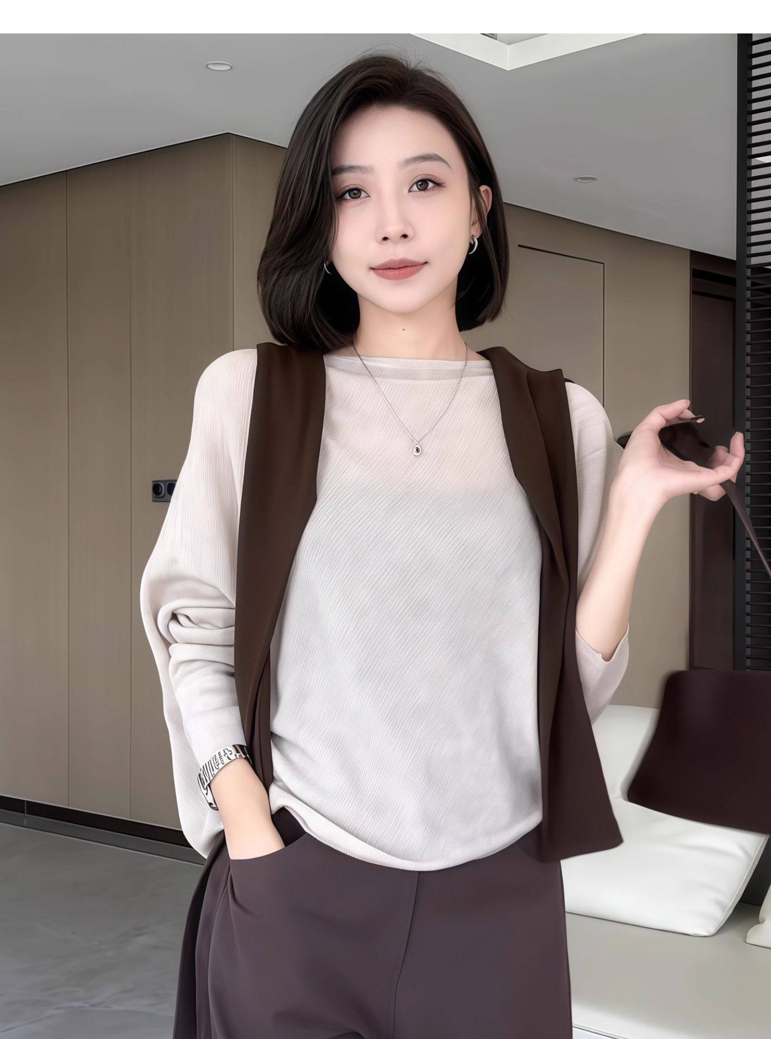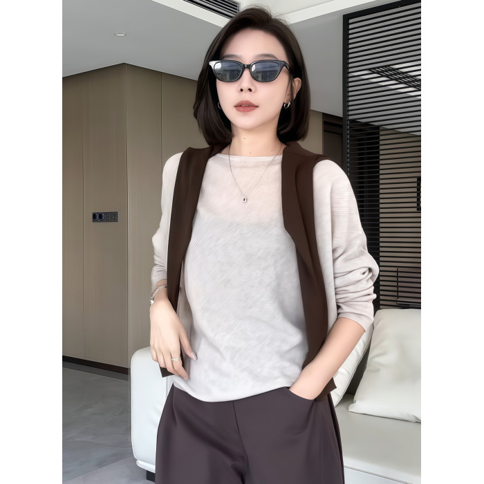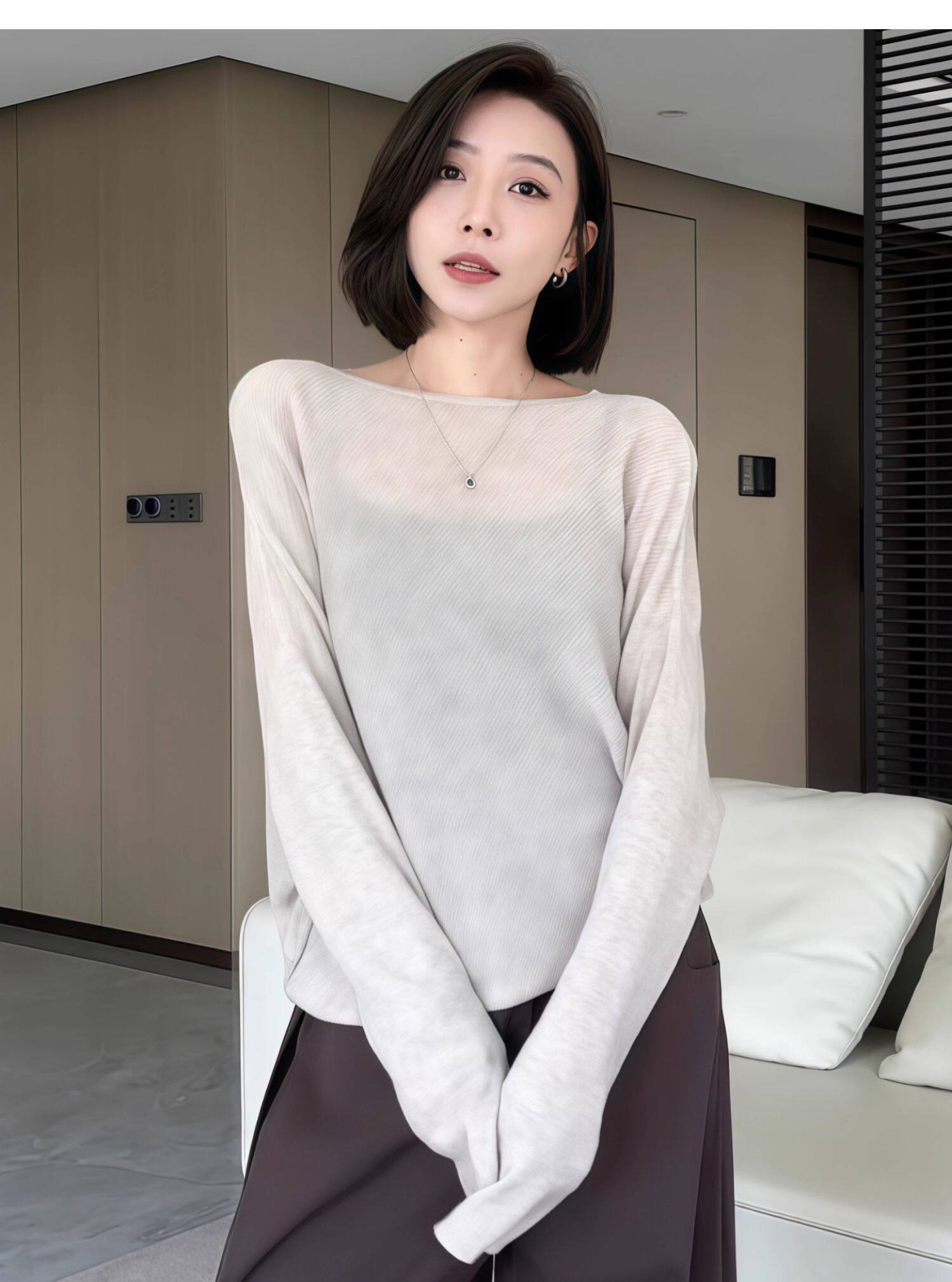 蝙蝠袖一字領針織衫女早秋薄款2025新款慵懶松弛感長袖微透感上衣