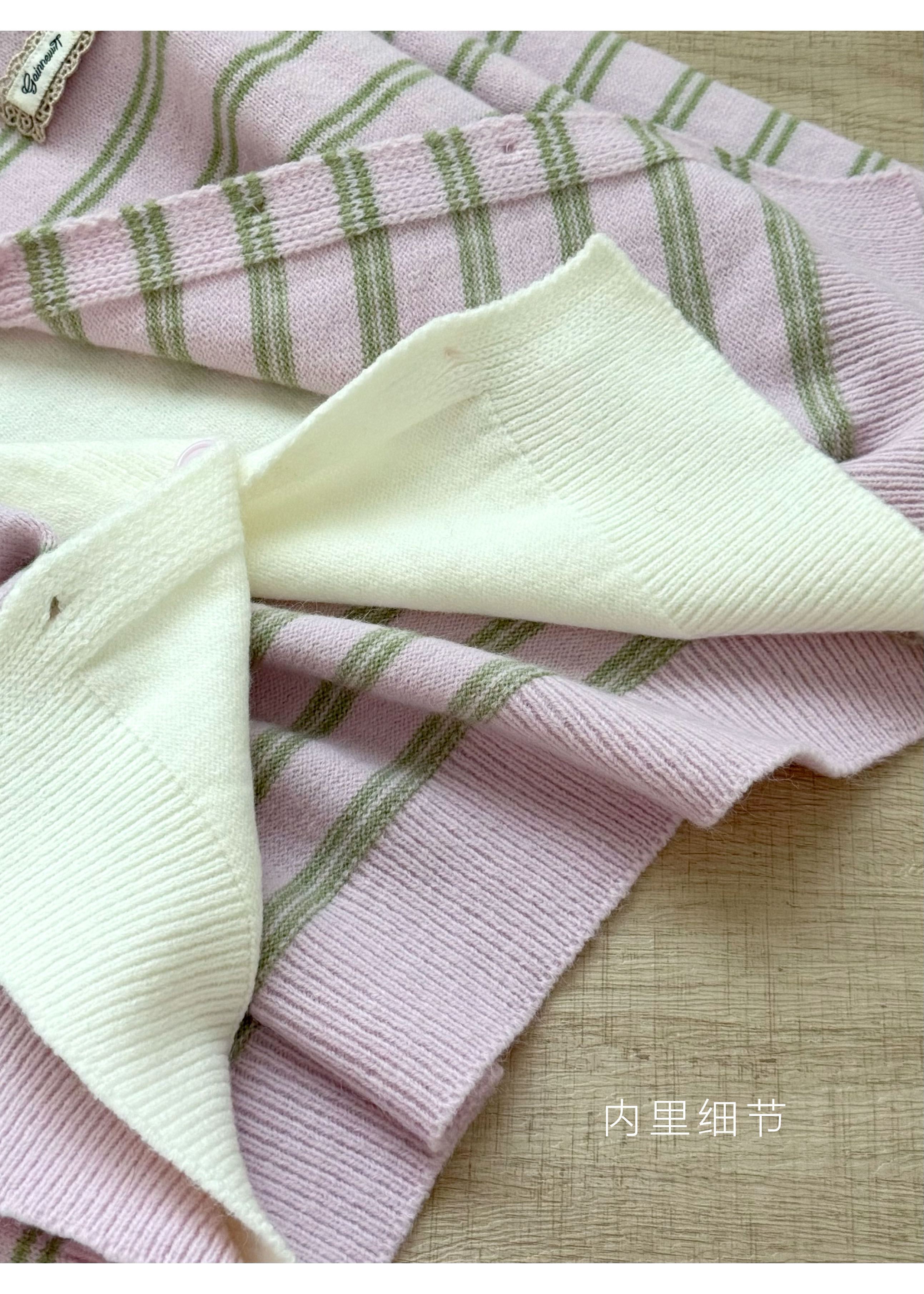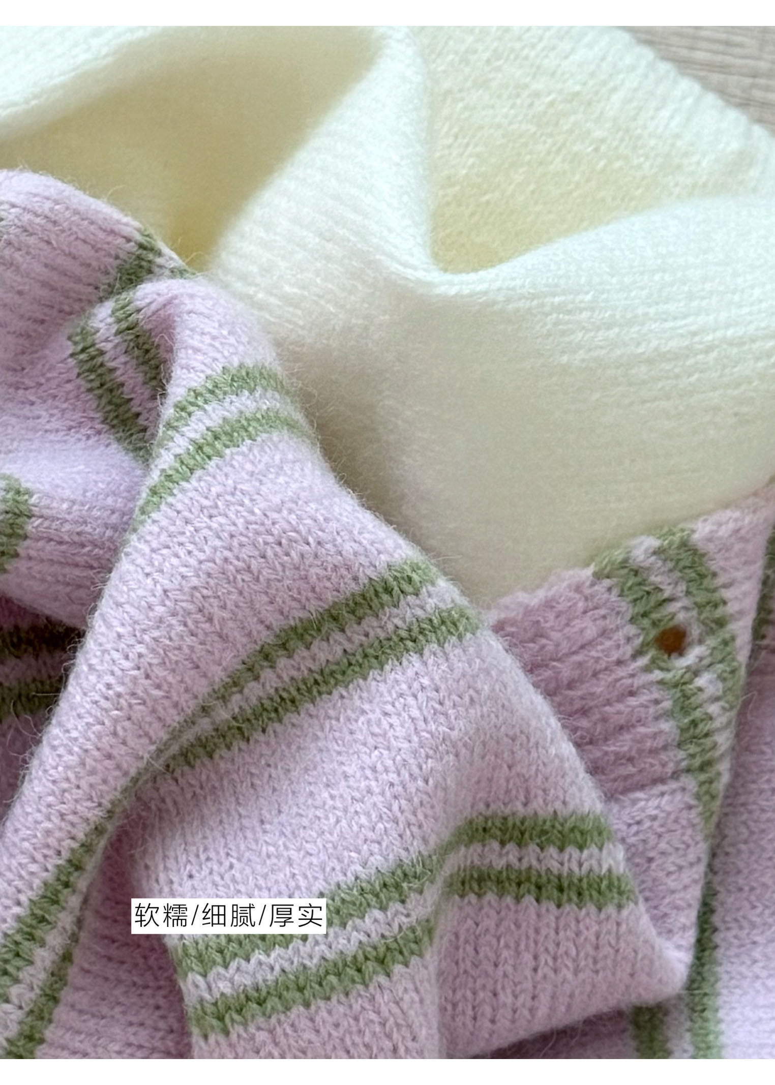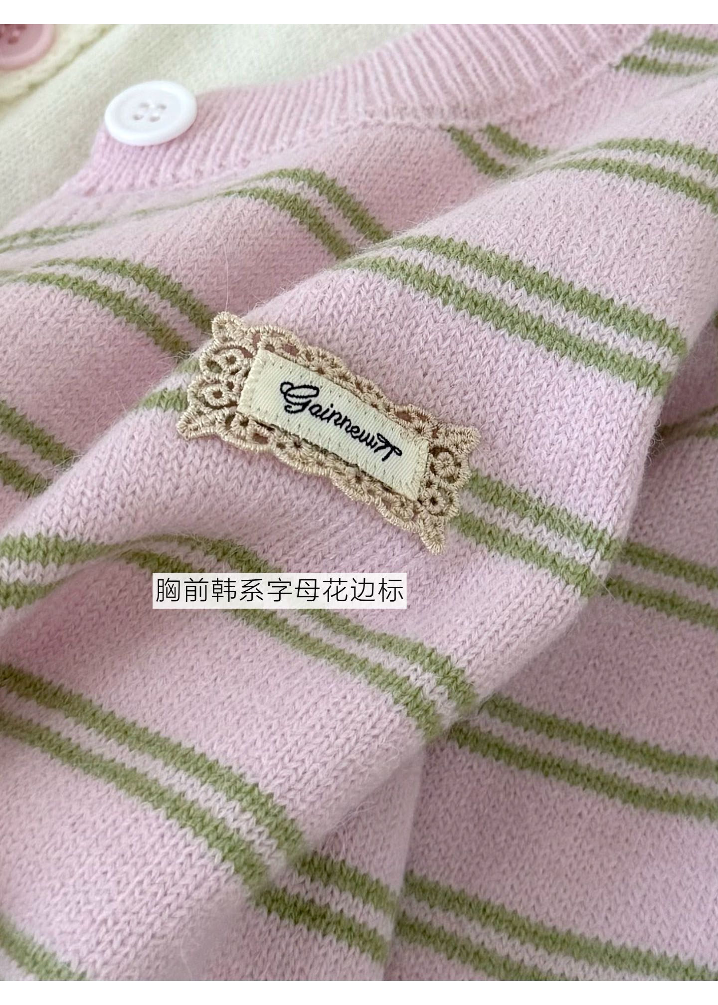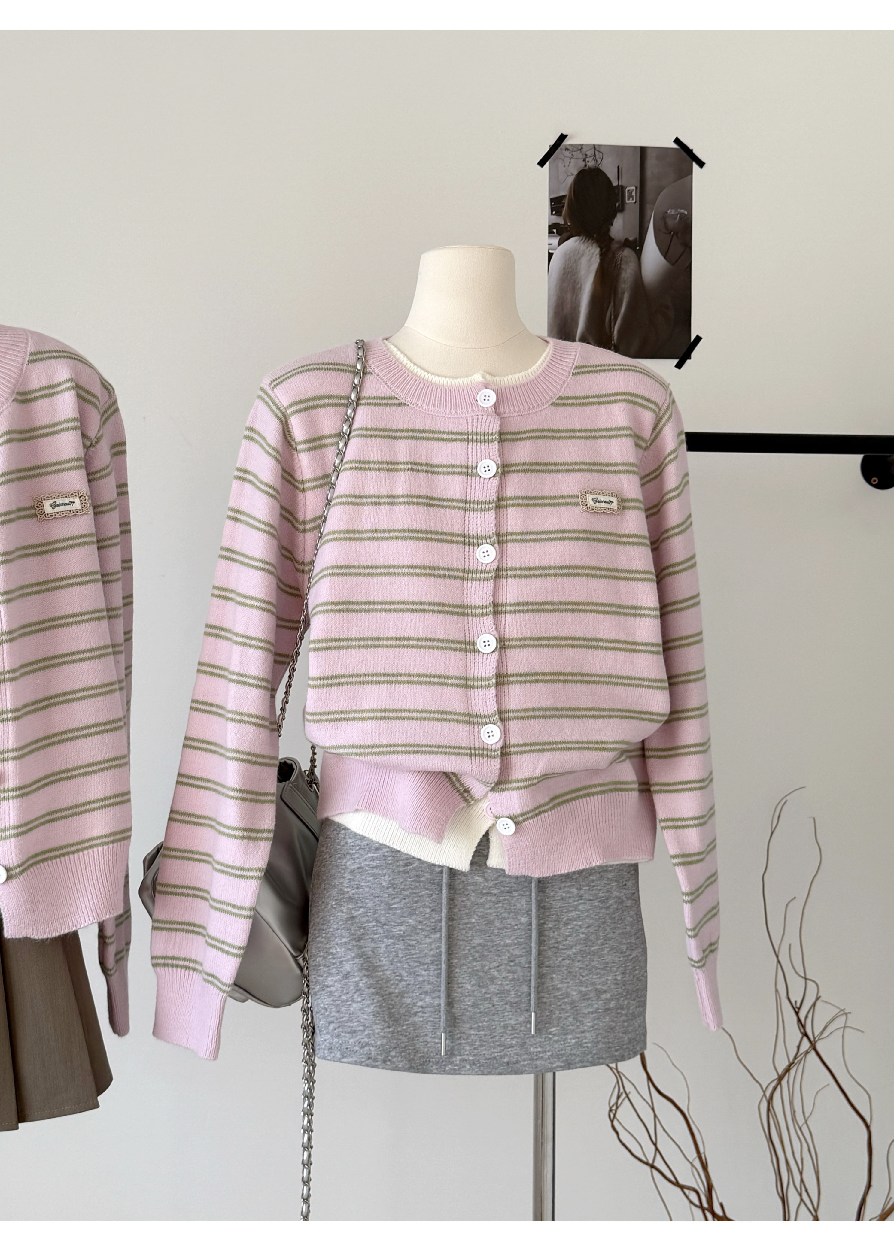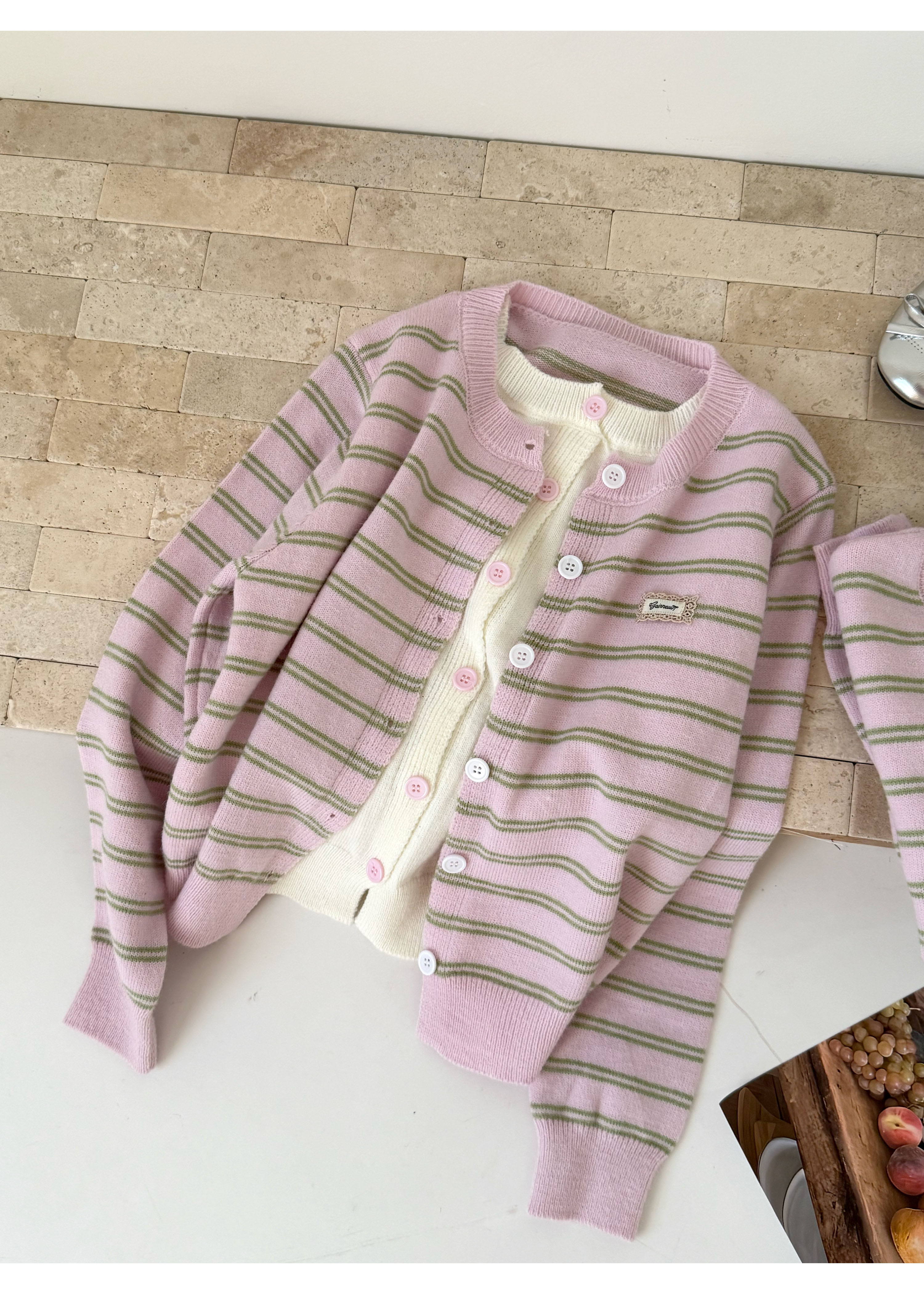 RENA韓系粉色條紋假兩件針織開衫女秋冬毛衣外套早秋穿搭上衣