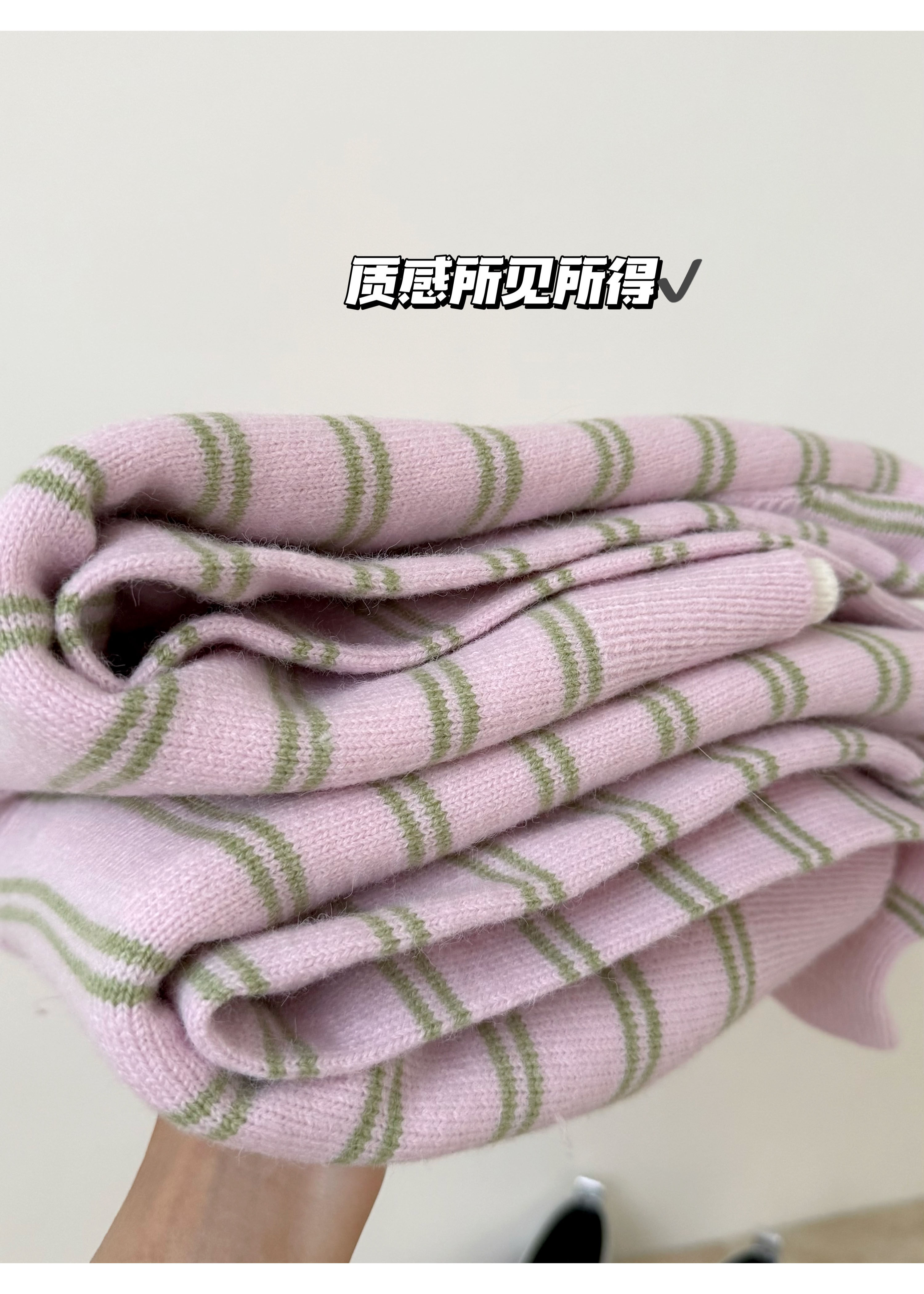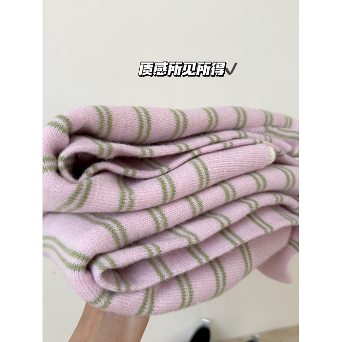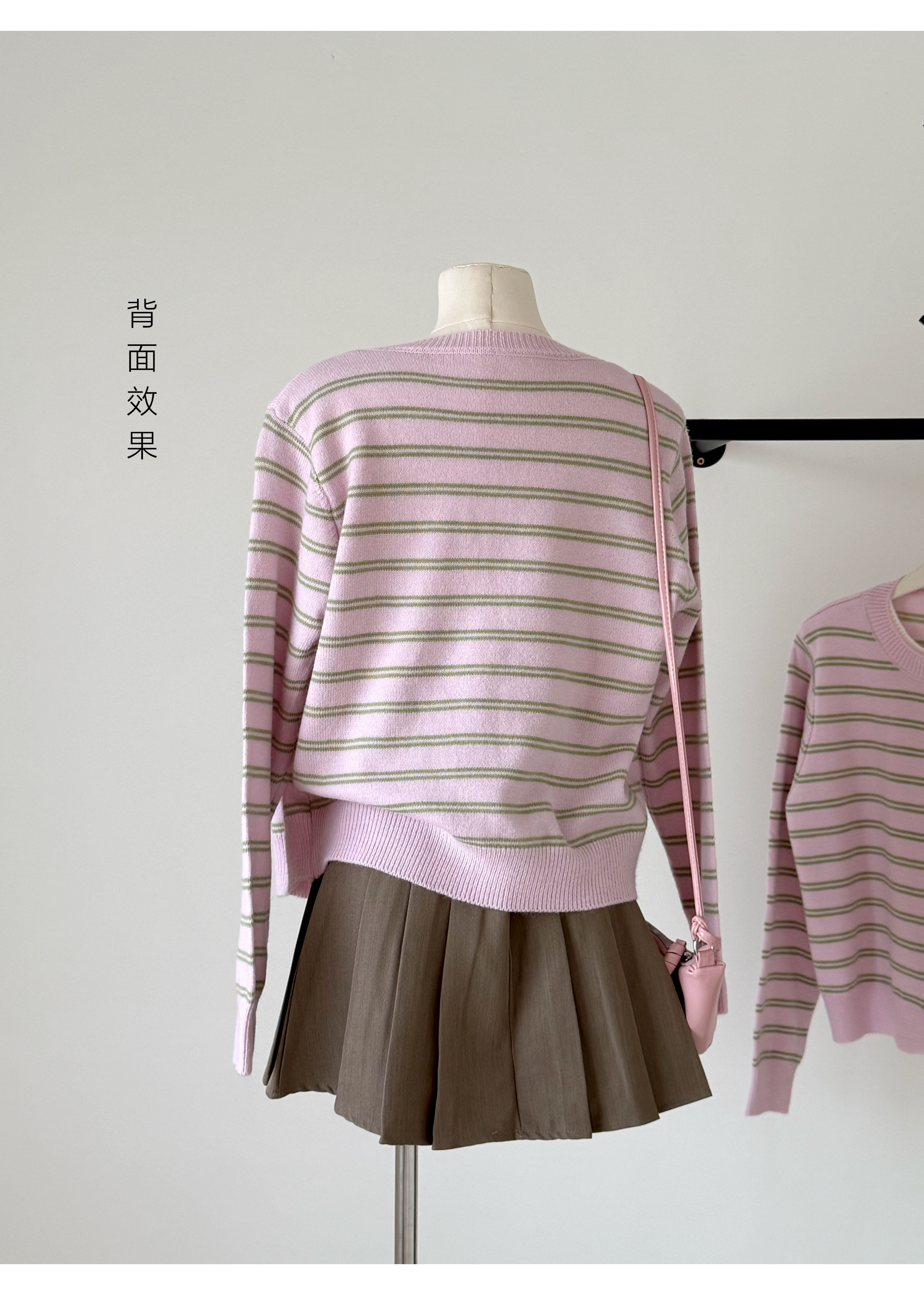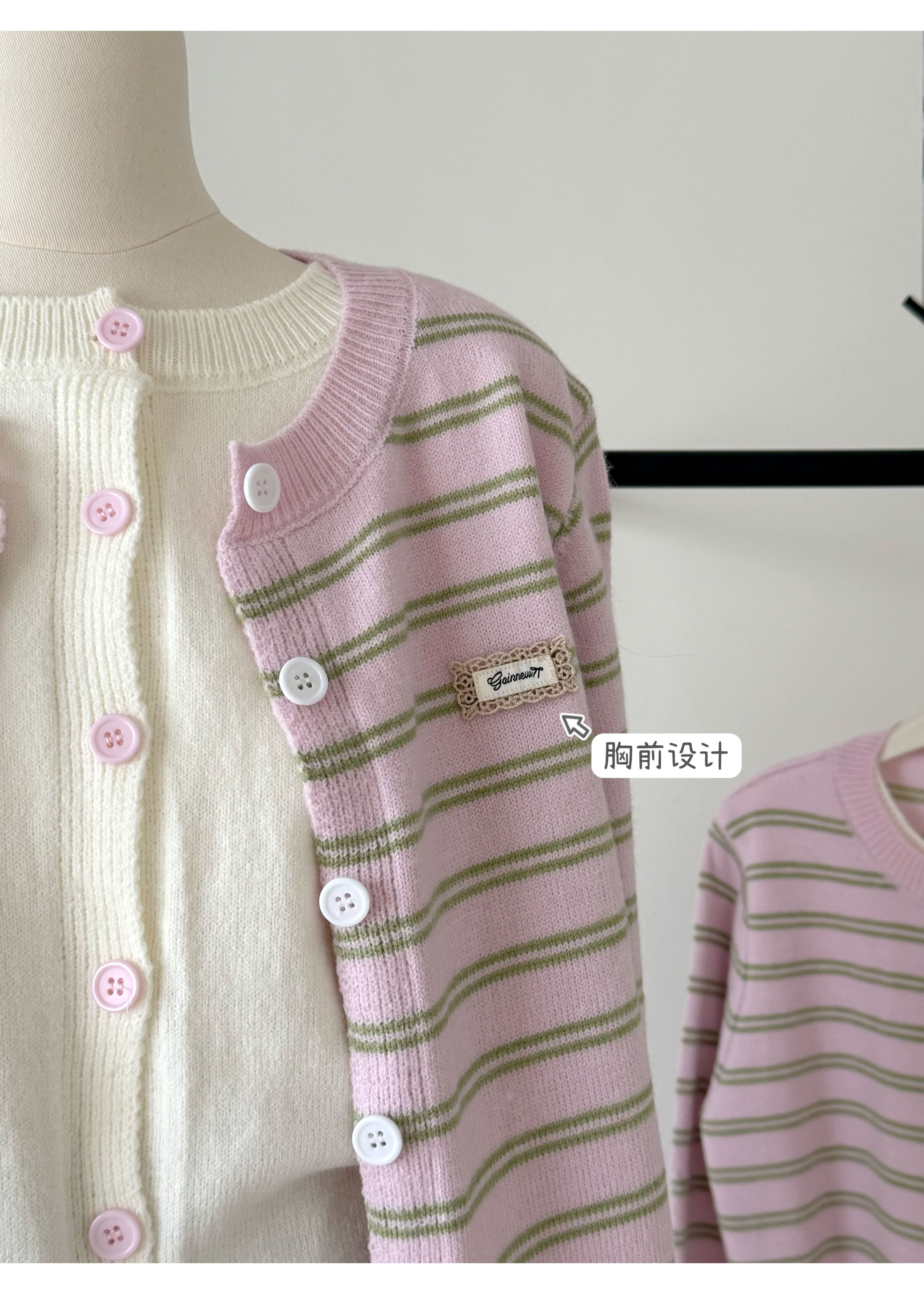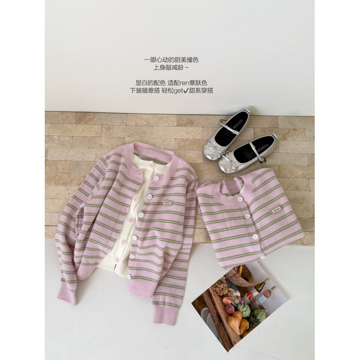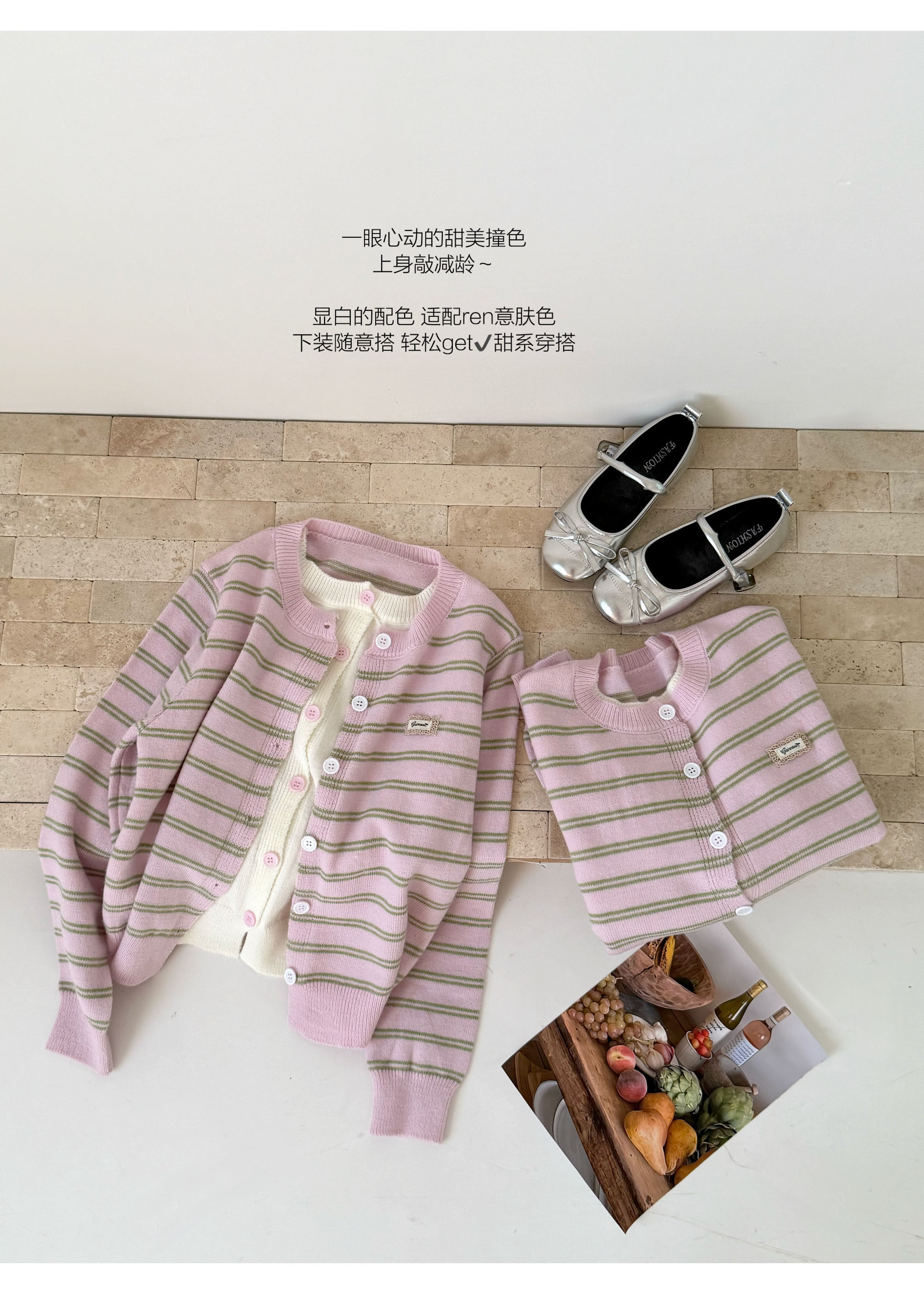 RENA韓系粉色條紋假兩件針織開衫女秋冬毛衣外套早秋穿搭上衣