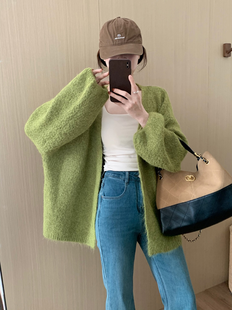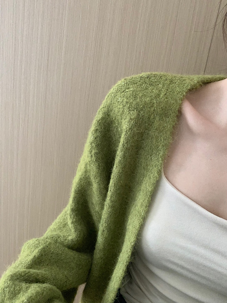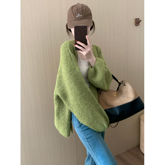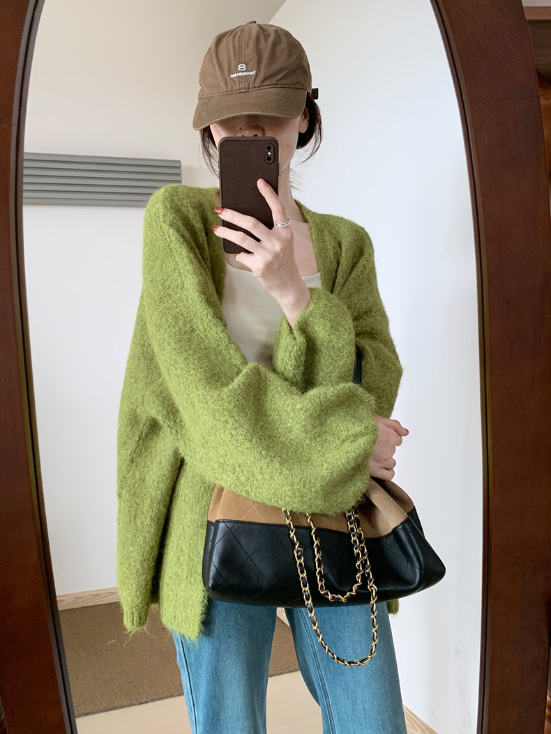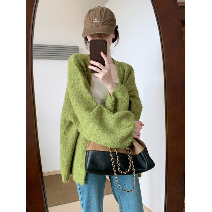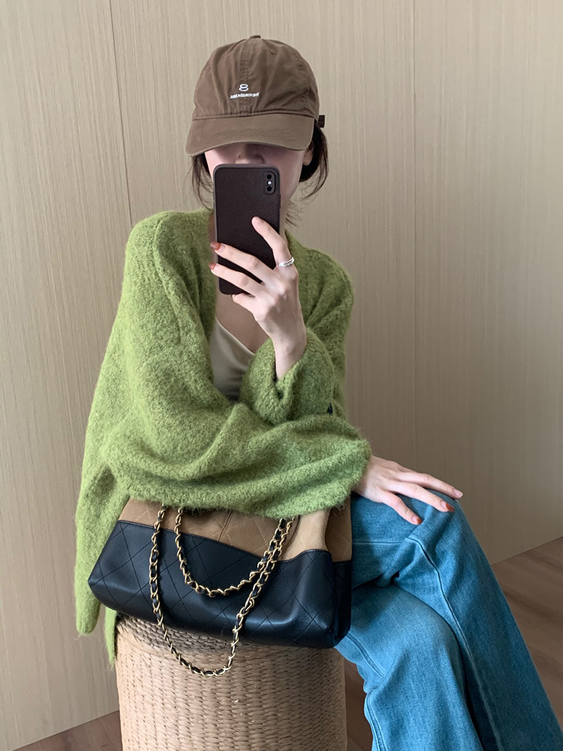 話裡慵懶風氣質綠色毛衣2025秋季新款韓版簡約風減齡甜美氣質上衣