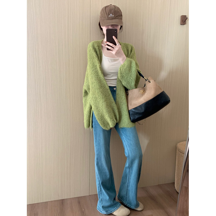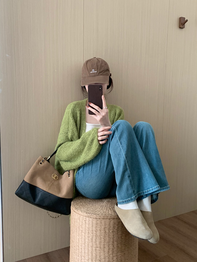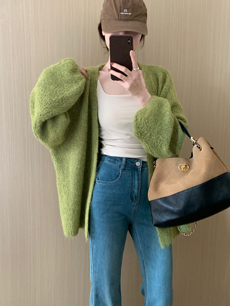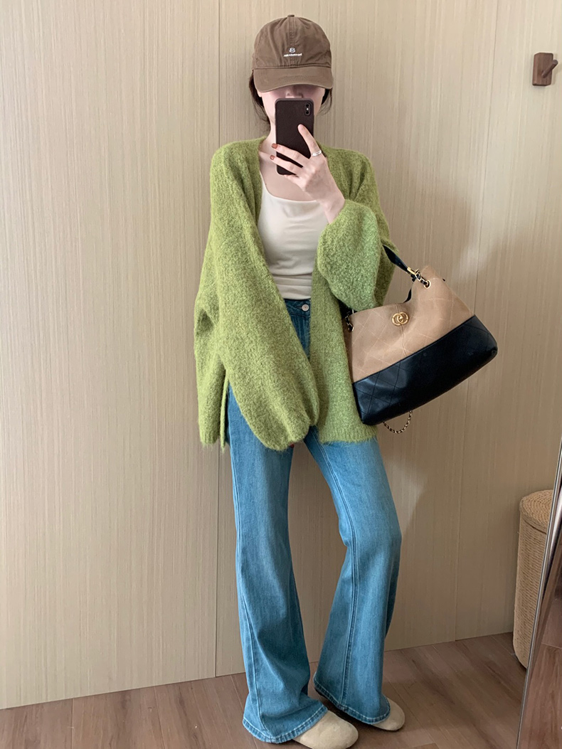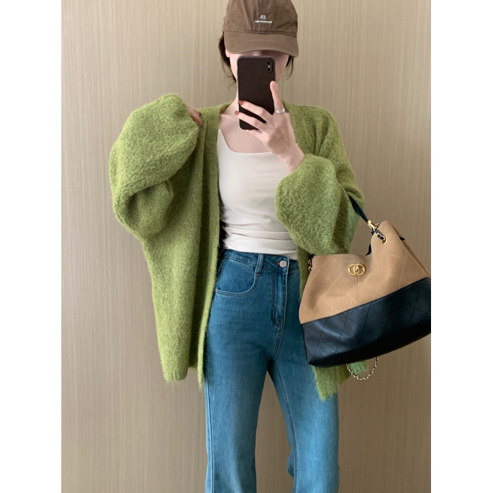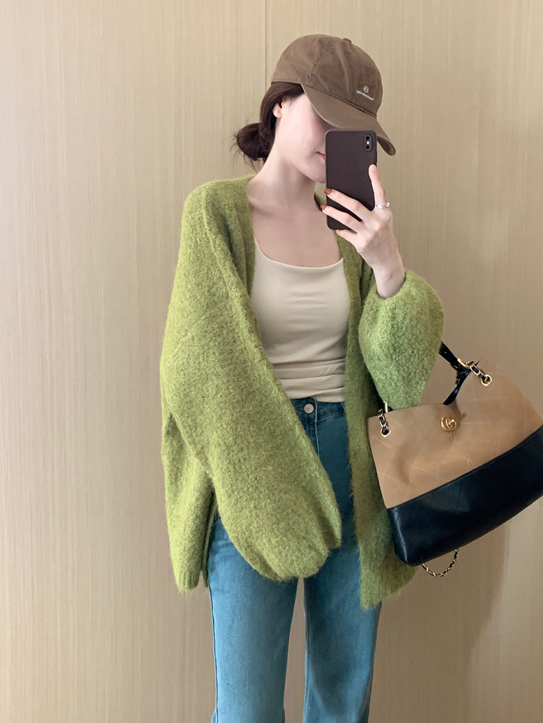 話裡慵懶風氣質綠色毛衣2025秋季新款韓版簡約風減齡甜美氣質上衣