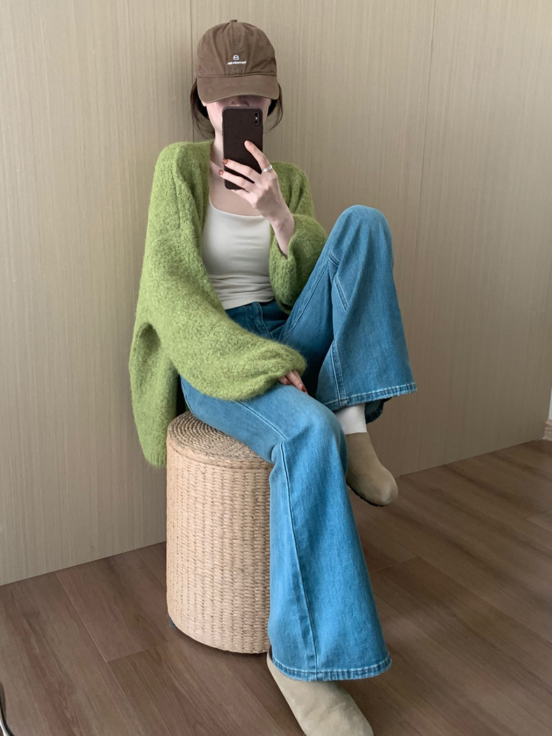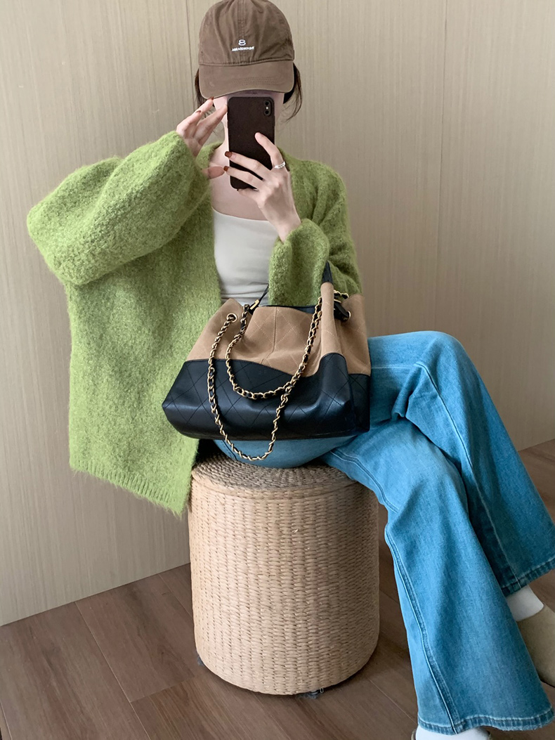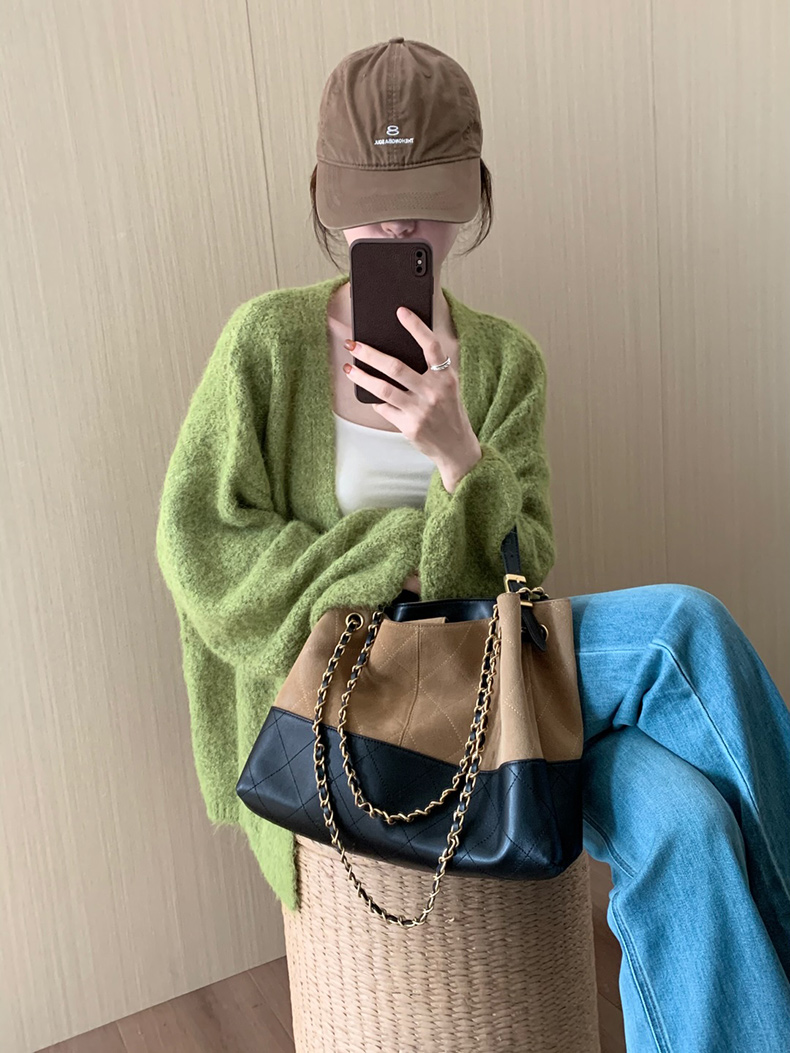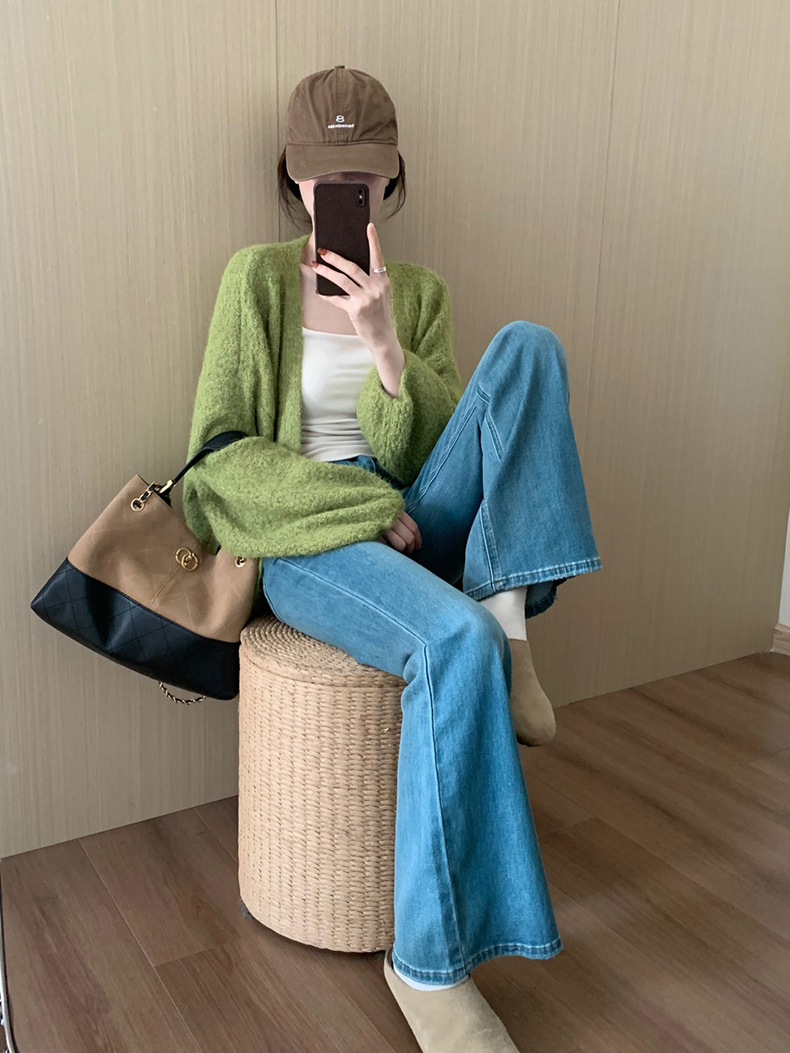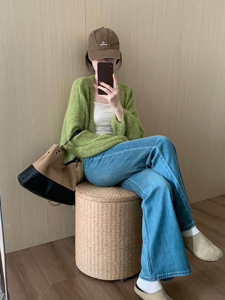 話裡慵懶風氣質綠色毛衣2025秋季新款韓版簡約風減齡甜美氣質上衣