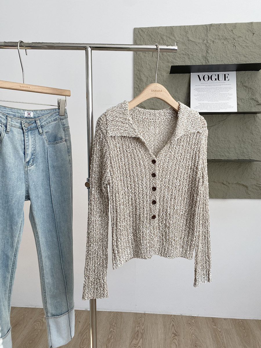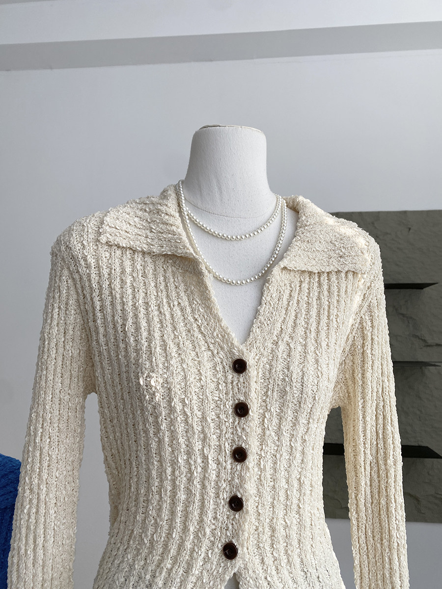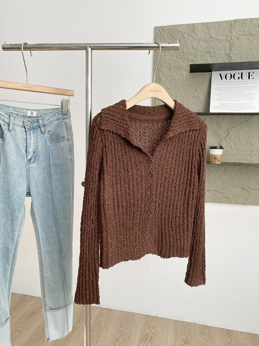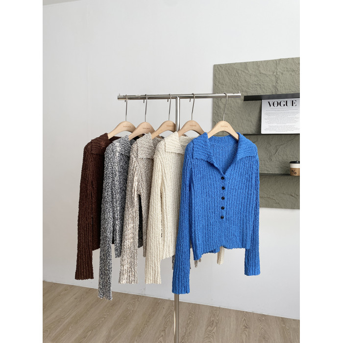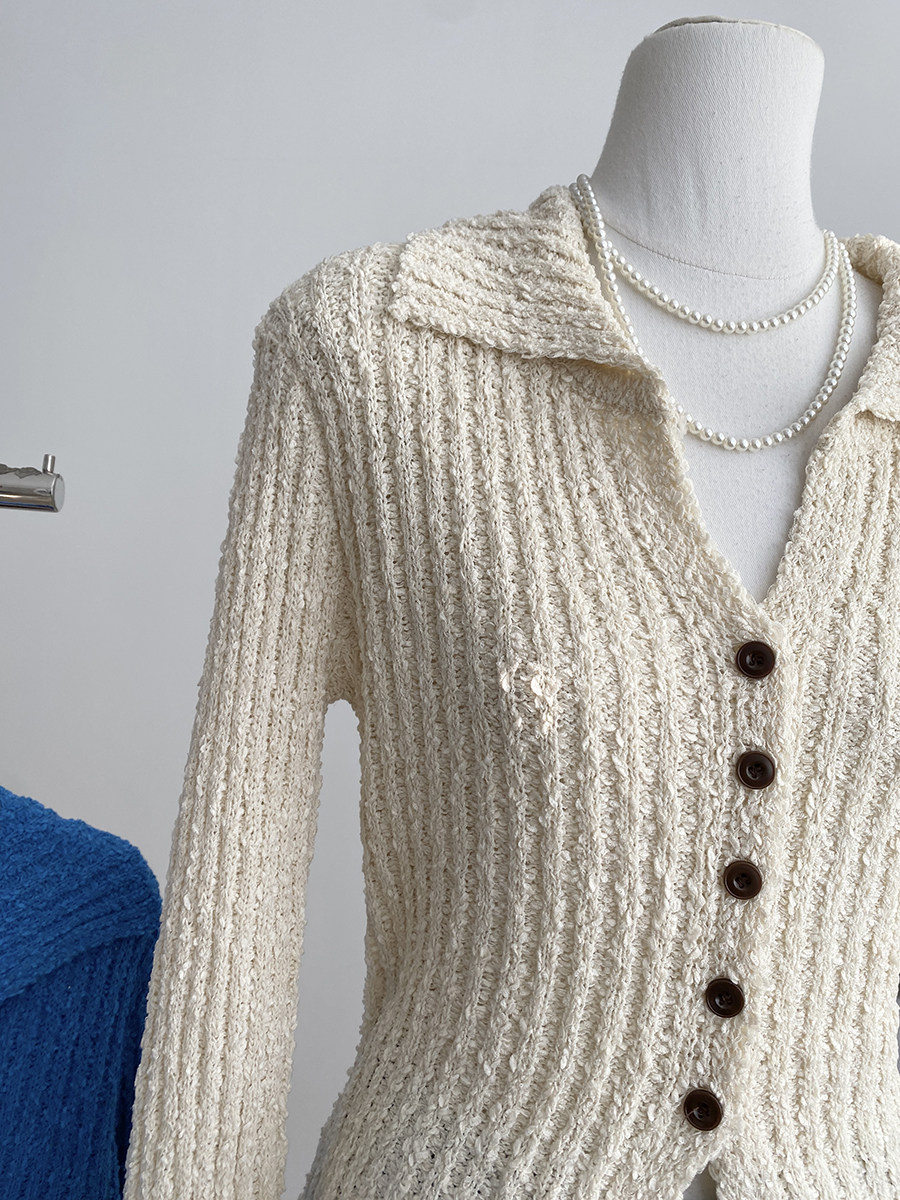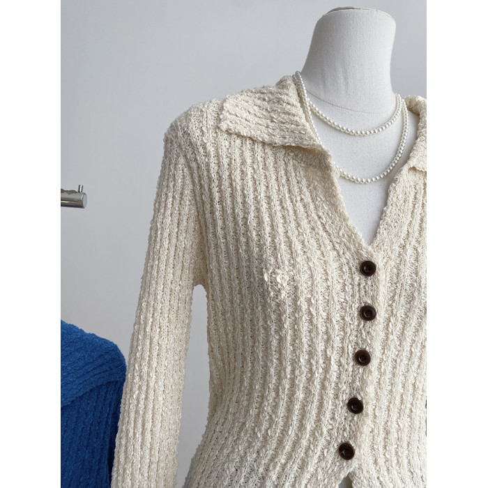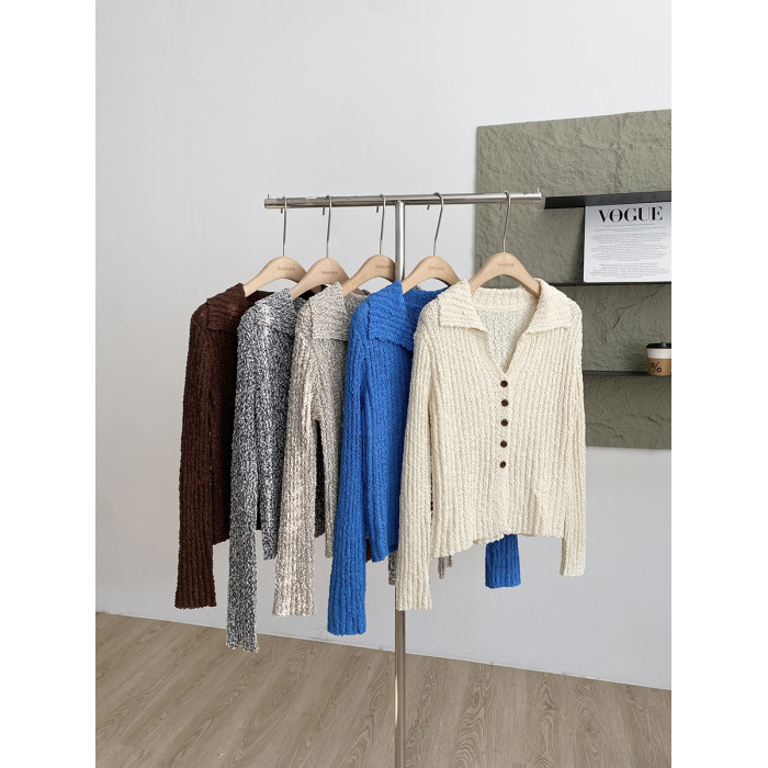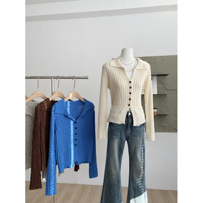 2025秋季新款韓系溫柔風減齡翻領針織開衫修身顯瘦百搭氣質上衣女
