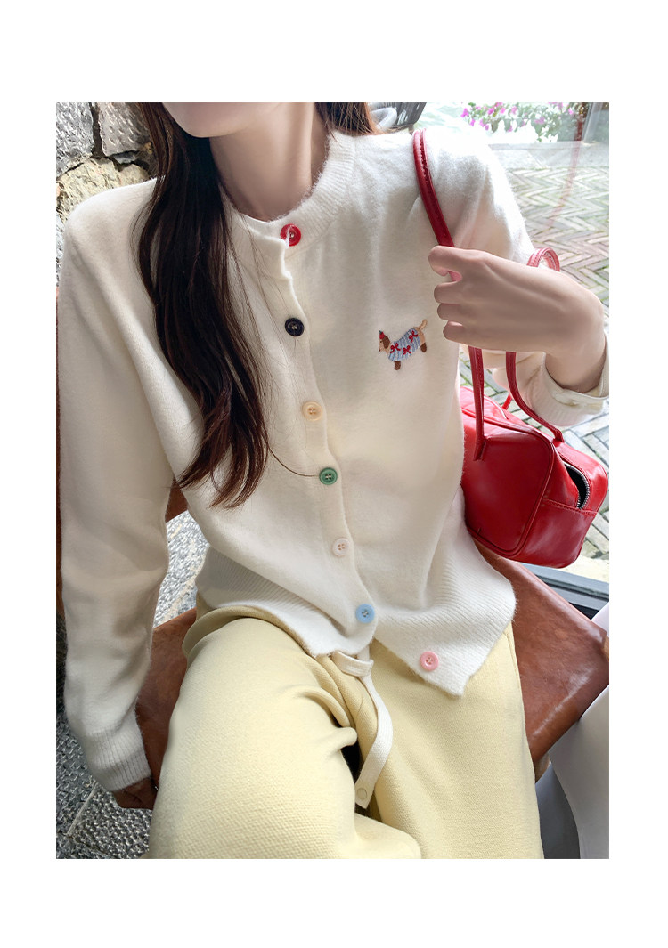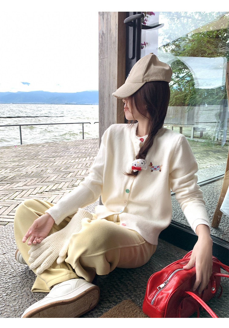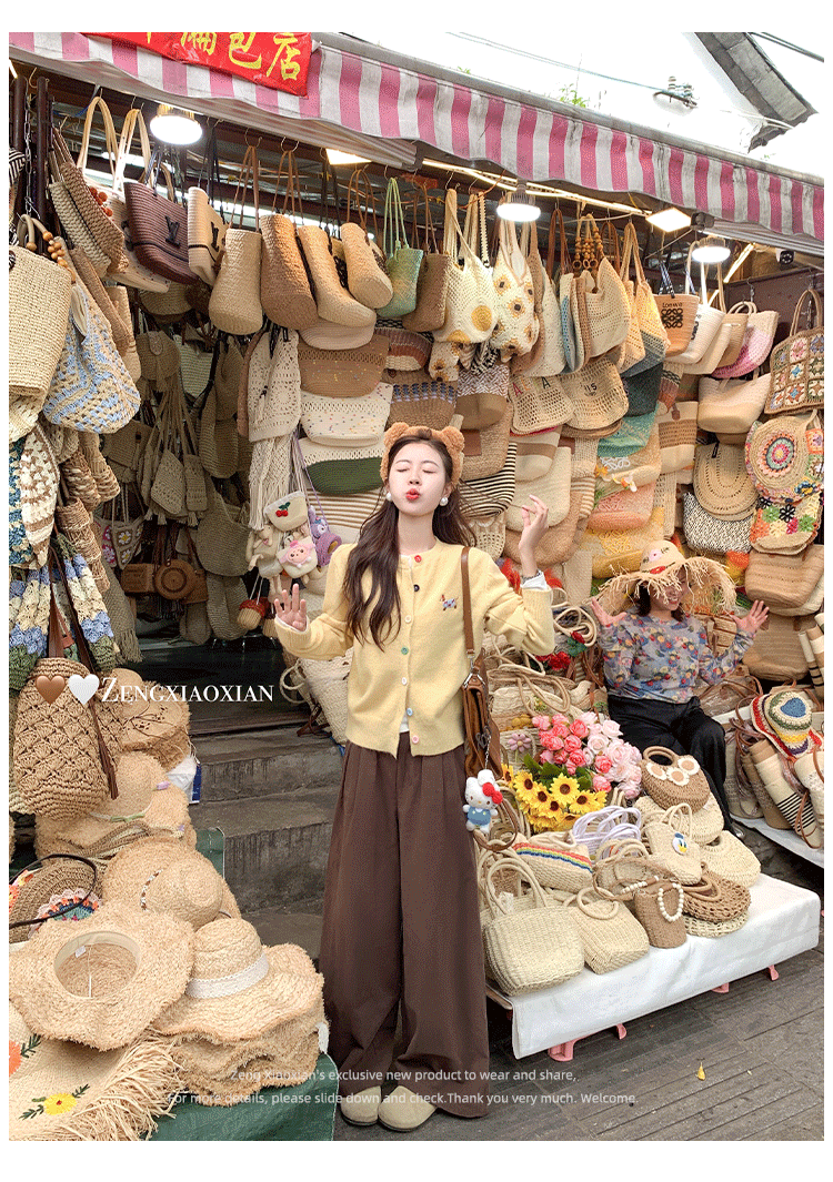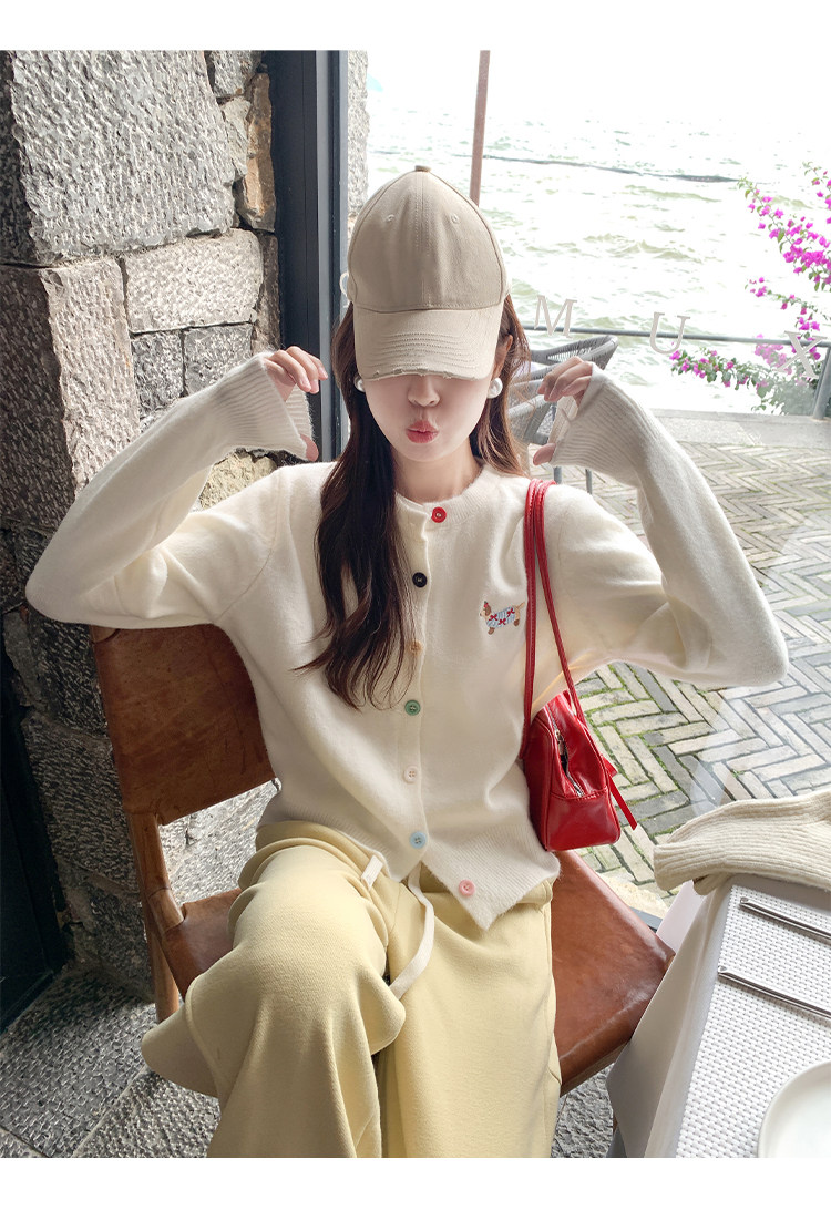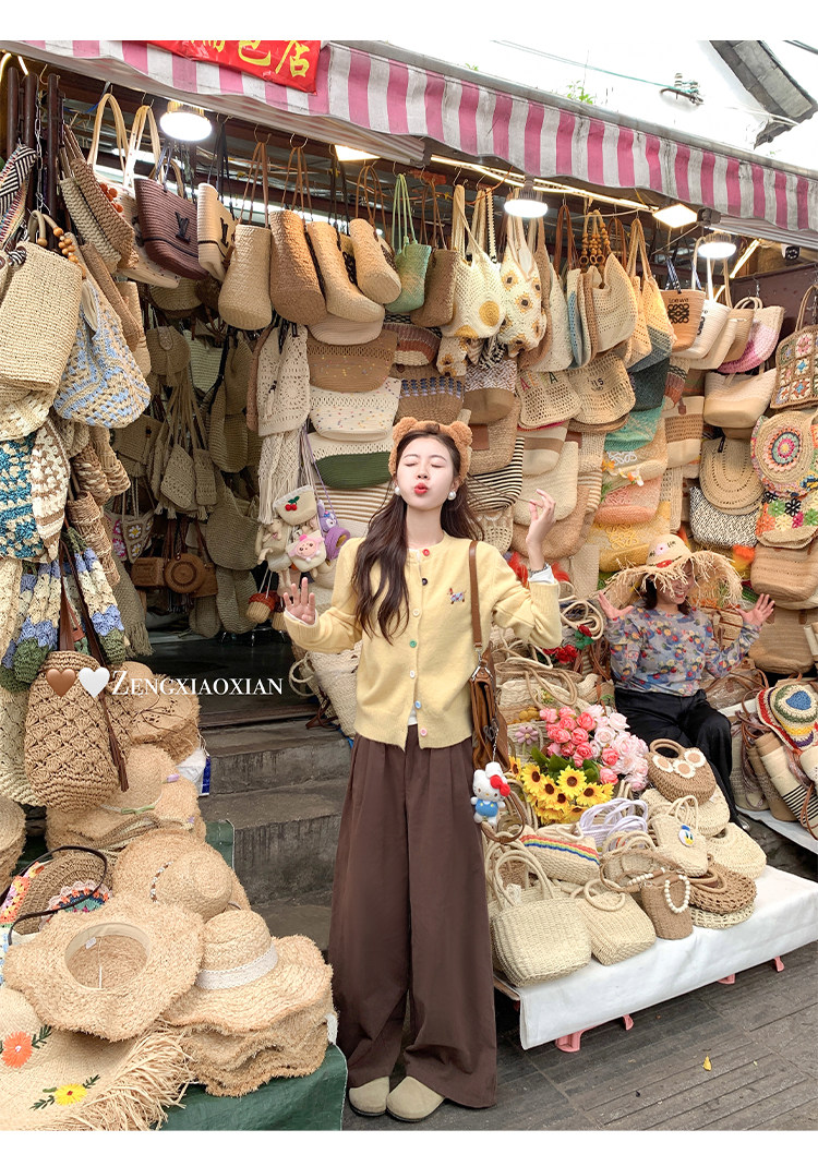 曾小鹹韓系黃色刺綉毛衣外套女秋冬寬鬆毛織針織開衫上衣秋季秋裝
