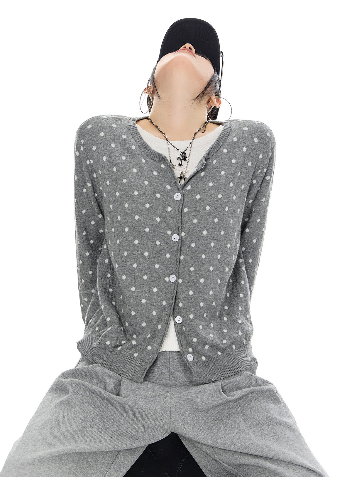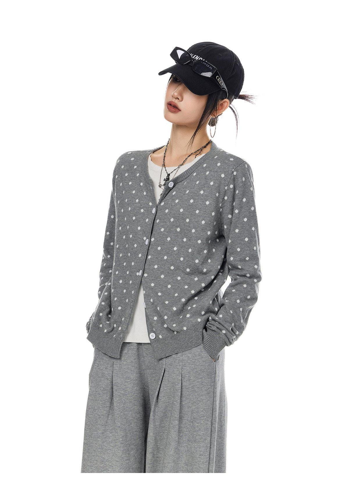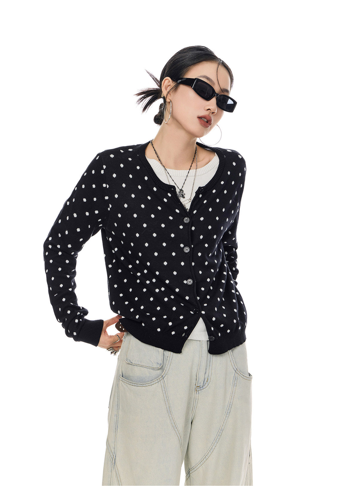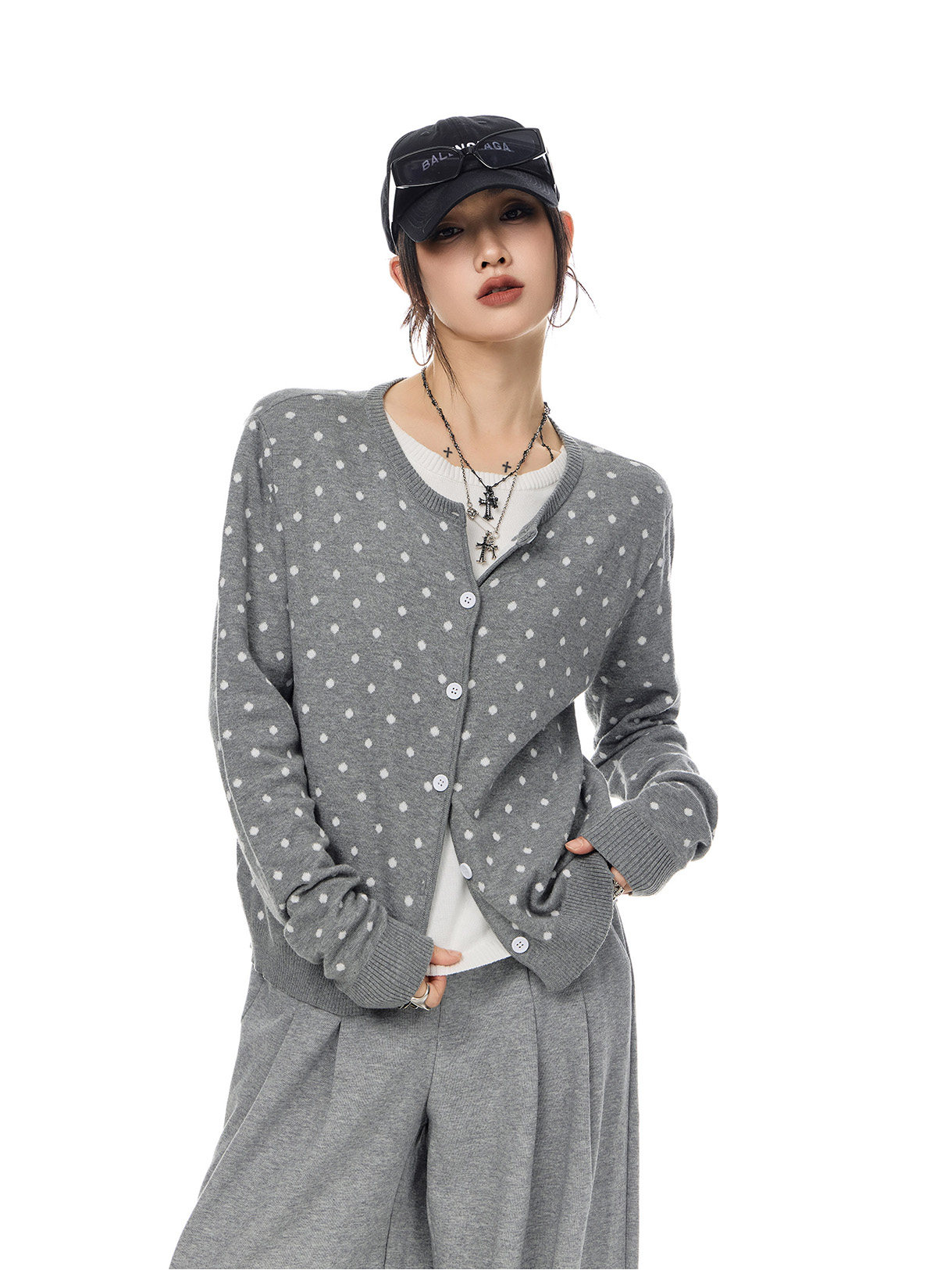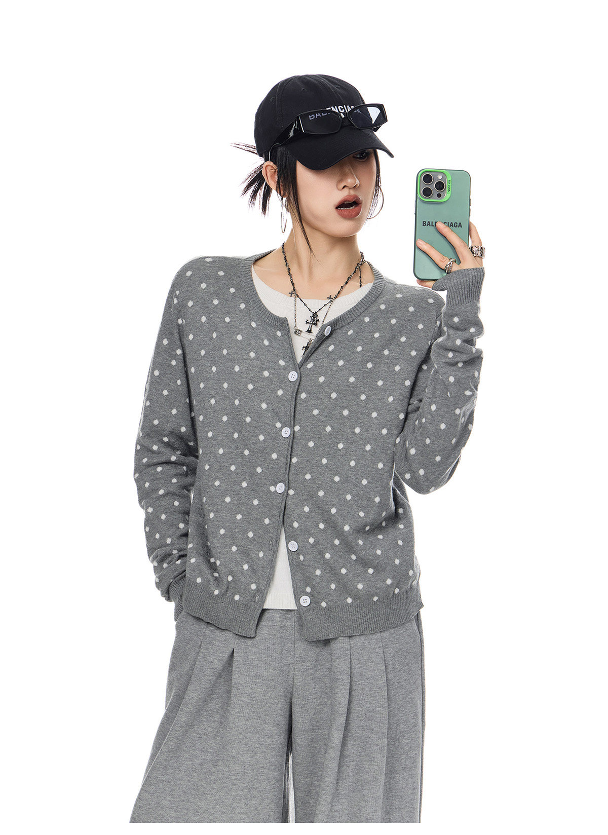 ICH MODE 美式復古修身波點針織開衫女2026新款春季慵懶毛衣外套