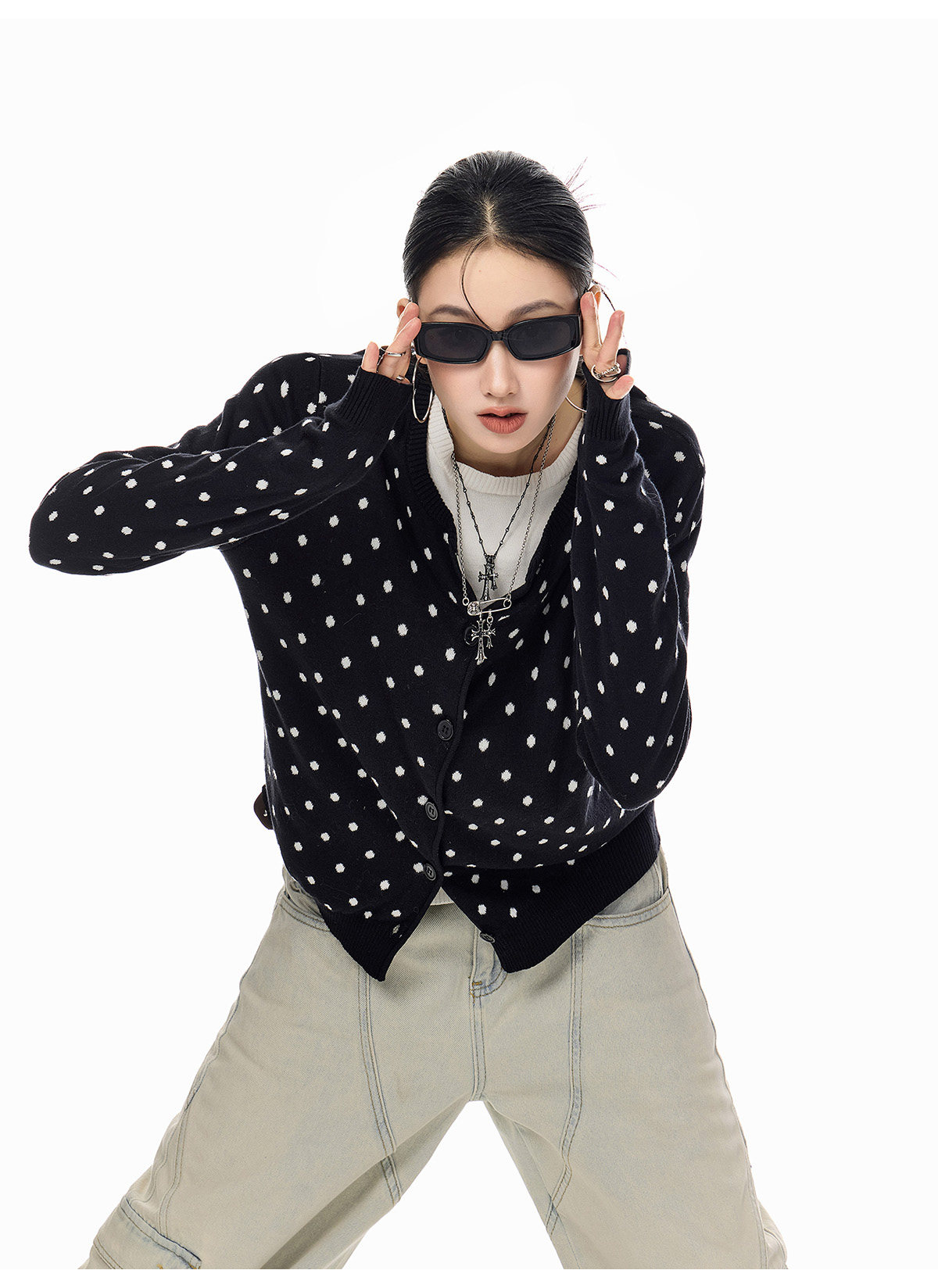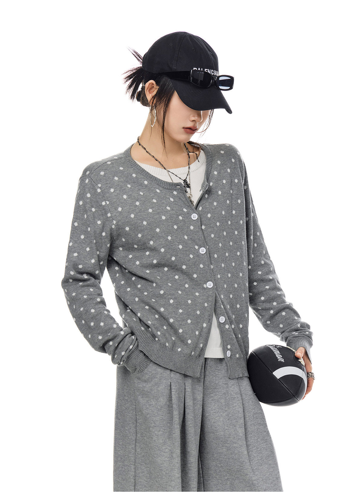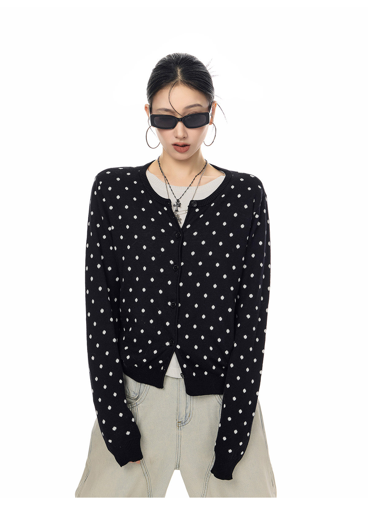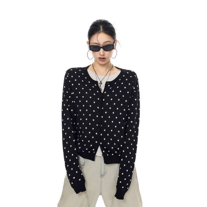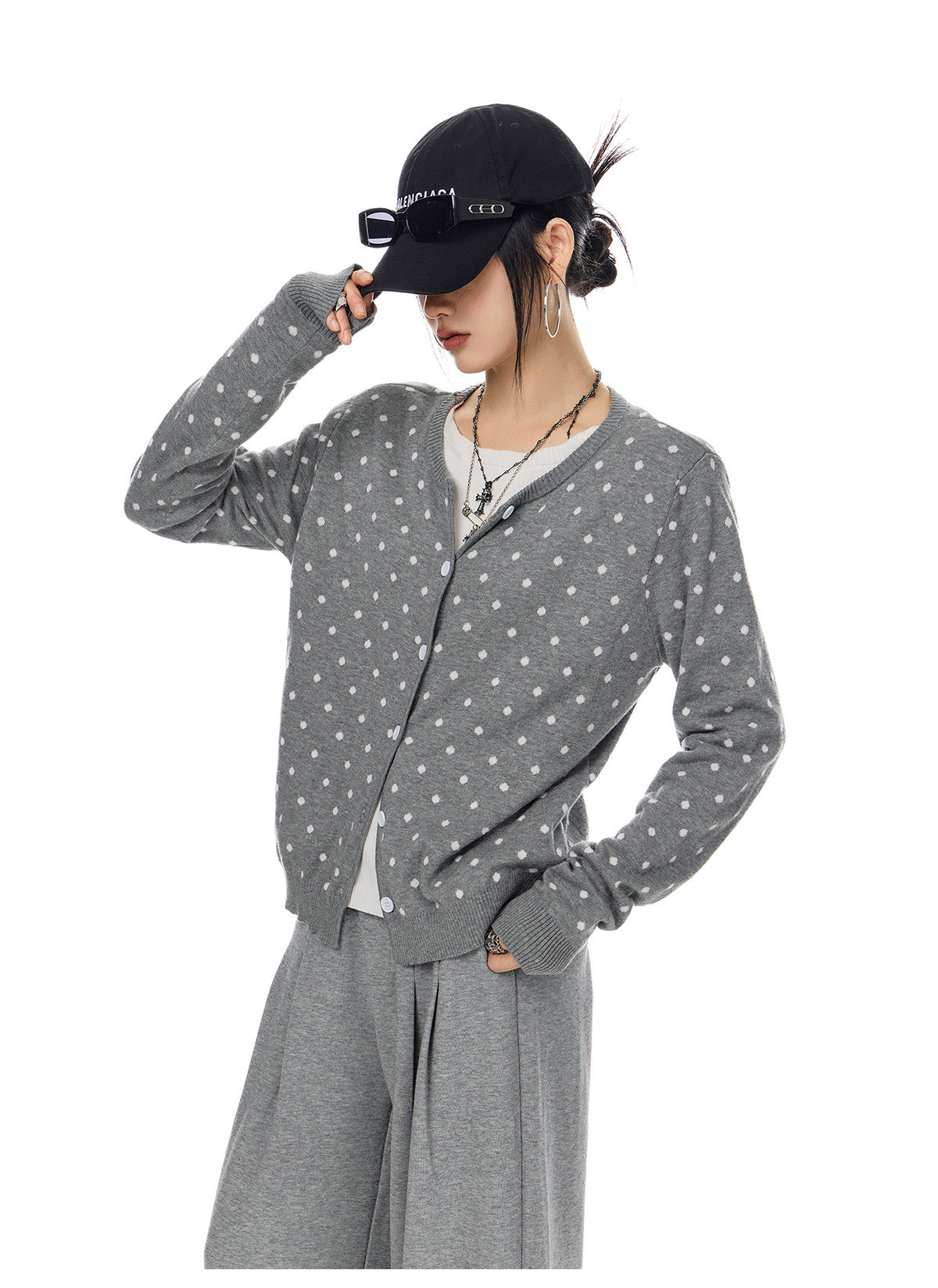ICH MODE 美式復古修身波點針織開衫女2026新款春季慵懶毛衣外套