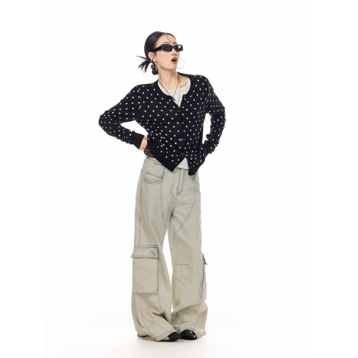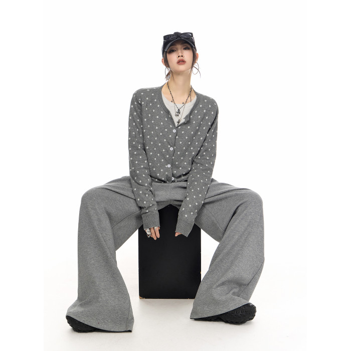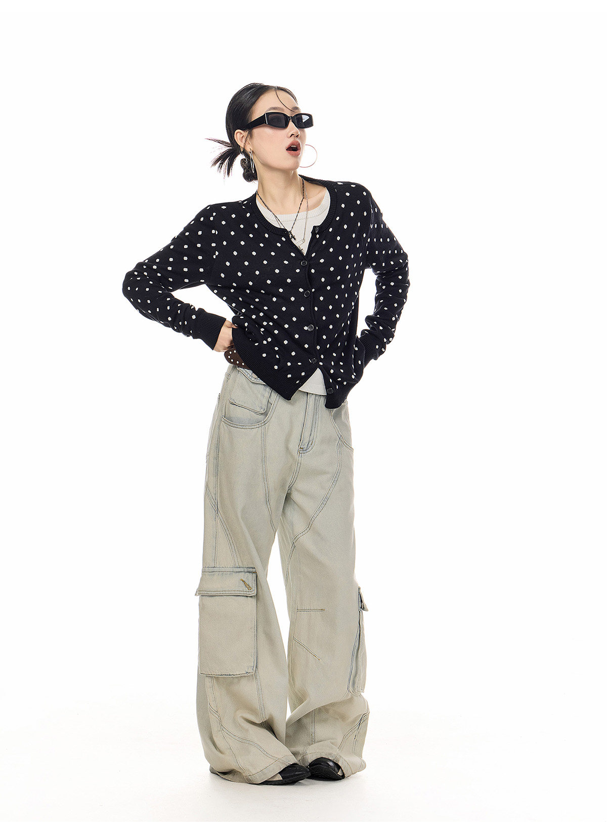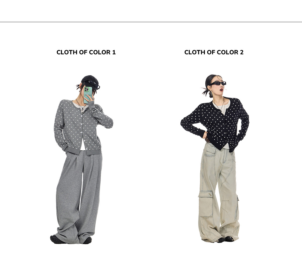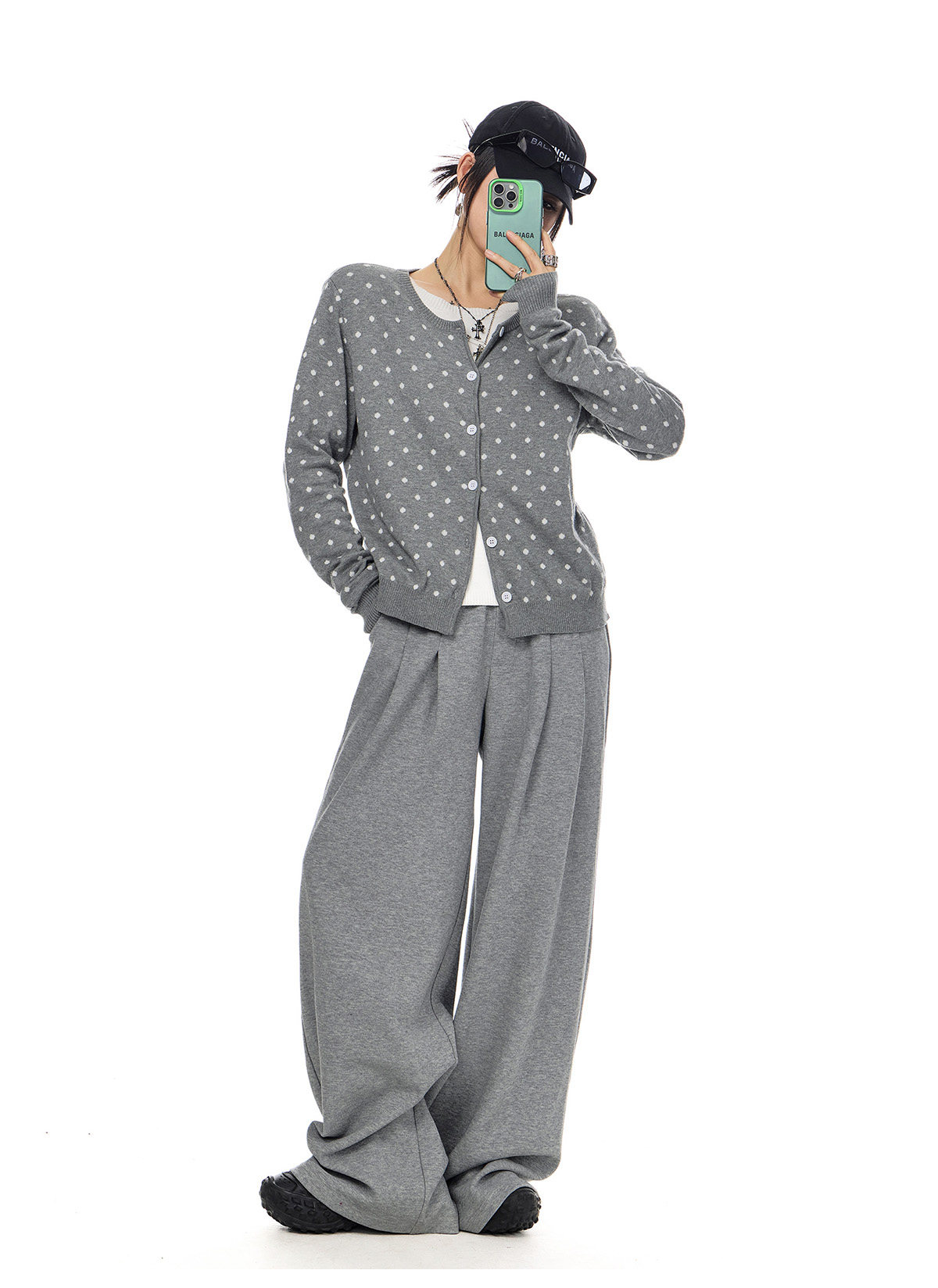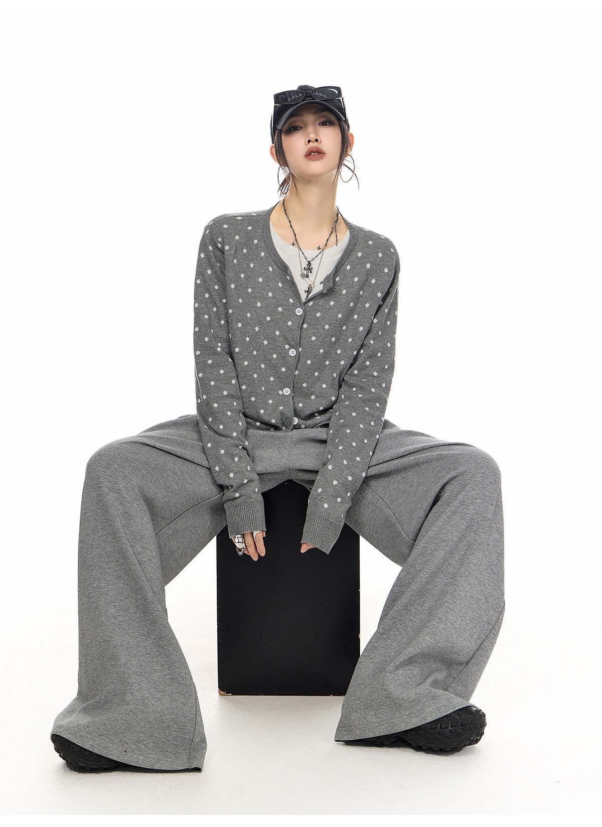 ICH MODE 美式復古修身波點針織開衫女2026新款春季慵懶毛衣外套